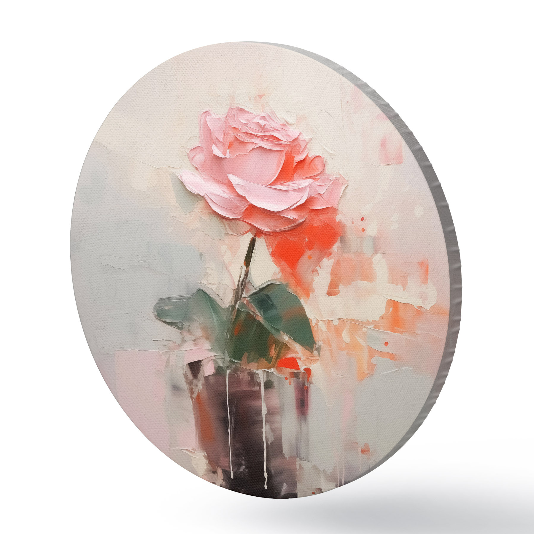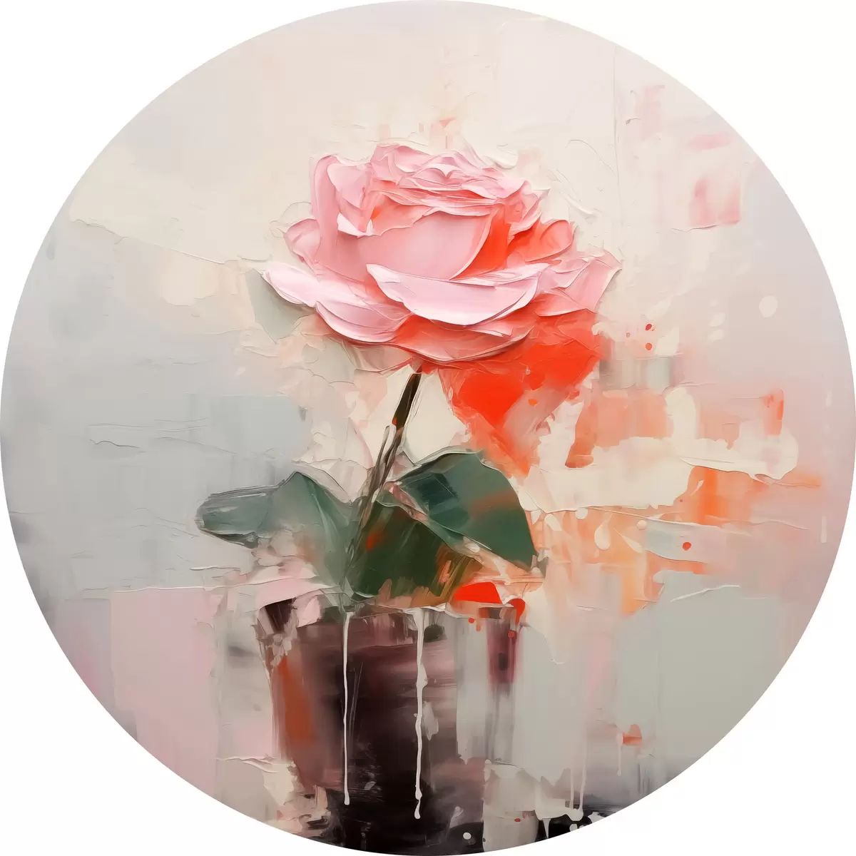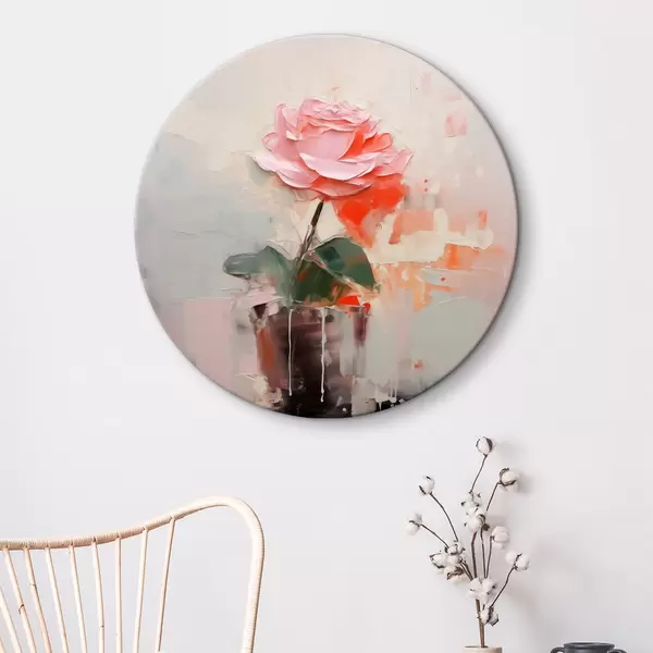 Runde Gemälde Abstrakte Rose in einer Vase, grau, rosa, rot r40515
