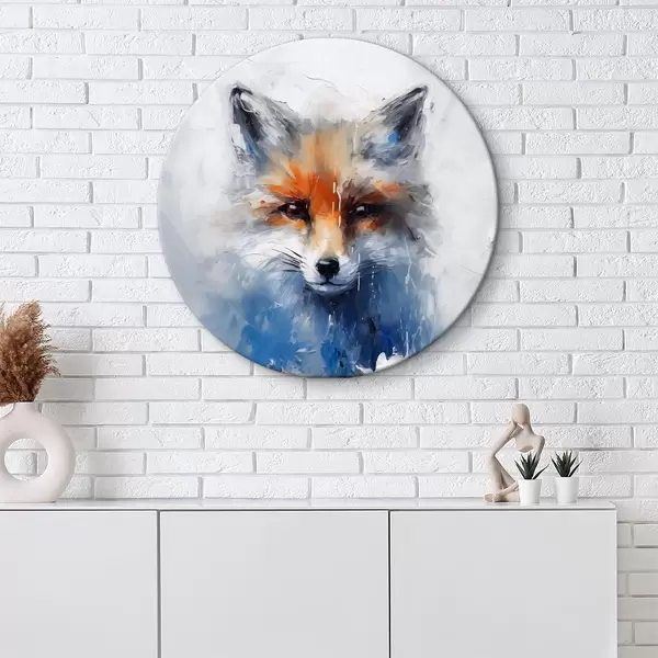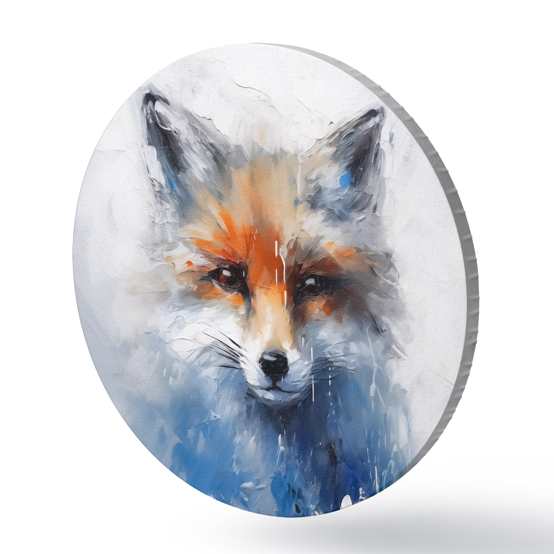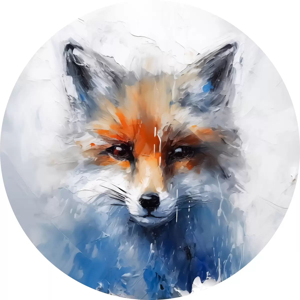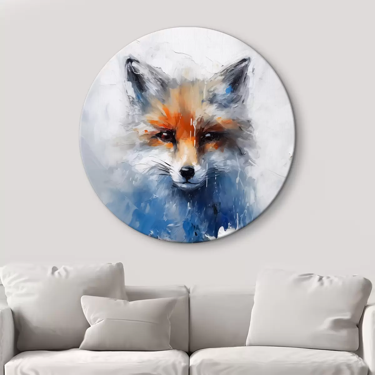 Runde Gemälde Abstraktes Porträt eines Fuchses mit blauen Farbspritzern r40524