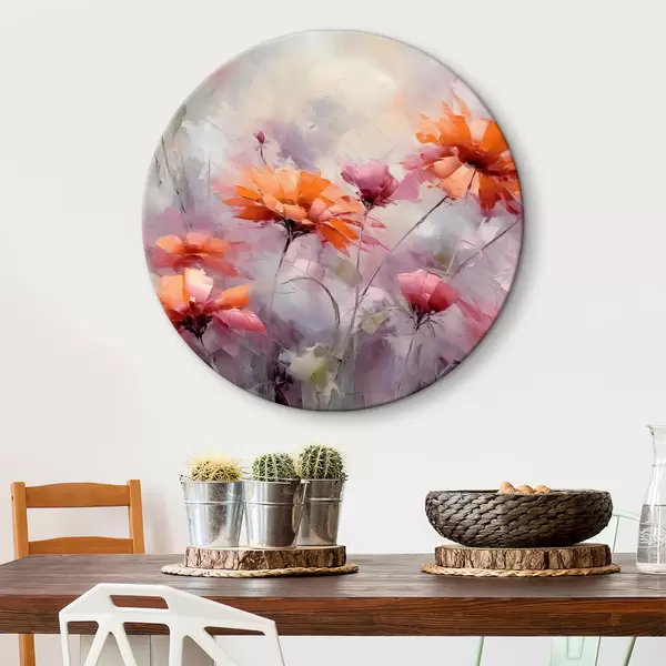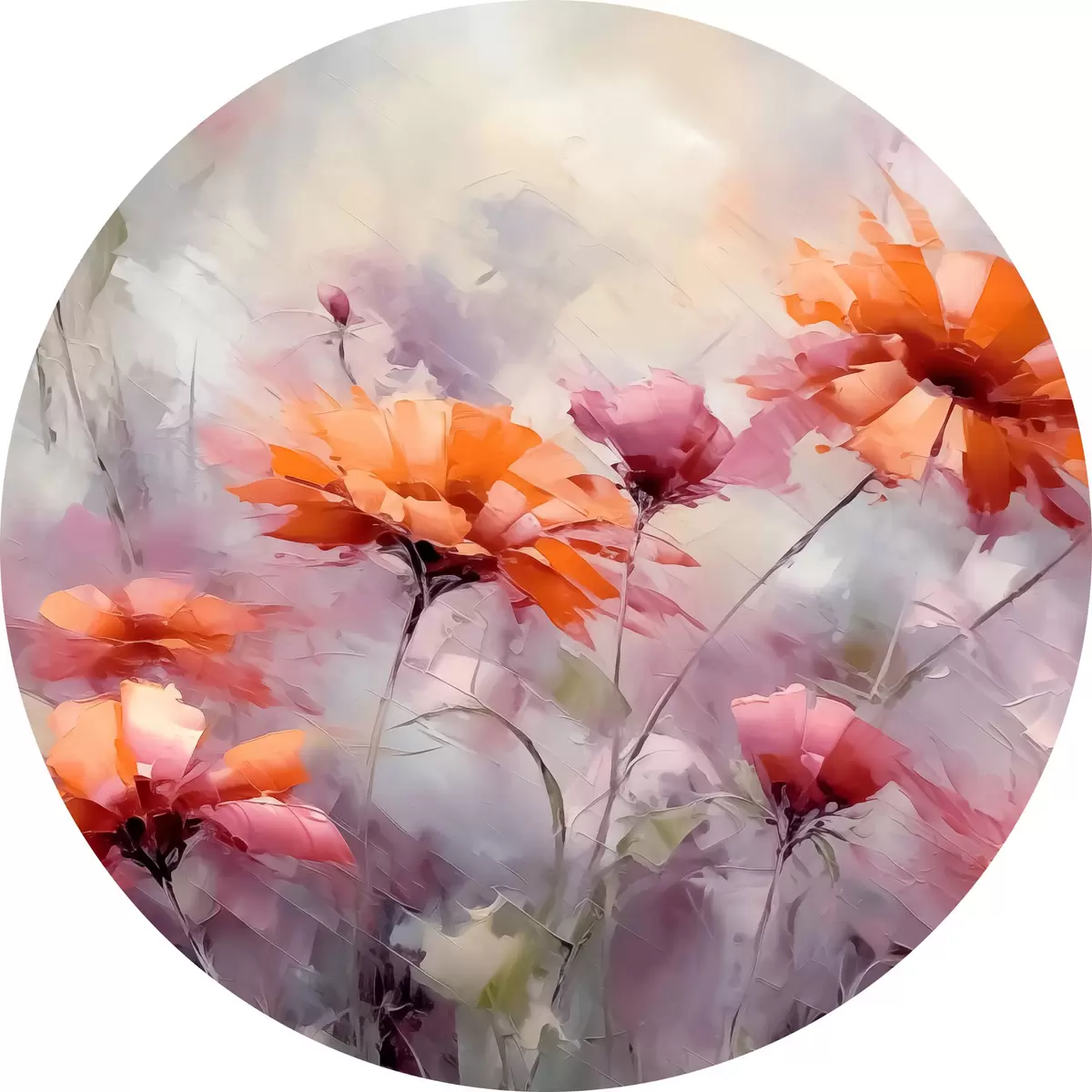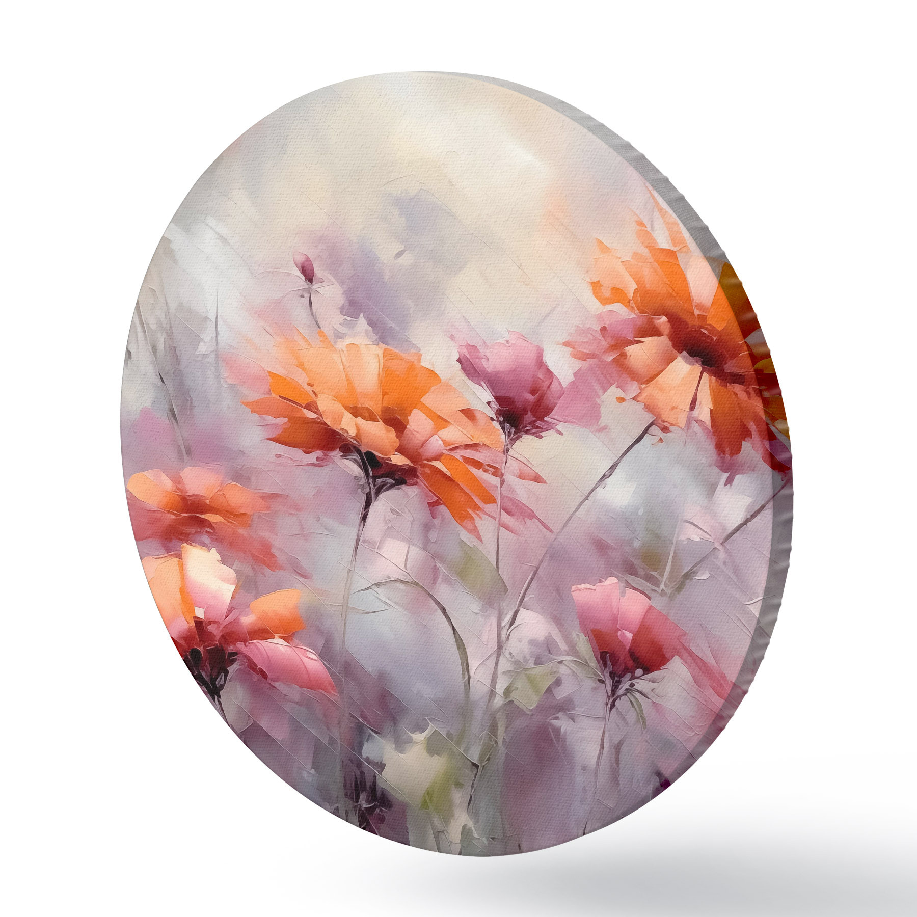 Runde Gemälde Abstrakte Blumen, Nachahmung von Pinselstrichen, rot, grau, lila, orange r40528