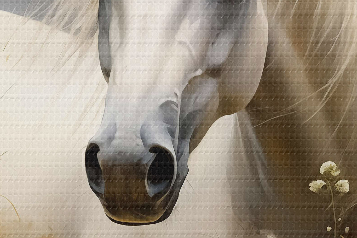Bild Weißes Pferd im Gras zwischen Gänseblümchen Nr r40533