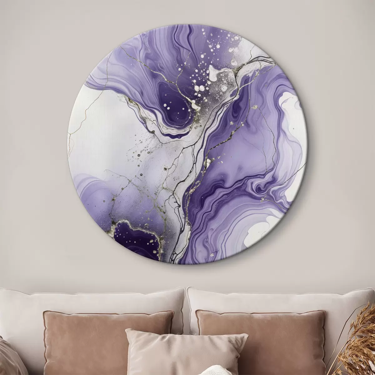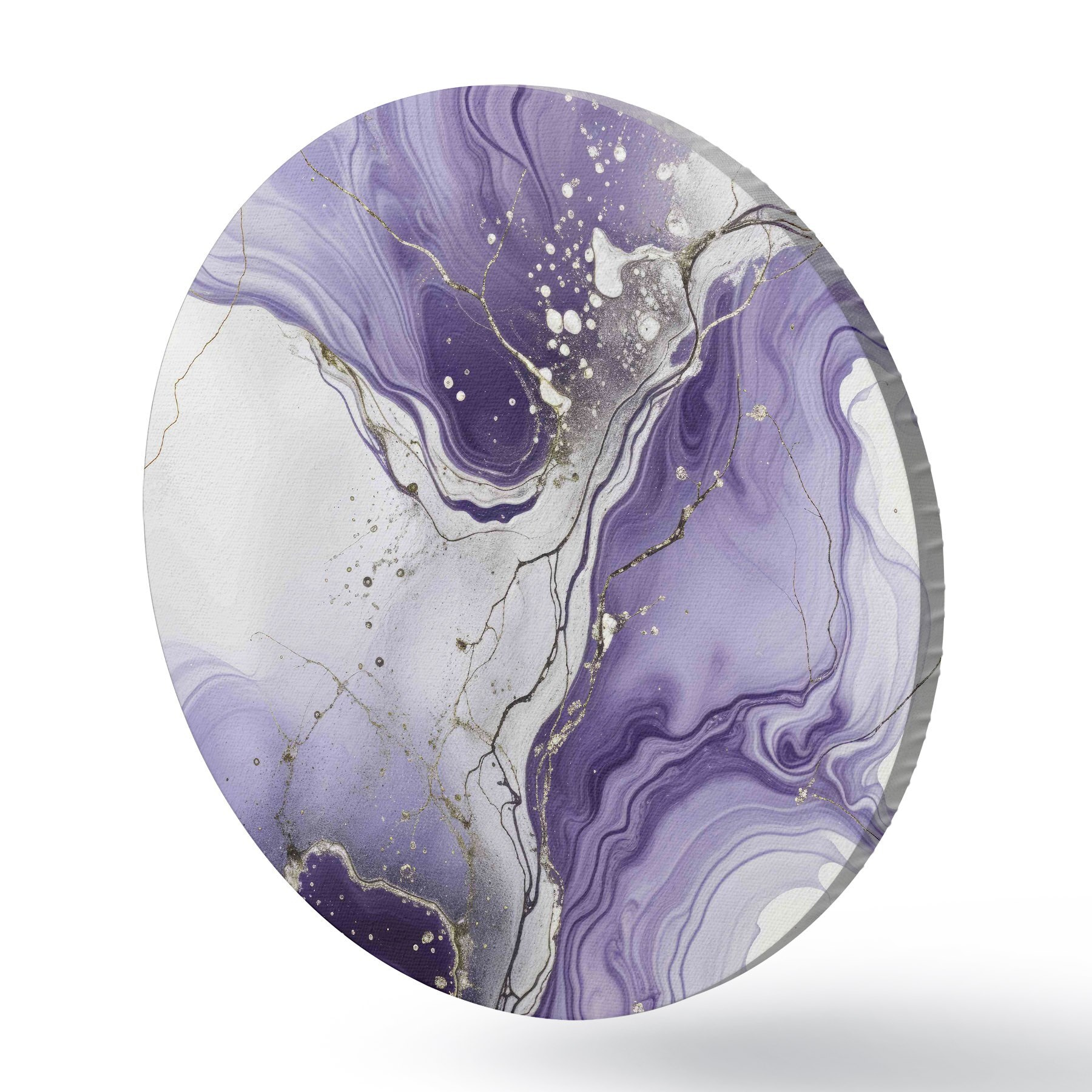 Runde Gemälde Abstrakte, fließende Kunstkomposition, gedruckt mit wirbelnder lila, weißer und grauer Tinte r40566