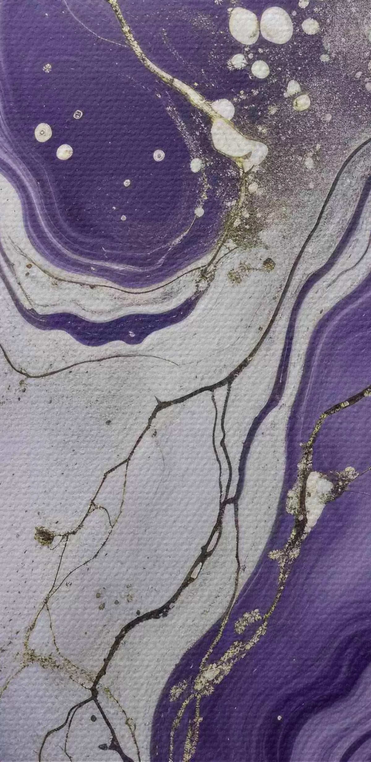 Bild Abstrakte, fließende Kunstkomposition, gedruckt mit wirbelnder lila, weißer und grauer Tinte Nr r40566