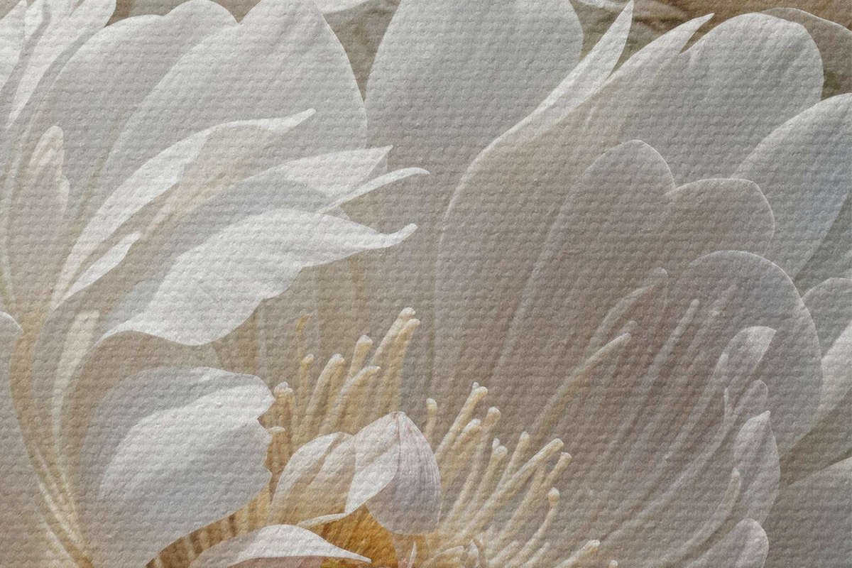 Drei Materialtypen stehen zur Verfügung: Economic Canvas - ein dichtes und haltbares Material für den Digitaldruck, identisch mit Malerleinwand, wasserfeste Oberfläche, realistische Wiedergabe von Details, mittelkörniges Material. Premium Canvas - die Textur ähnelt der einer Malerleinwand (verwobene kleine Fäden). Weiche, detaillierte Wiedergabe des Bildes auf einer matten Oberfläche. Eco-Premium - hochwertiges Gewebe aus 100% Baumwolle. Dank der natürlichen Baumwollfasern ist das Material langlebig und verschleißfest. Hervorragende Farbwiedergabe und Detailtreue.