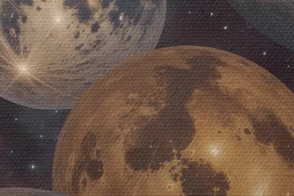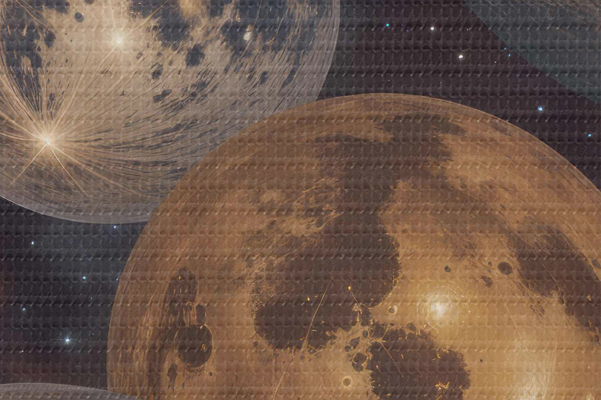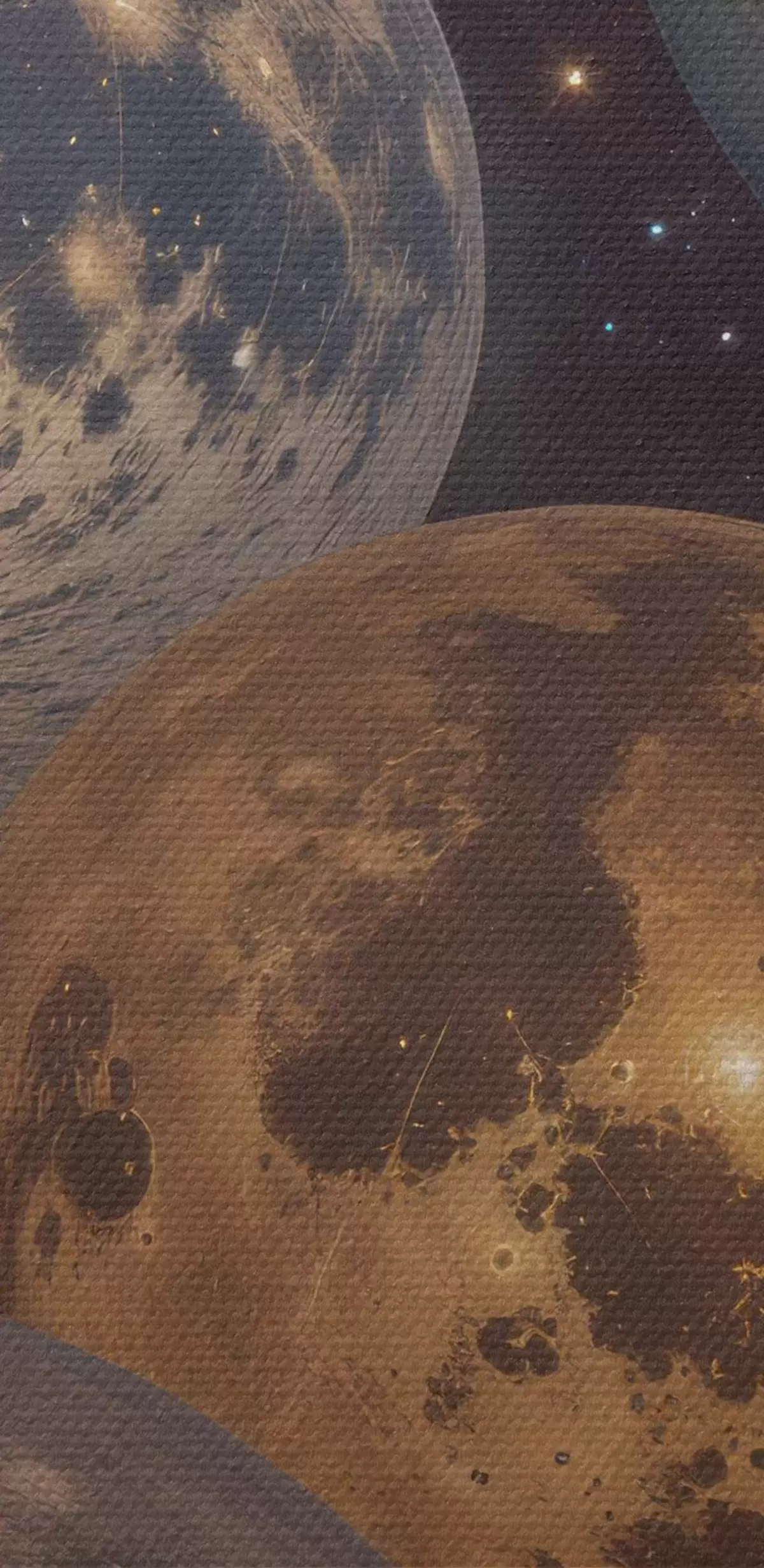 Bild Abstrakter Weltraumdruck mit bunten Planeten und Monden, die im nächtlichen Sternenhimmel schweben Nr r40607