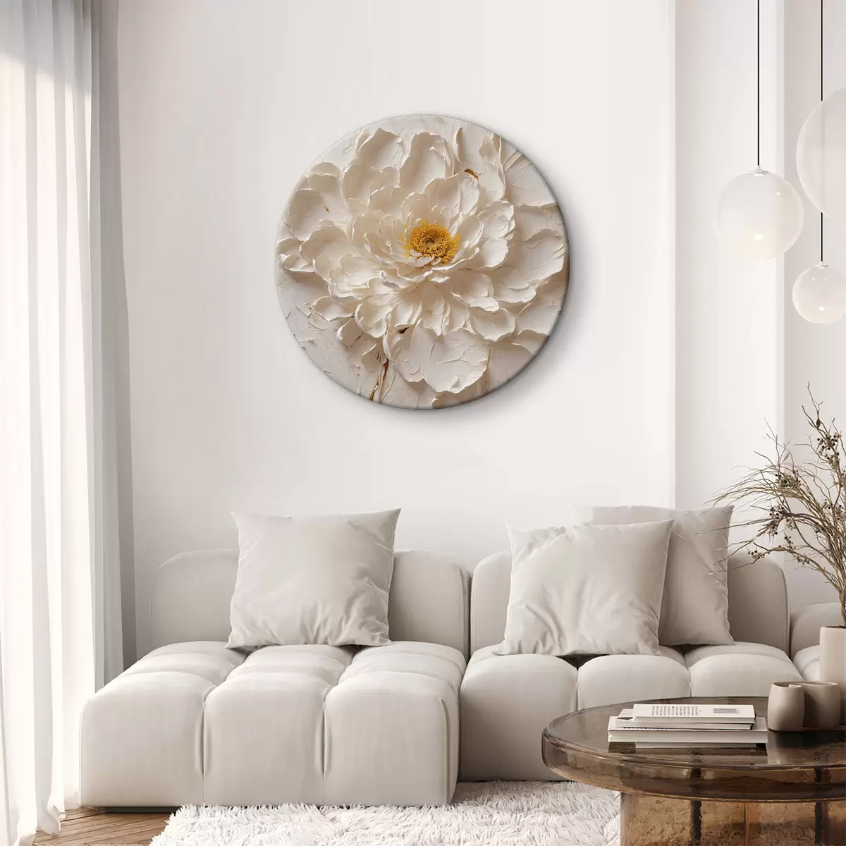 Runde Gemälde Weiße Blume in Öl auf weißem Hintergrund r40618