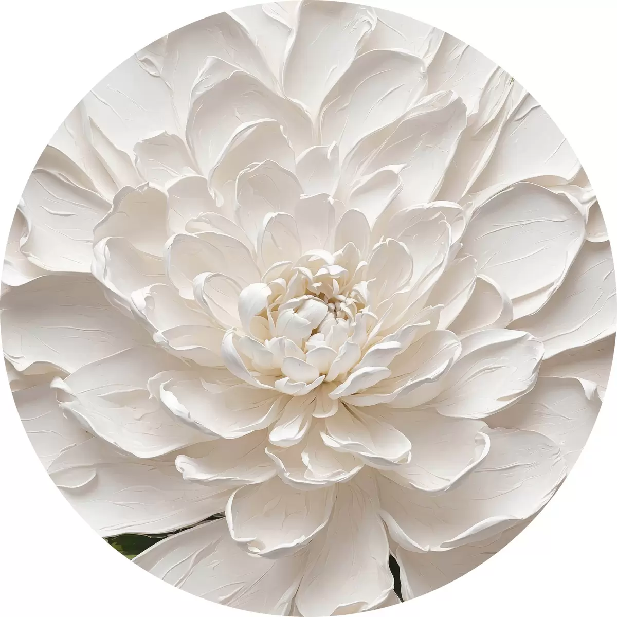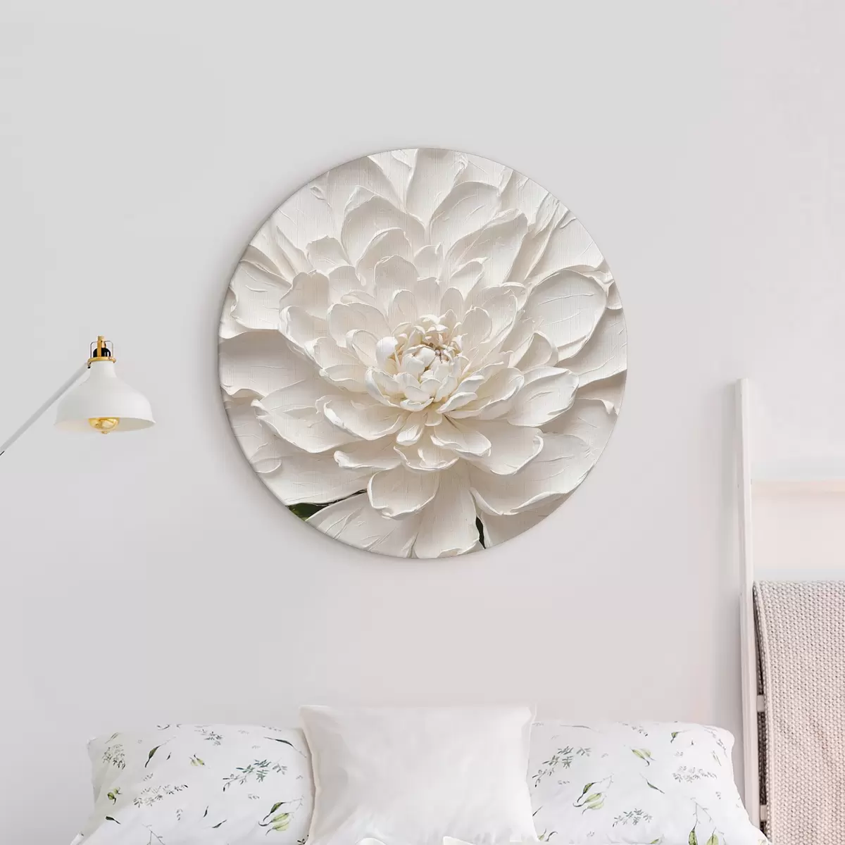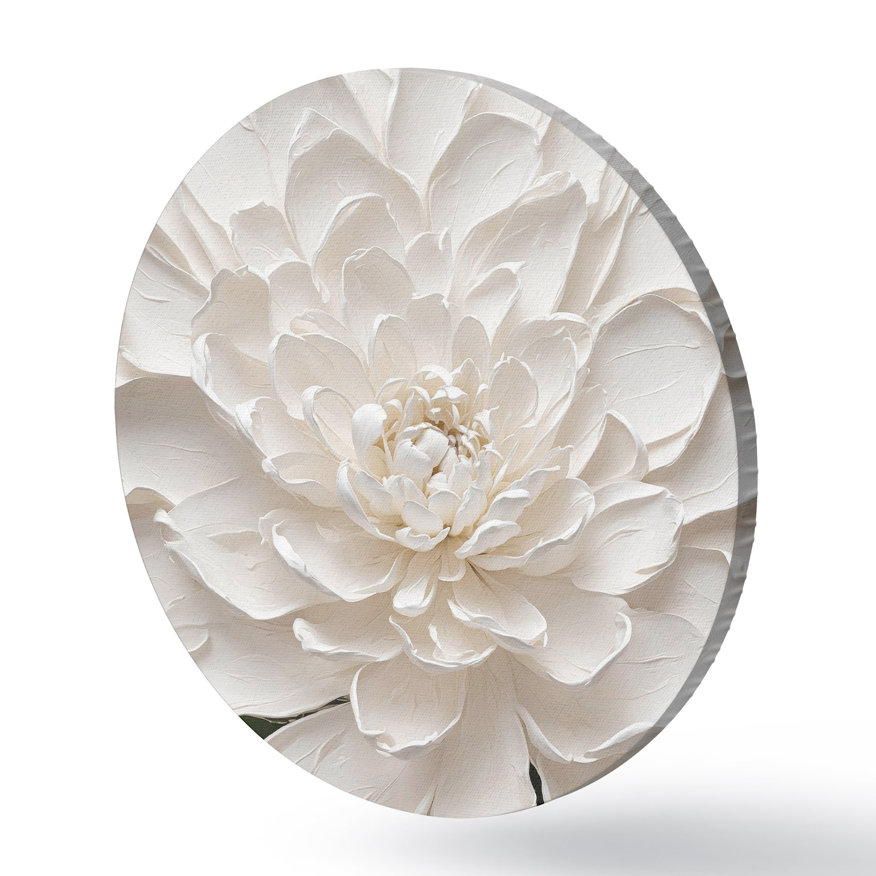Runde Gemälde Weiße Blume in Öl mit grünem Stiel r40620