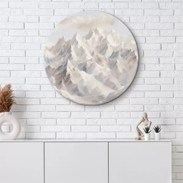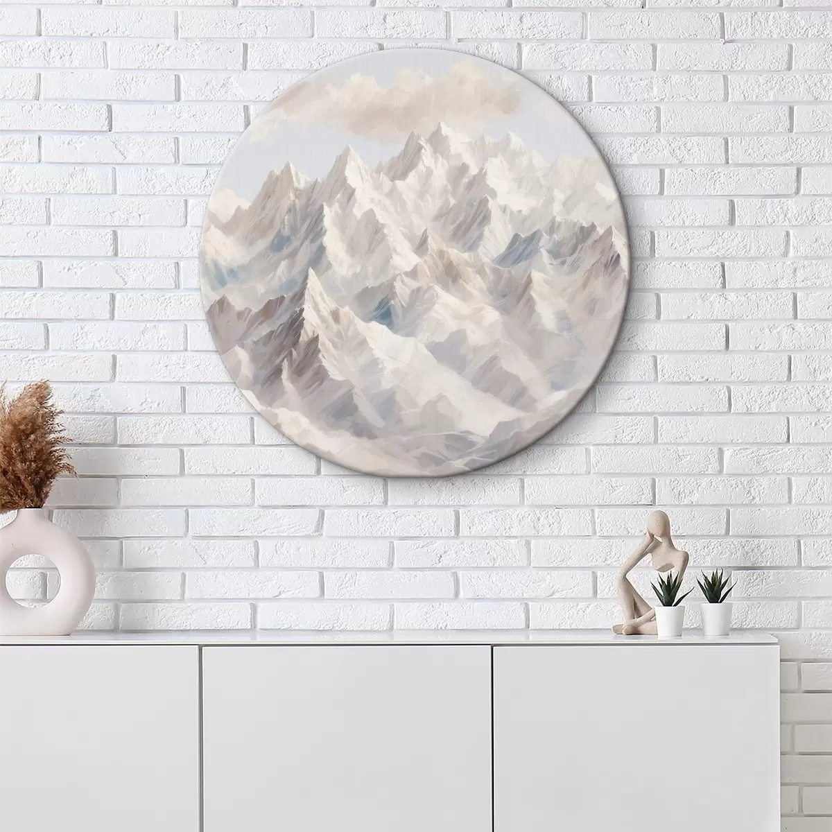 Runde Gemälde Weiße Berge gegen einen klaren Himmel r40630