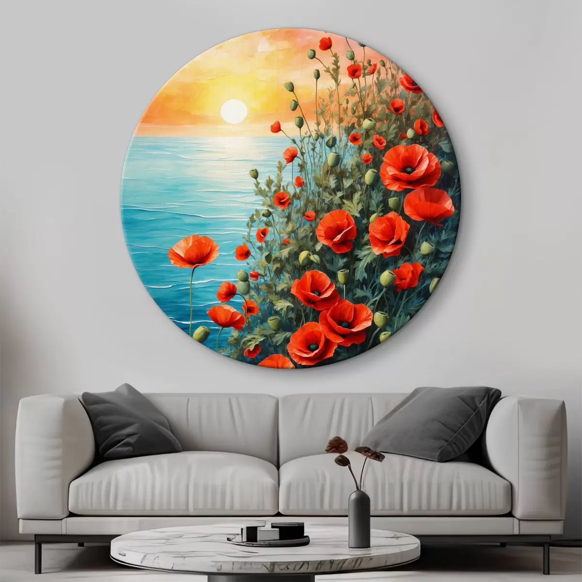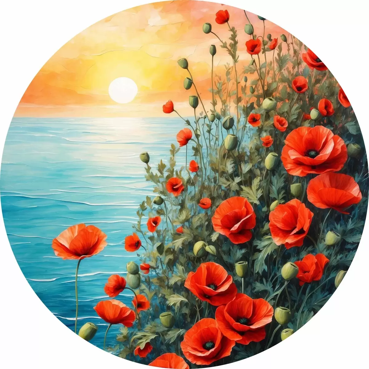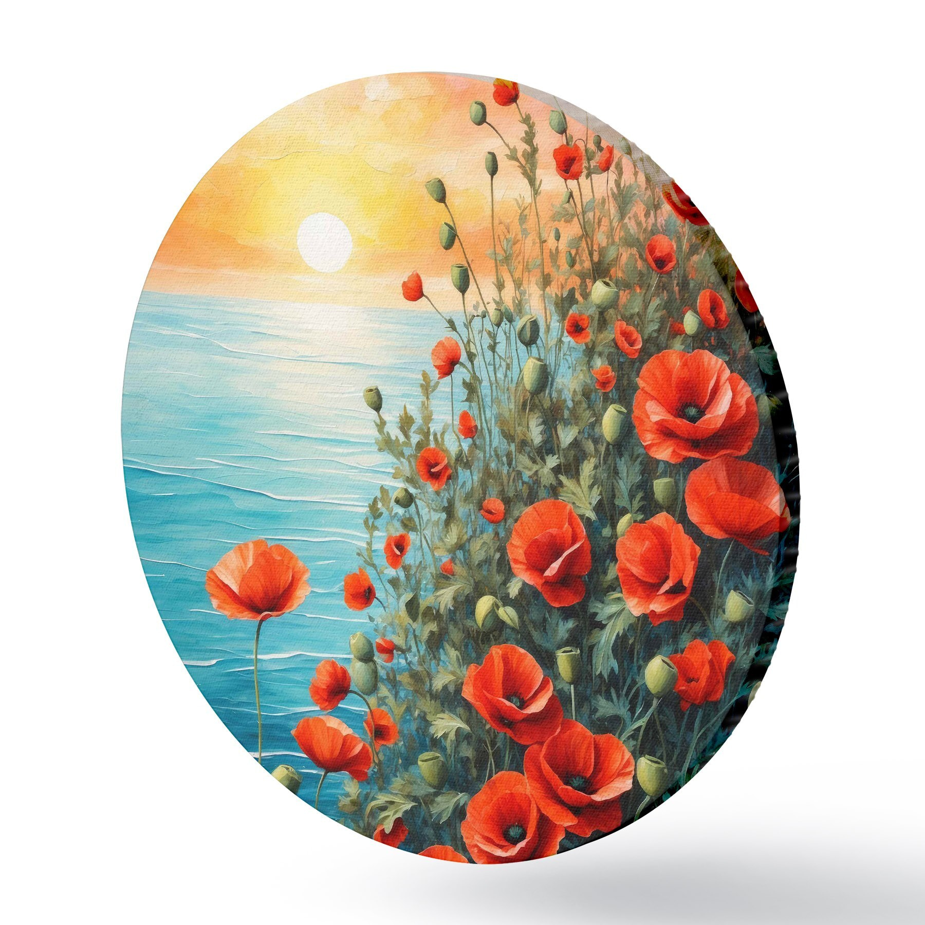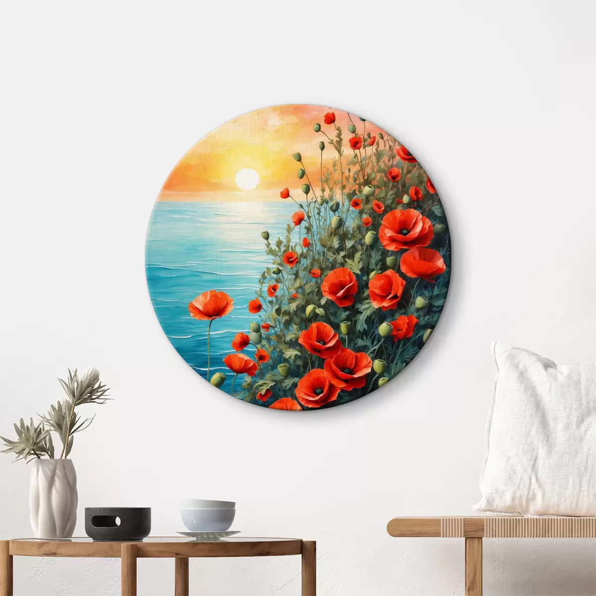 Runde Gemälde Blühende Mohnblumen vor dem Hintergrund des Meeres r40637