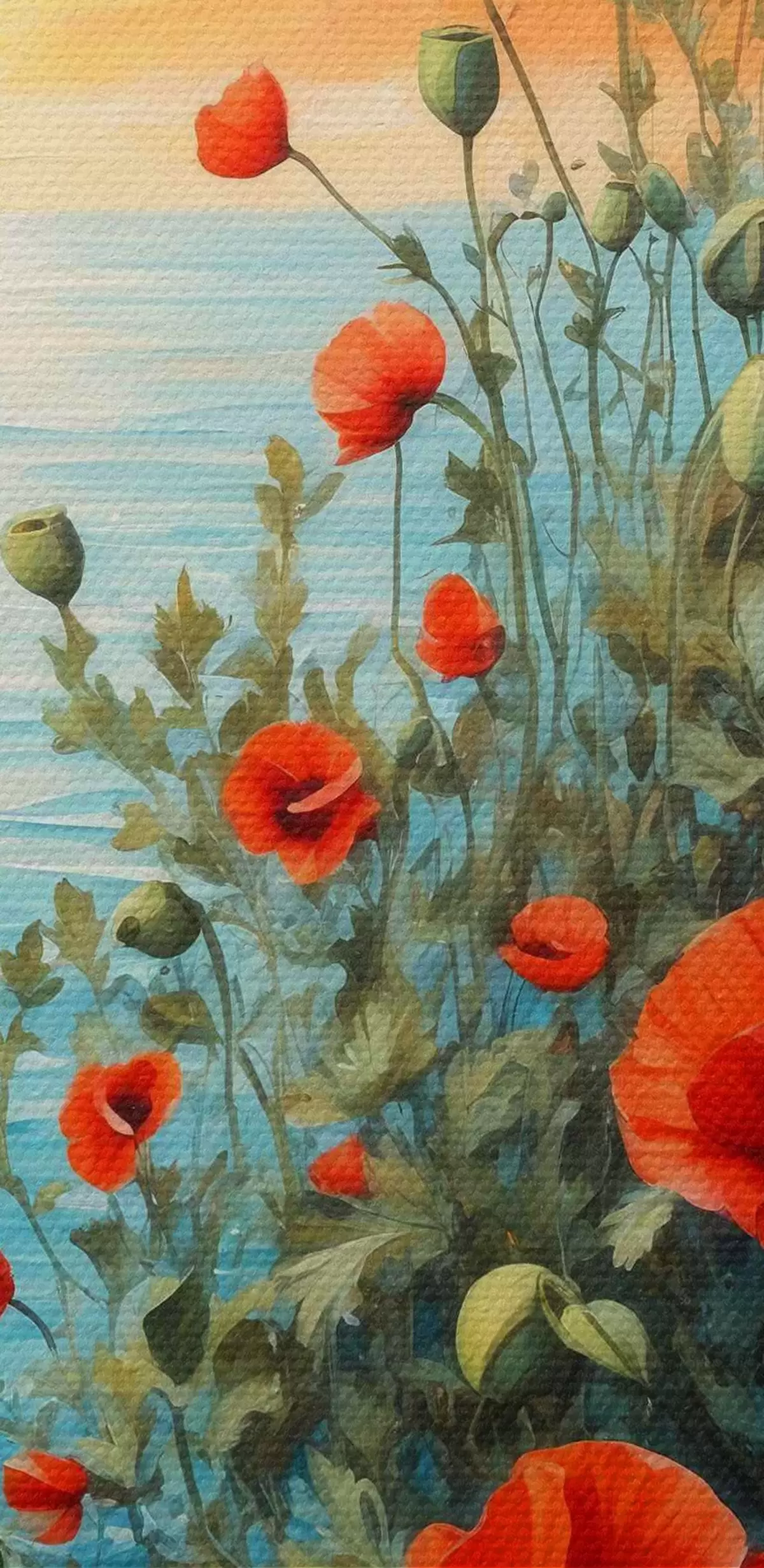 Bild Blühende Mohnblumen vor dem Hintergrund des Meeres Nr r40637