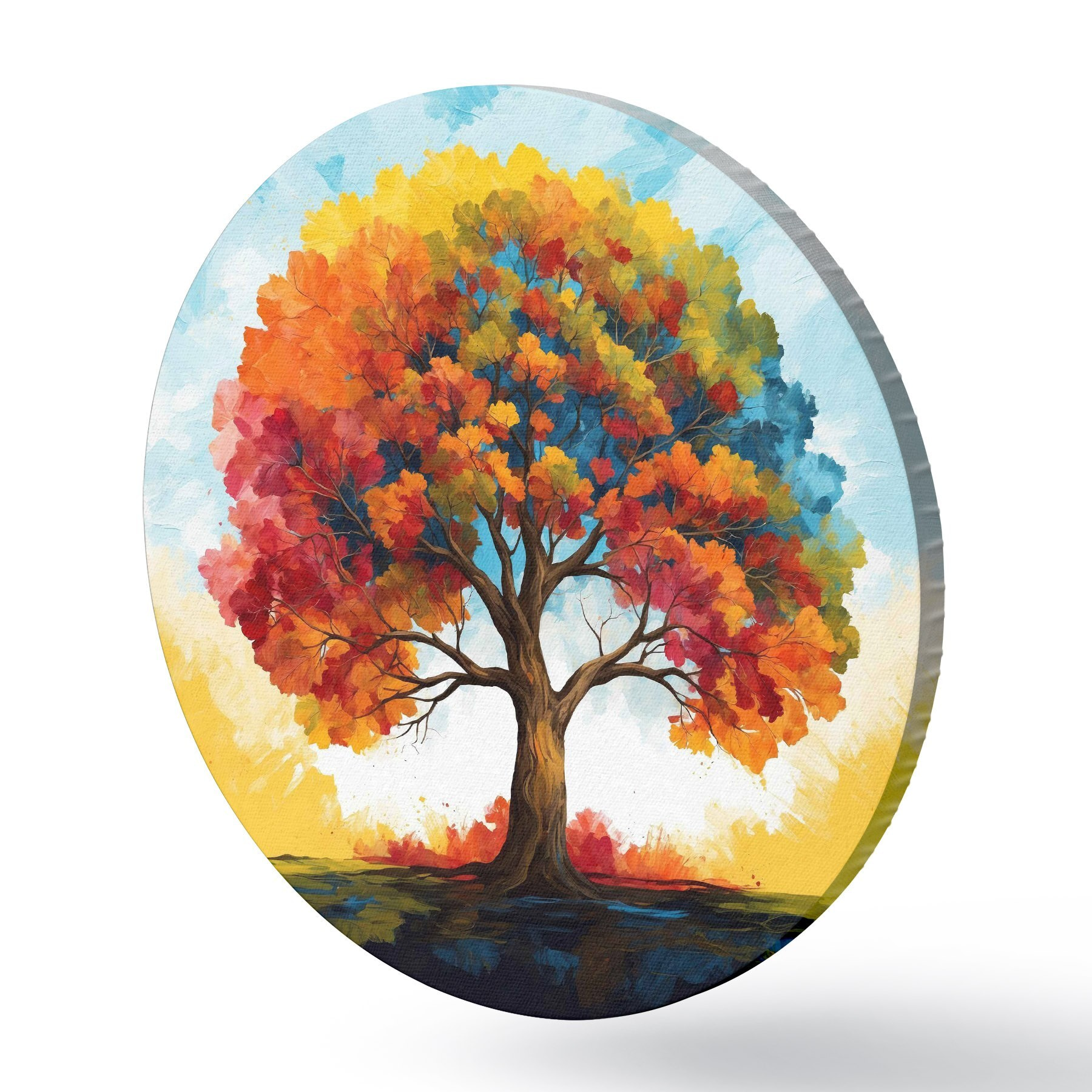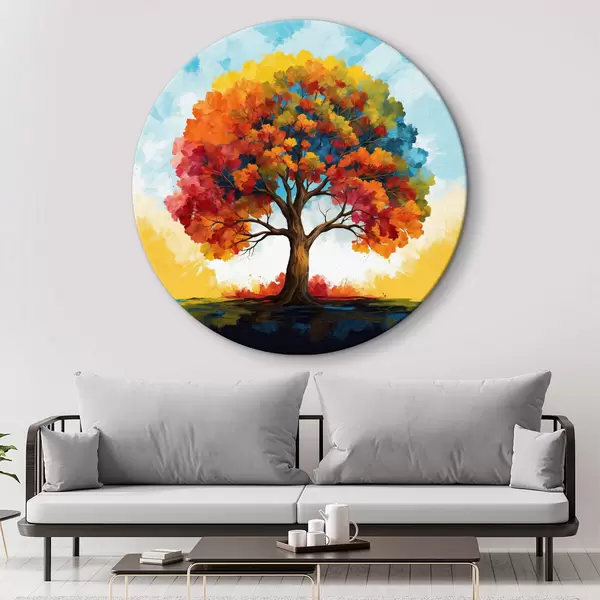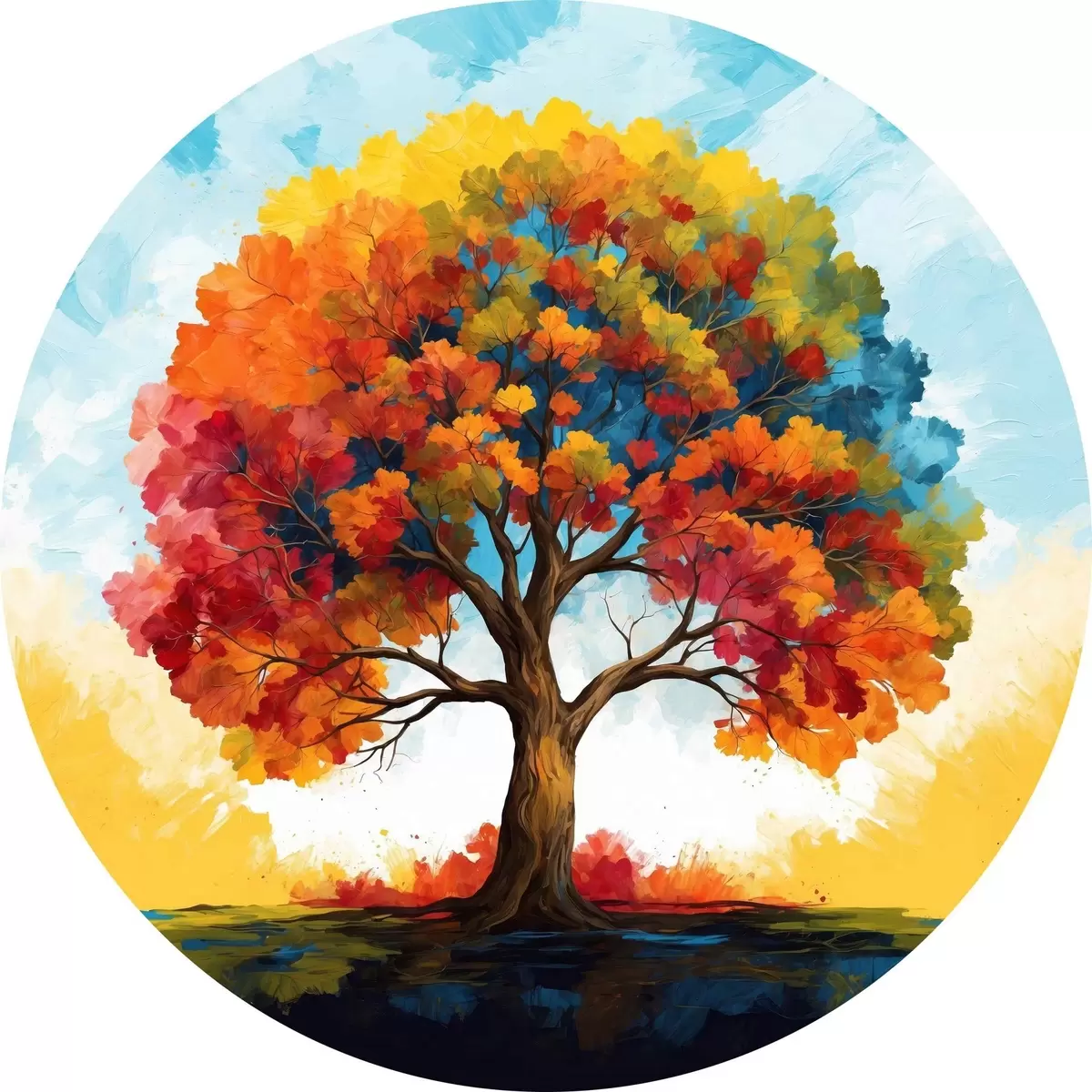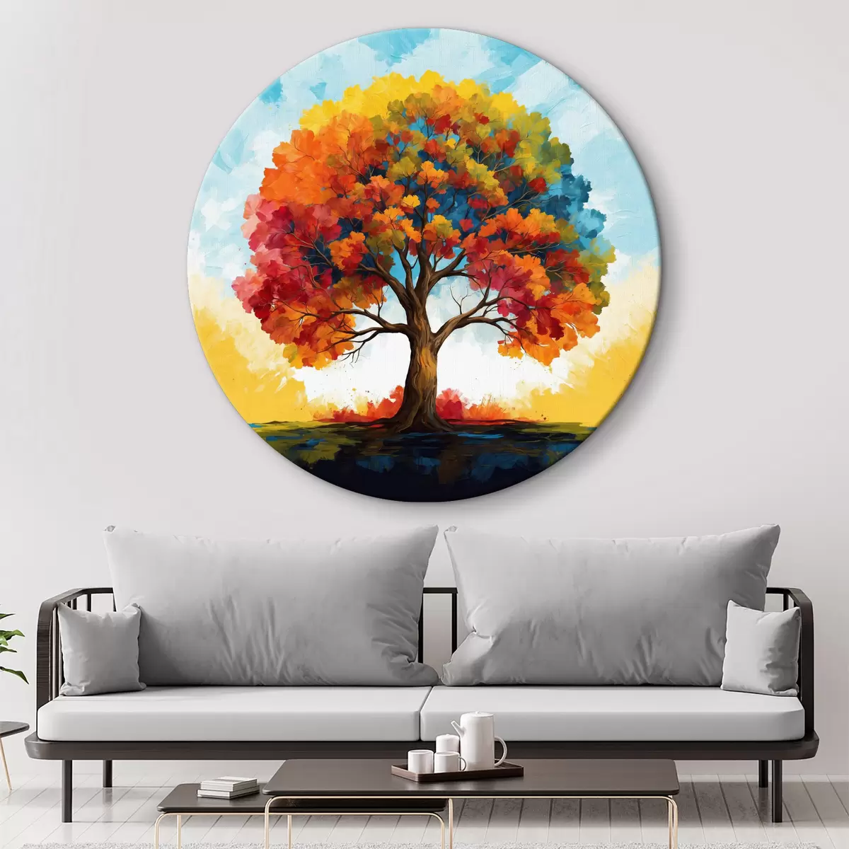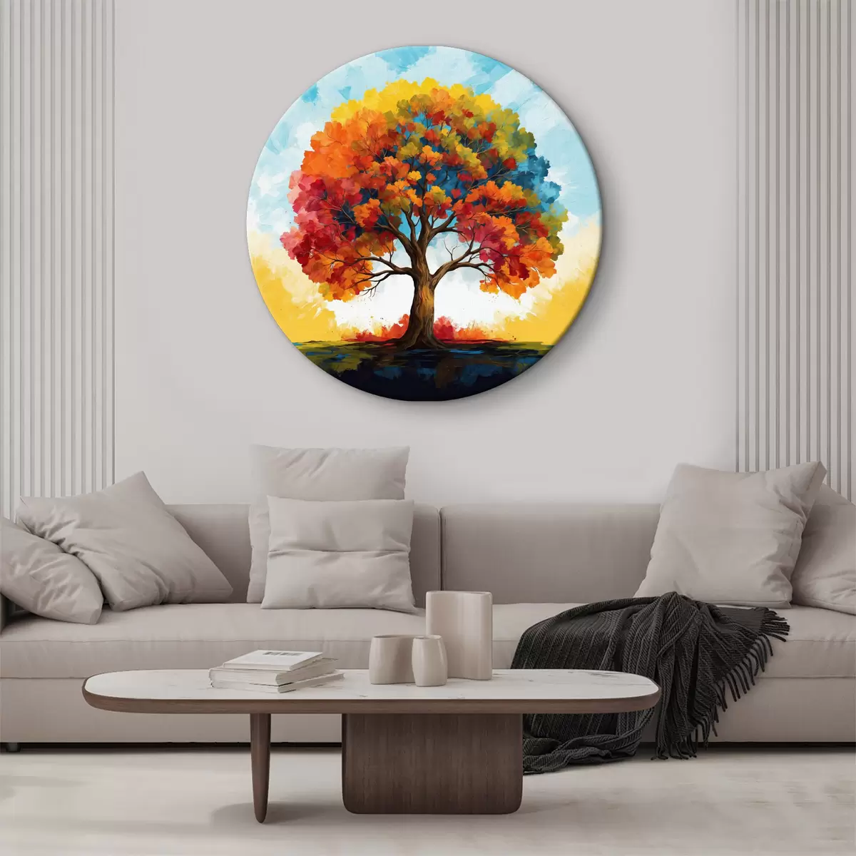 Runde Gemälde Ein riesiger Baum mit vielfarbigen Schirmen r40638