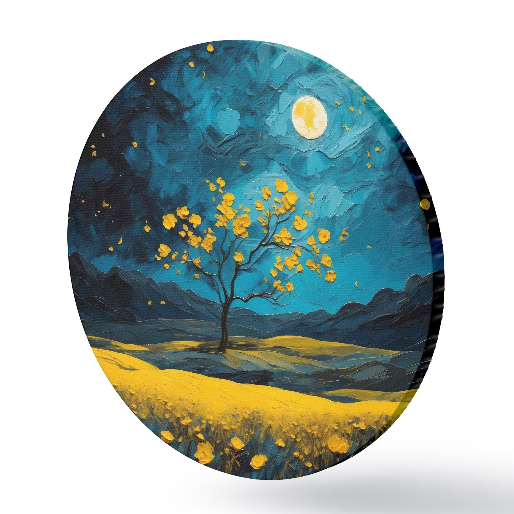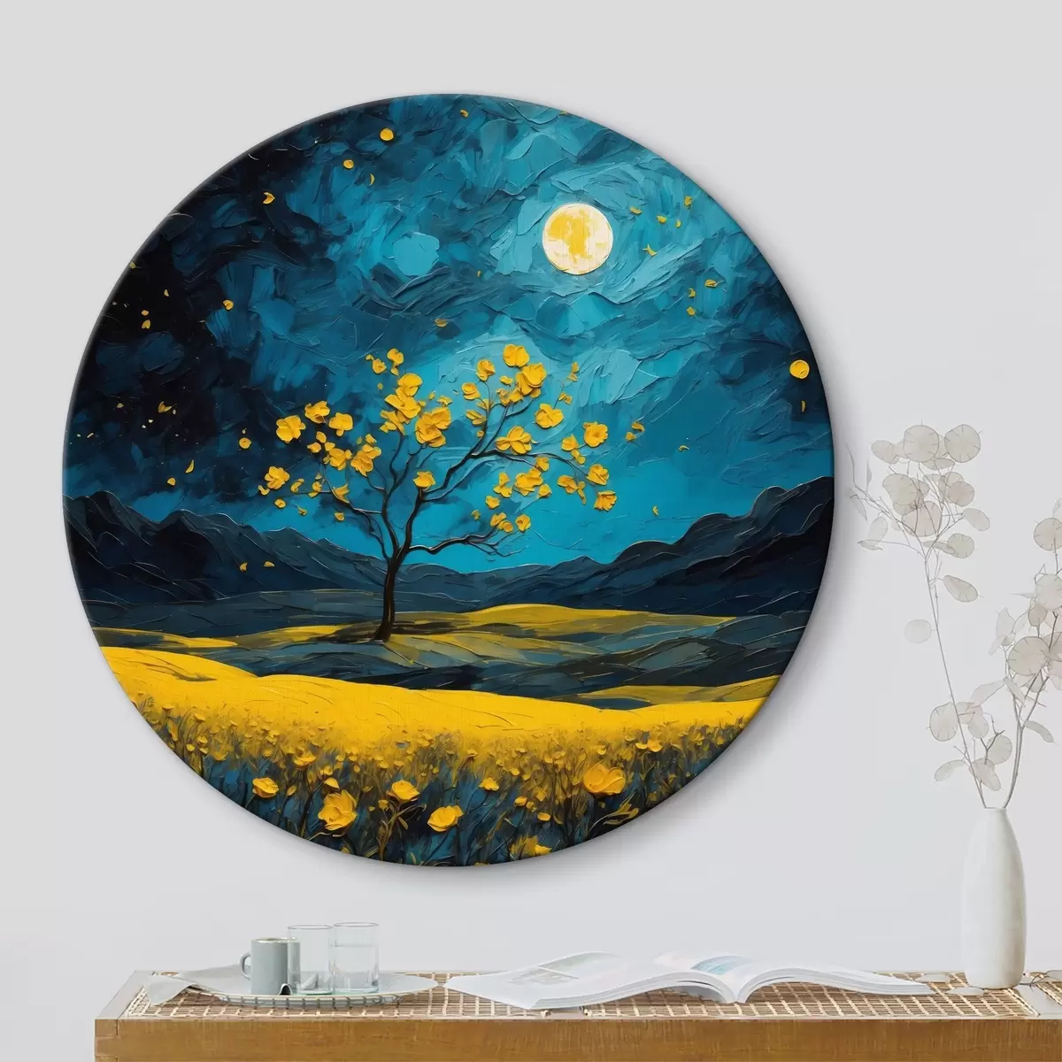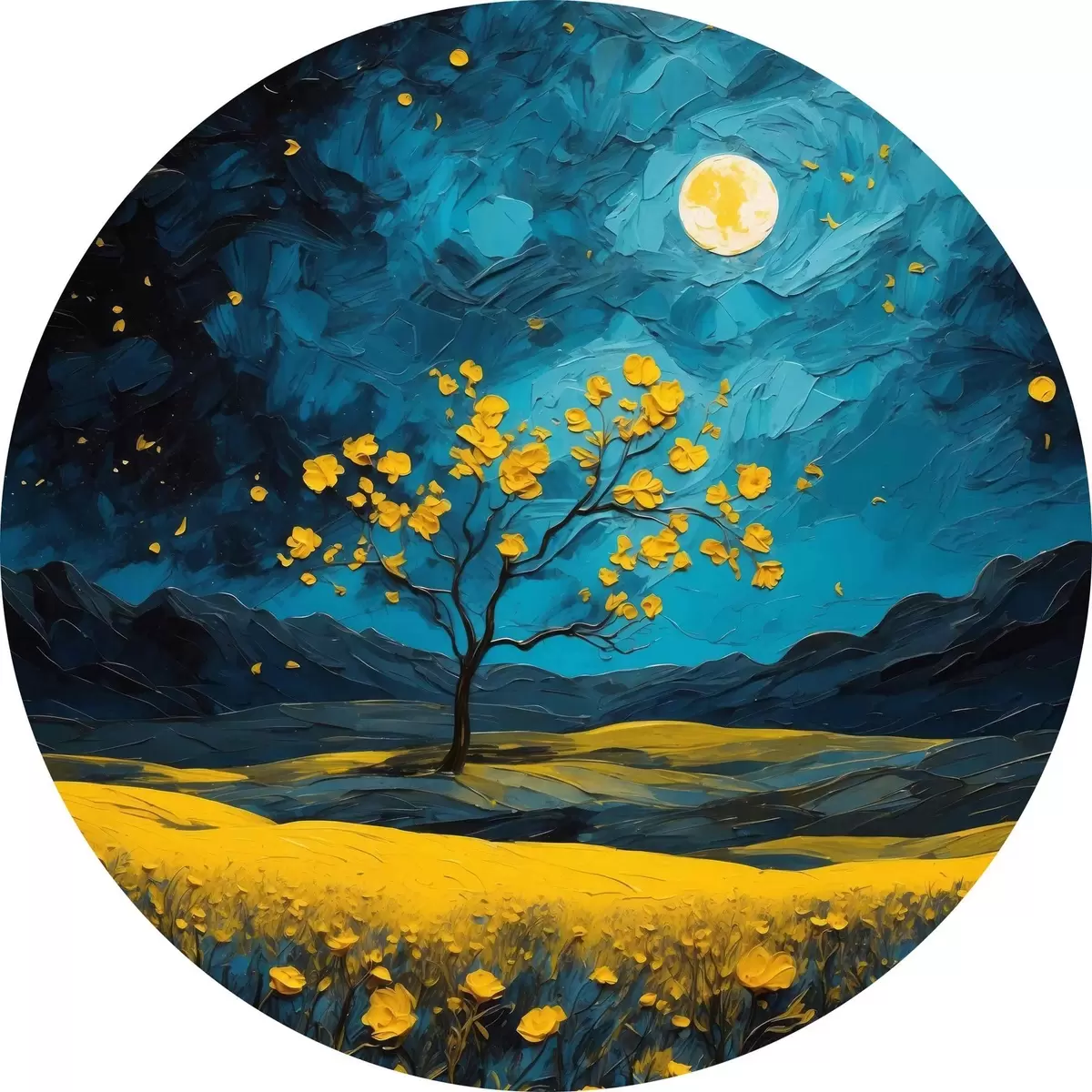 Runde Gemälde Feld mit gelben Blumen bei Nacht r40643