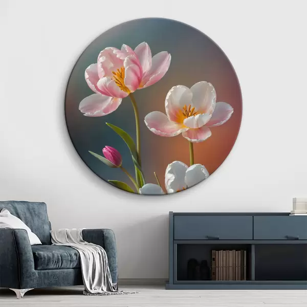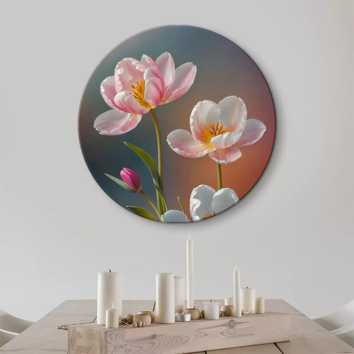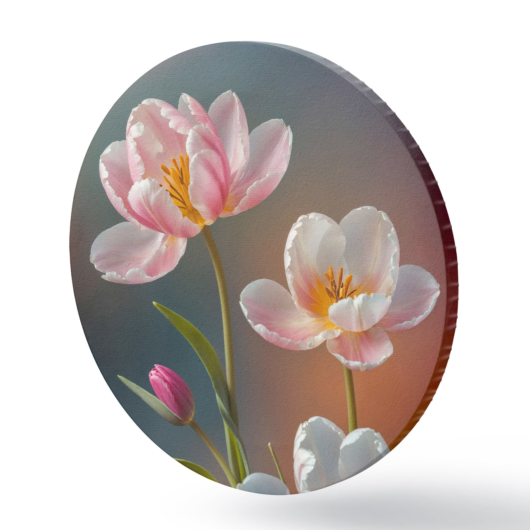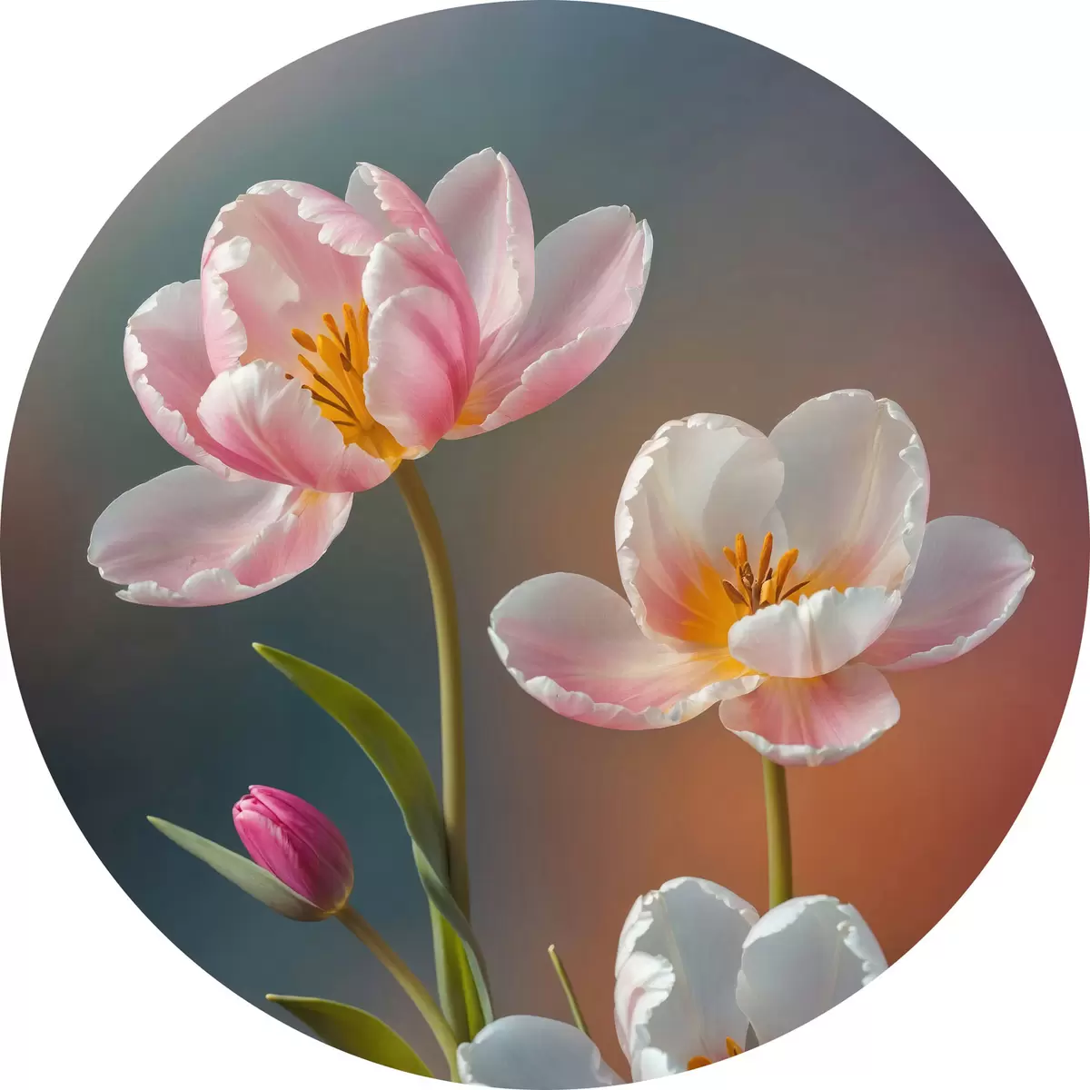 Runde Gemälde Rosa Blumen auf unscharfem Hintergrund r40644