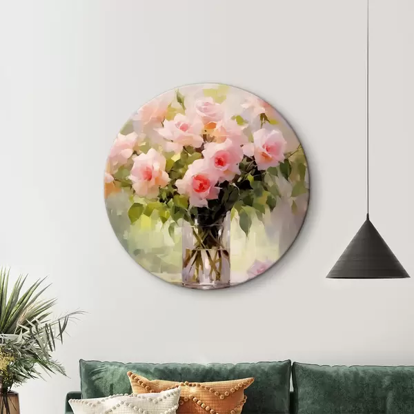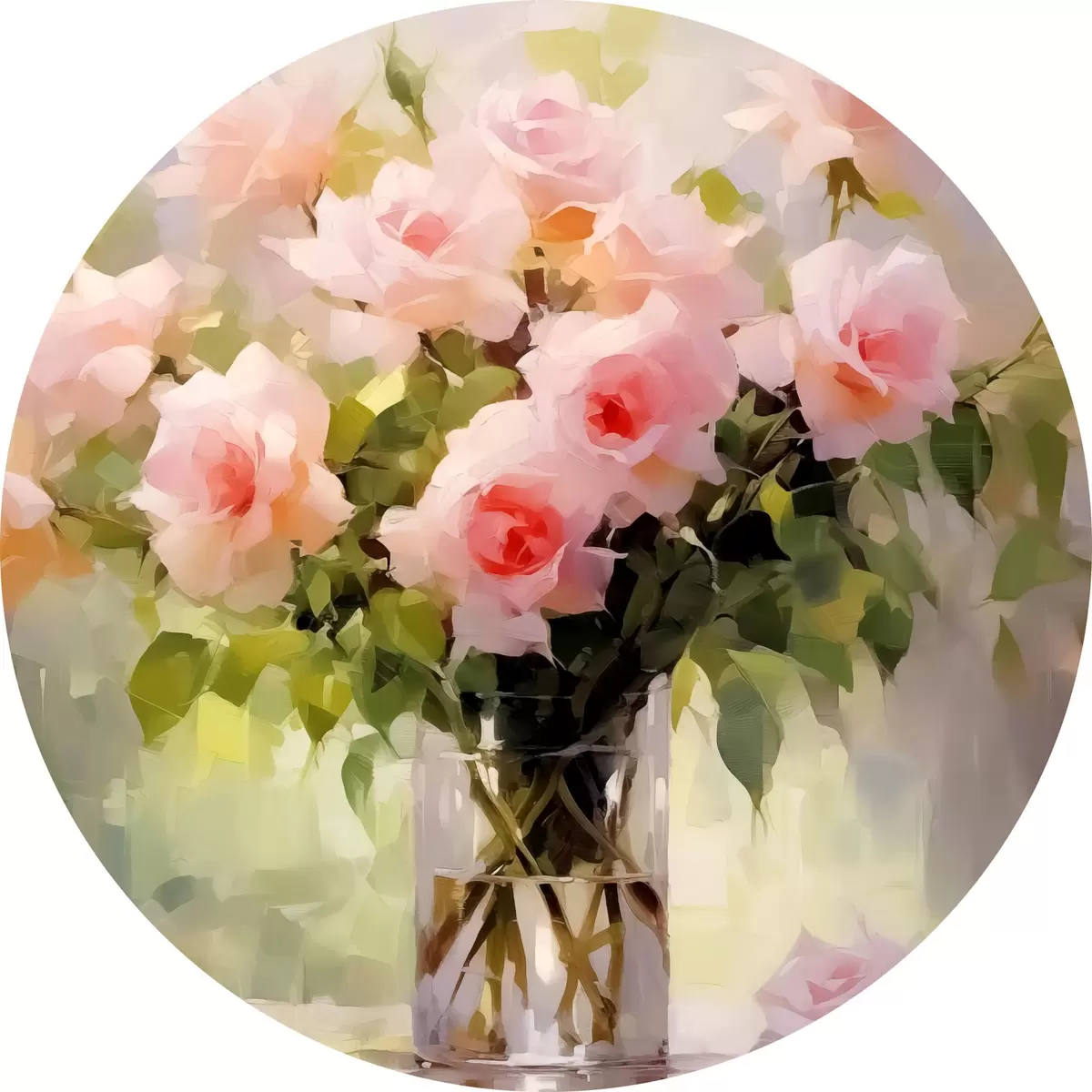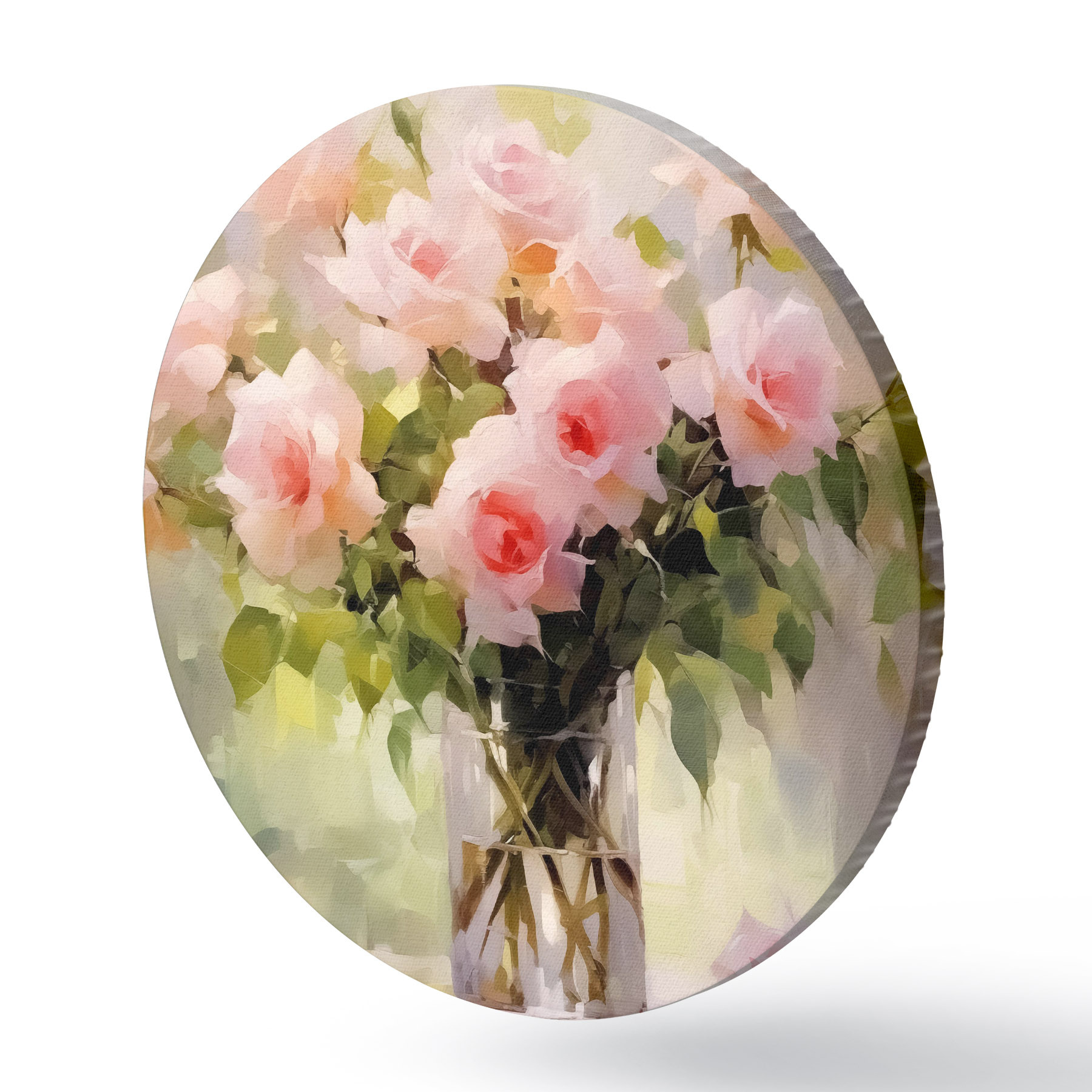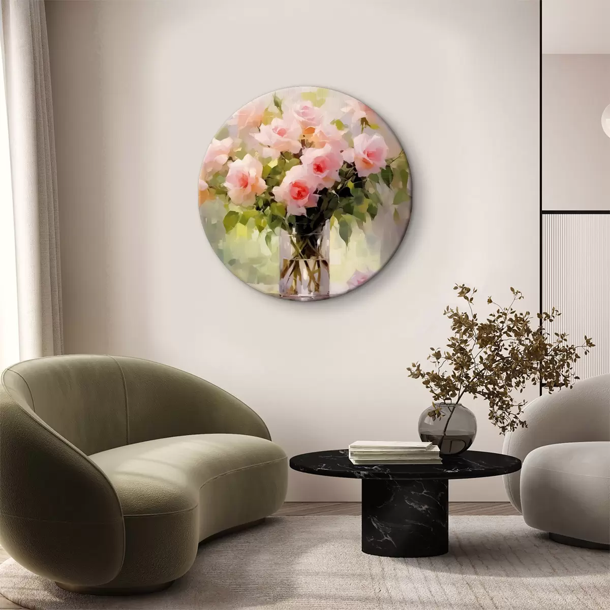 Runde Gemälde Ein Blumenstrauß aus rosa Rosen in einer Glasvase r40684