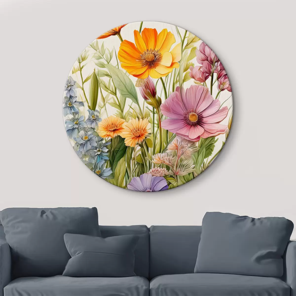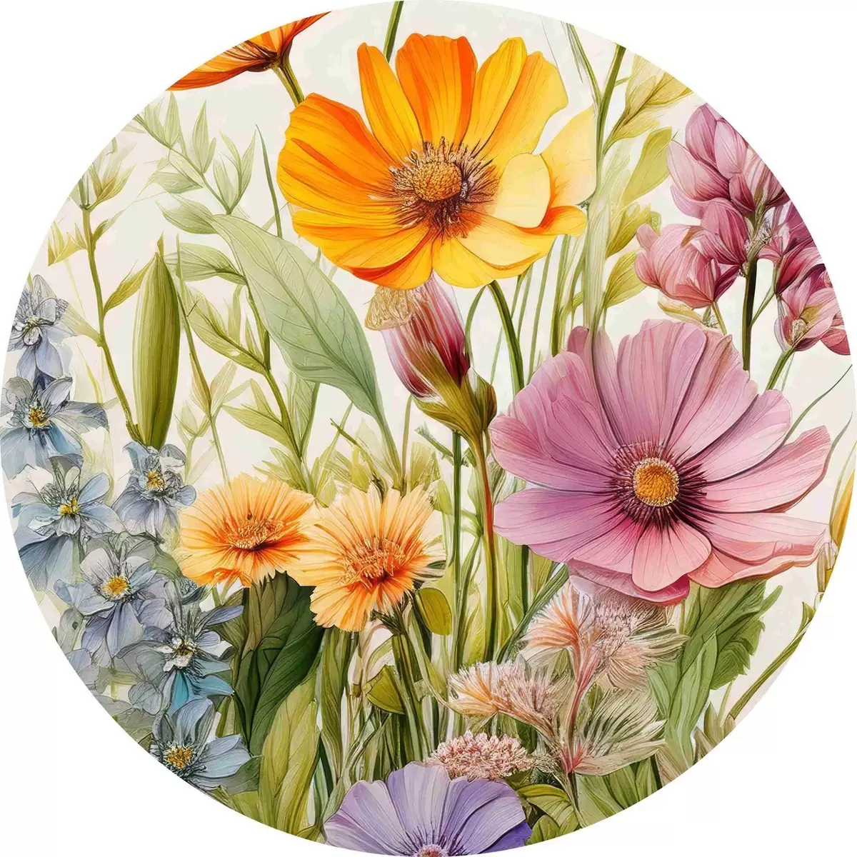 Runde Gemälde bunte Wildblumen, Blumenarrangement r40708
