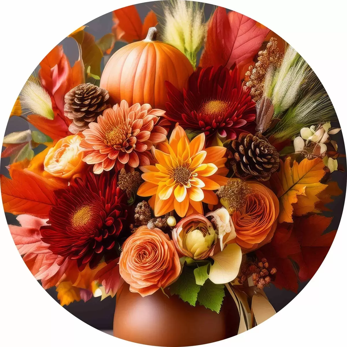 Runde Gemälde herbststrauß, Herbstblumen r40714