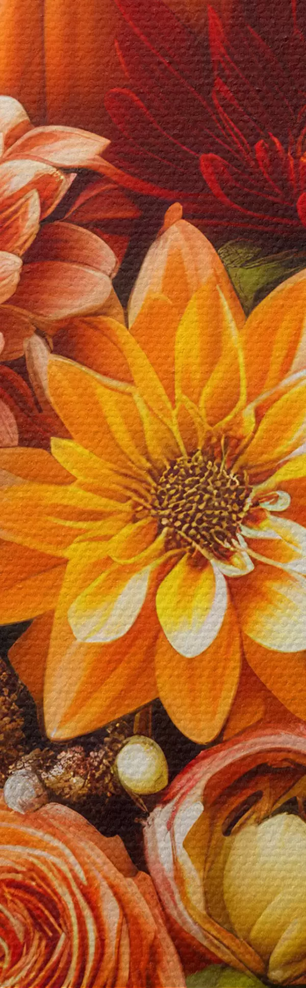 Drei Materialtypen stehen zur Verfügung: Economic Canvas - ein dichtes und haltbares Material für den Digitaldruck, identisch mit Malerleinwand, wasserfeste Oberfläche, realistische Wiedergabe von Details, mittelkörniges Material. Premium Canvas - die Textur ähnelt der einer Malerleinwand (verwobene kleine Fäden). Weiche, detaillierte Wiedergabe des Bildes auf einer matten Oberfläche. Eco-Premium - hochwertiges Gewebe aus 100% Baumwolle. Dank der natürlichen Baumwollfasern ist das Material langlebig und verschleißfest. Hervorragende Farbwiedergabe und Detailtreue.