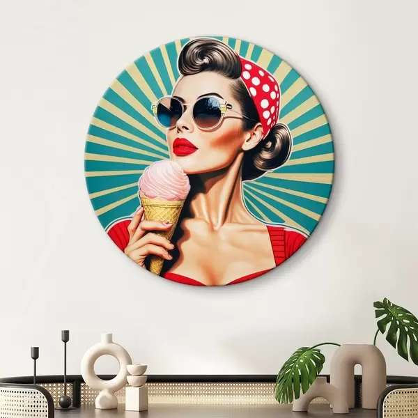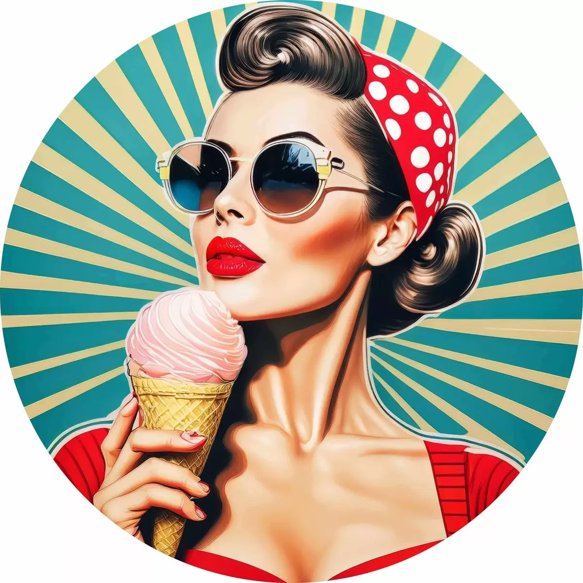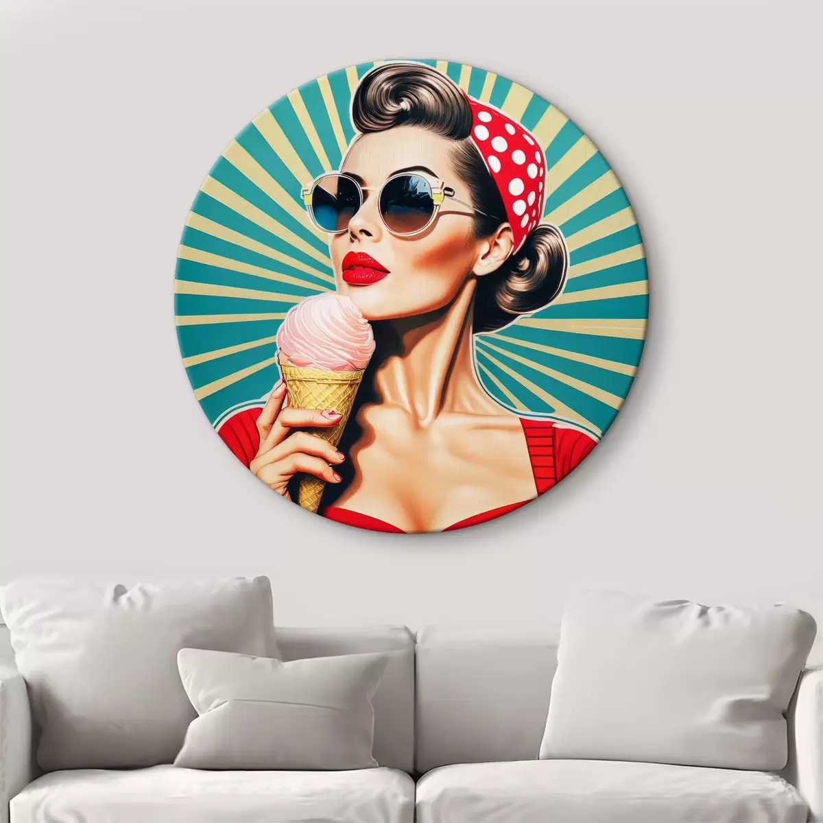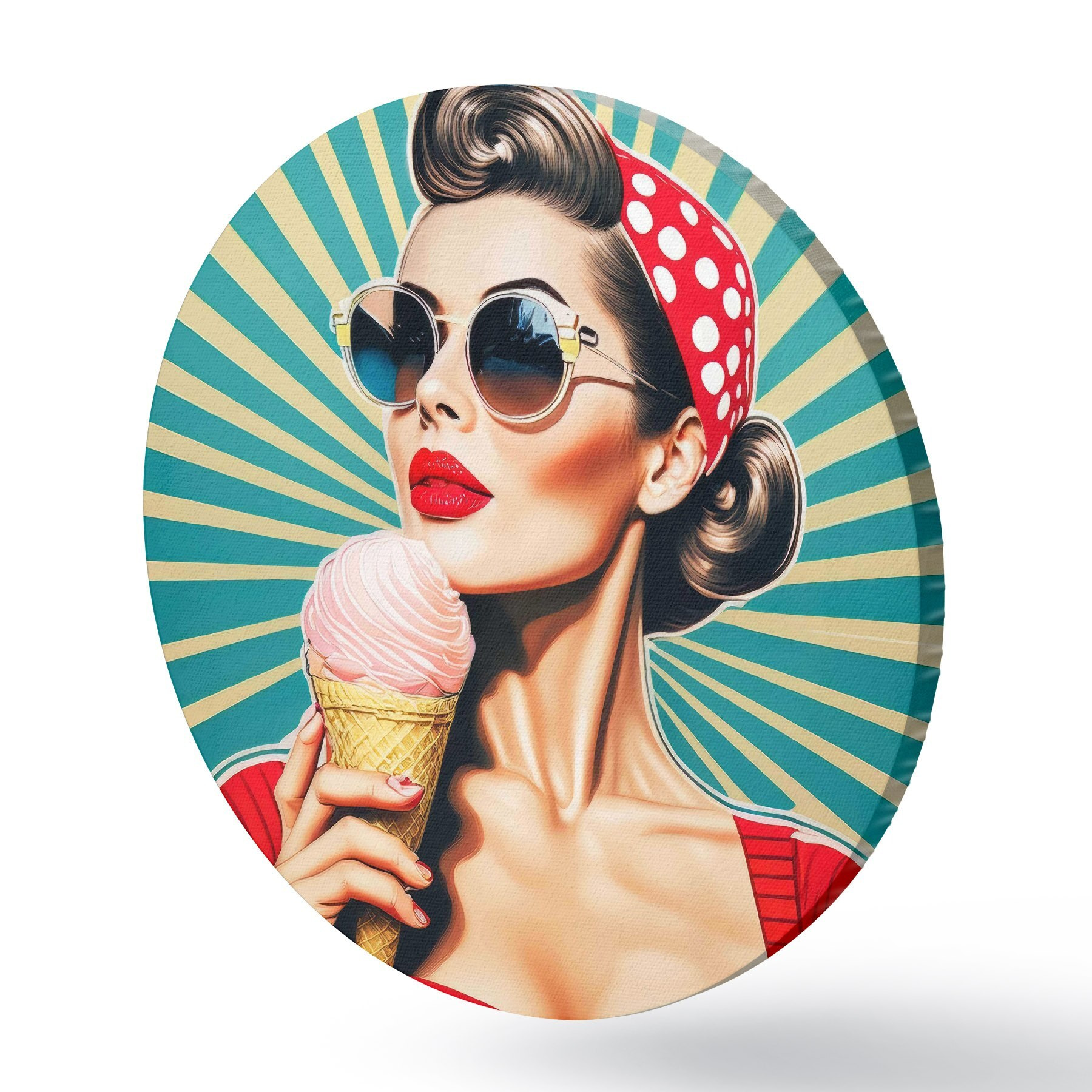 Runde Gemälde mädchen mit Eiscreme, Pop-Art, Pin-up, Retro r40718