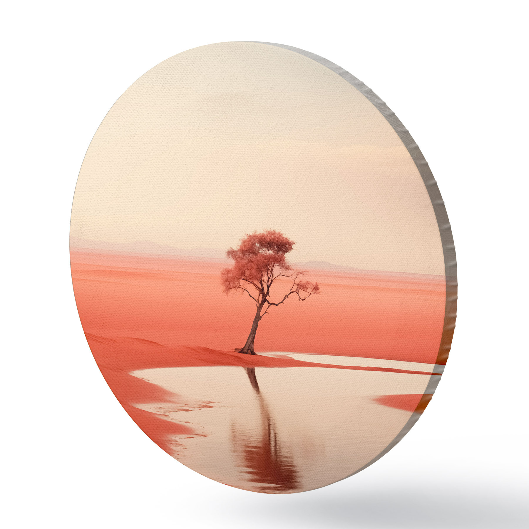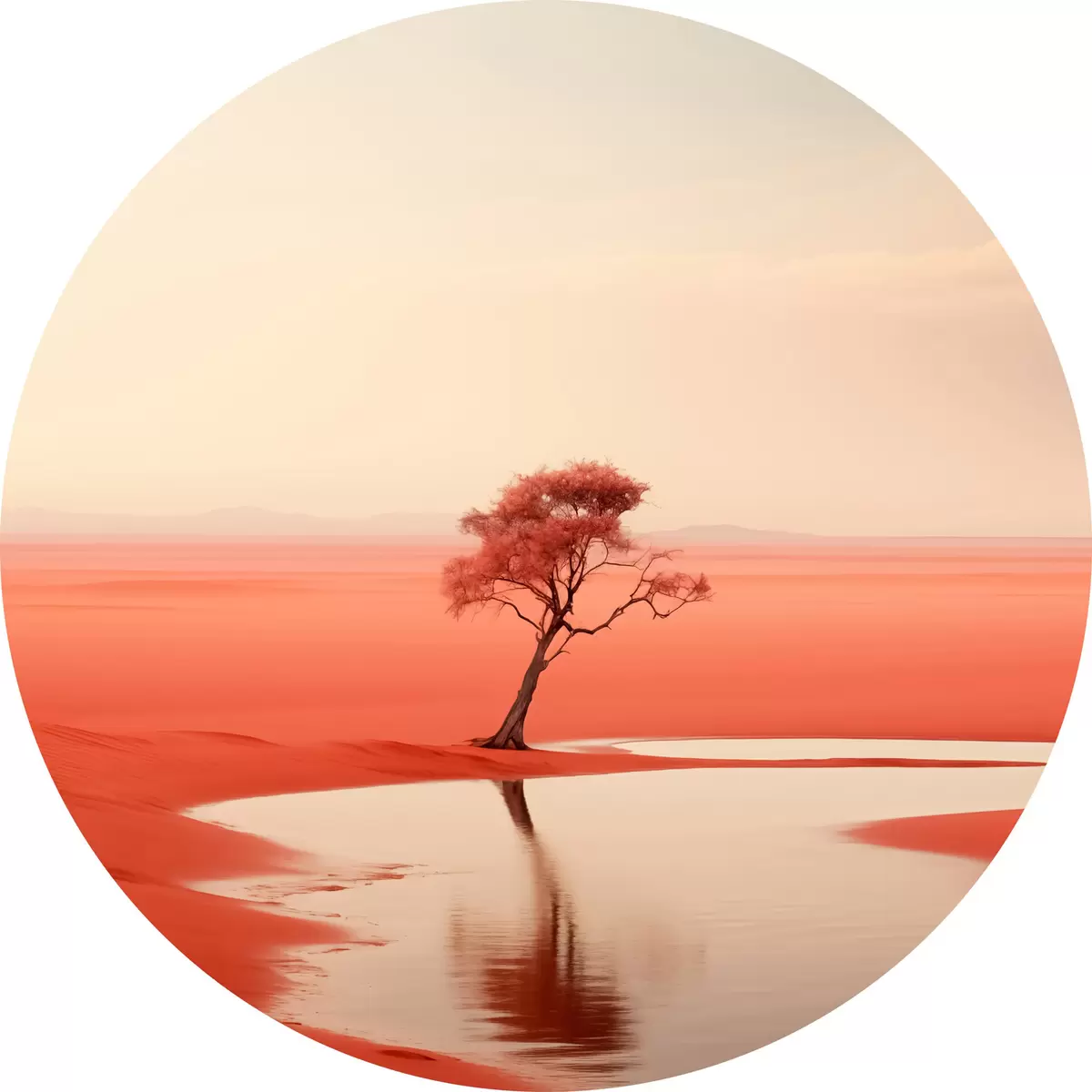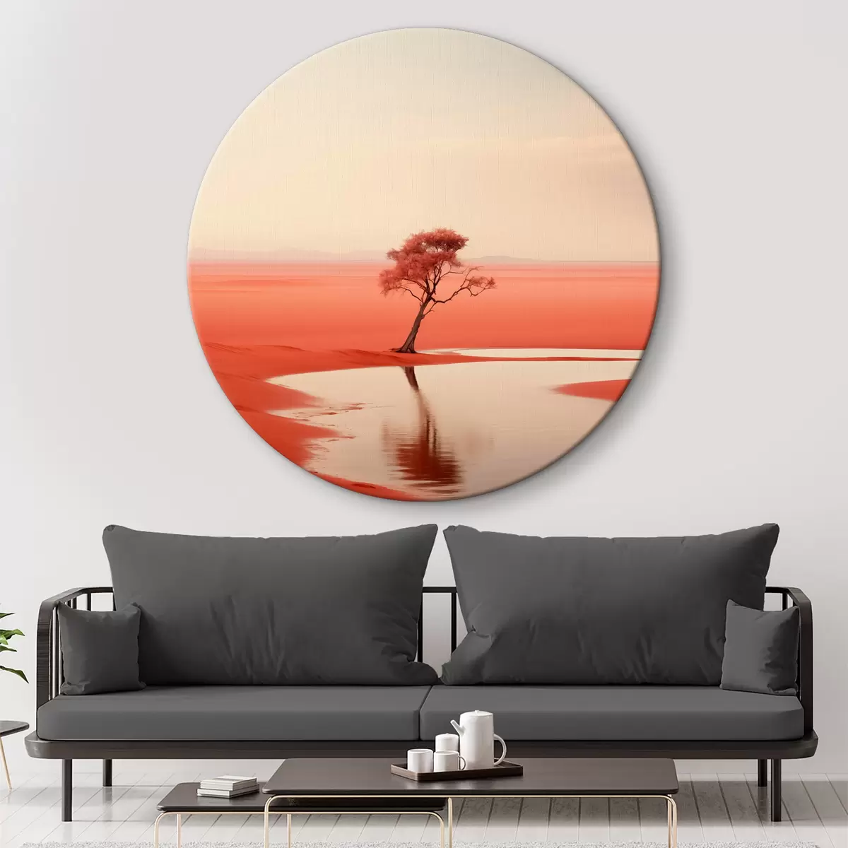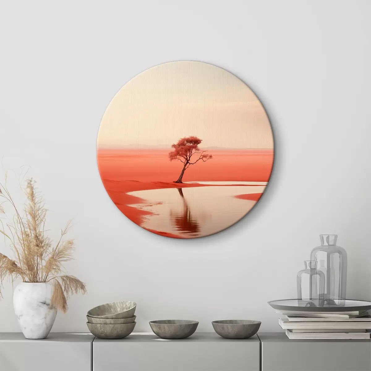 Runde Gemälde Minimalistische Baumlandschaft am Fluss, rot, grau Farbe r40722