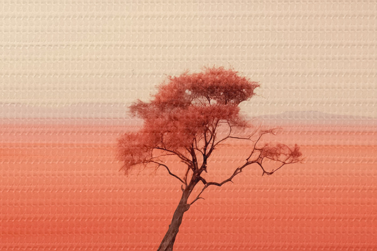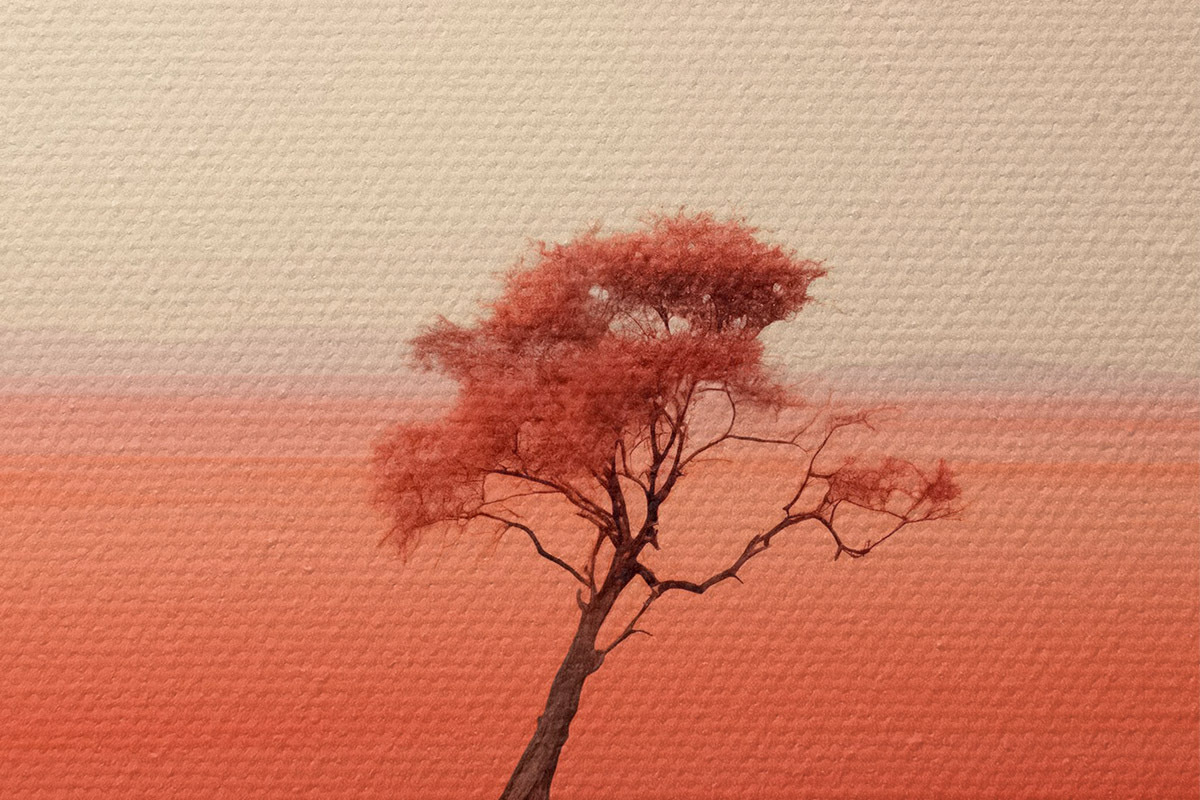 Bild Minimalistische Baumlandschaft am Fluss, rot, grau Farbe Nr r40722
