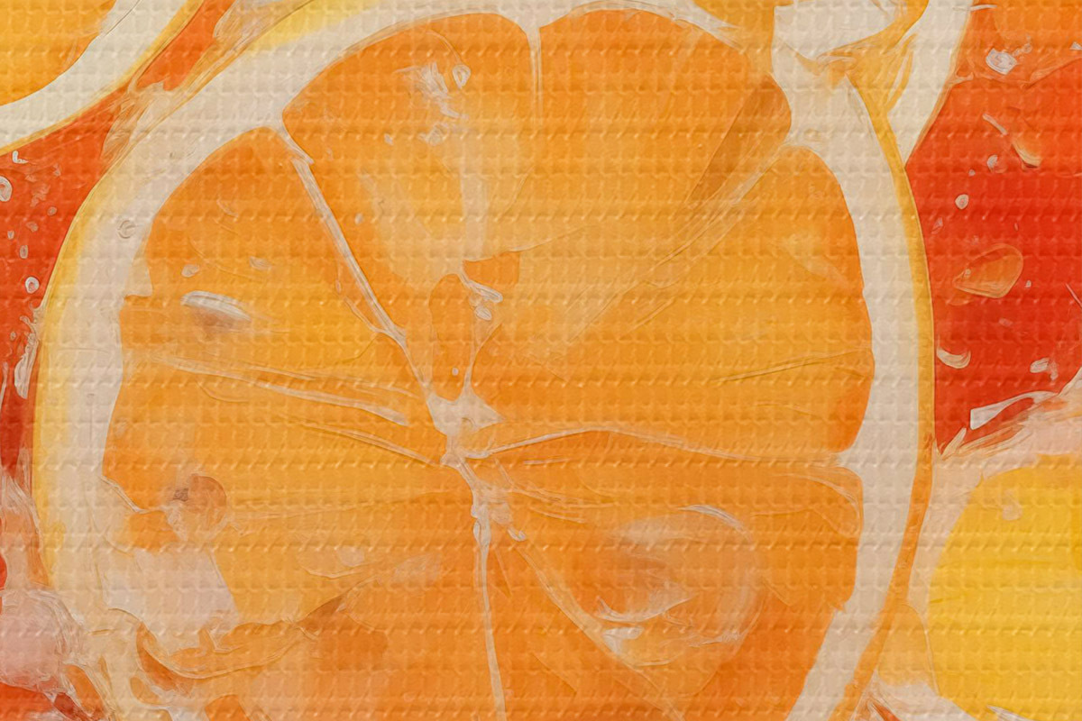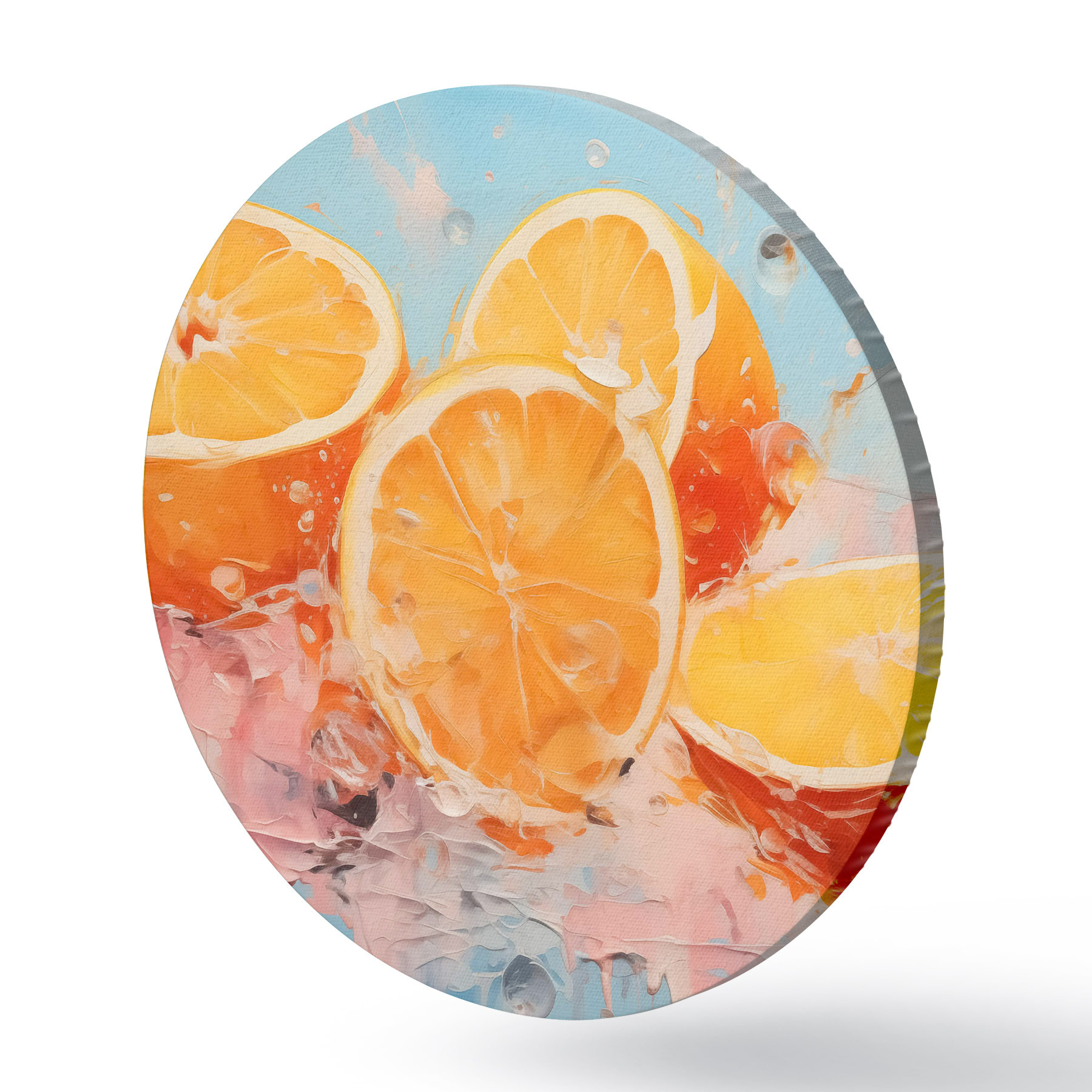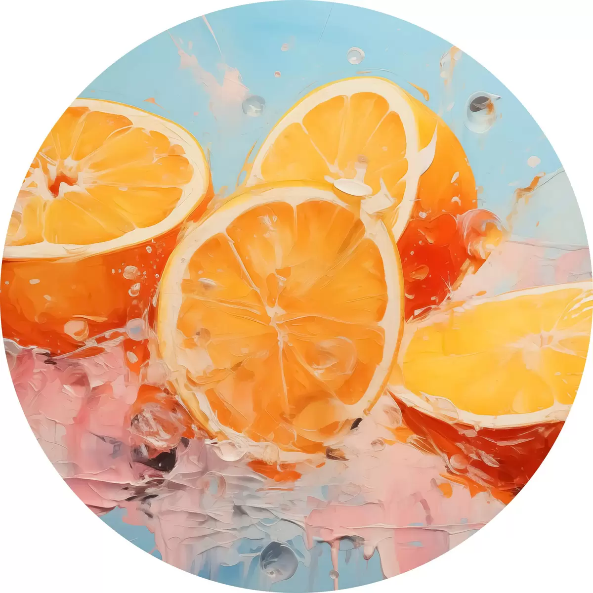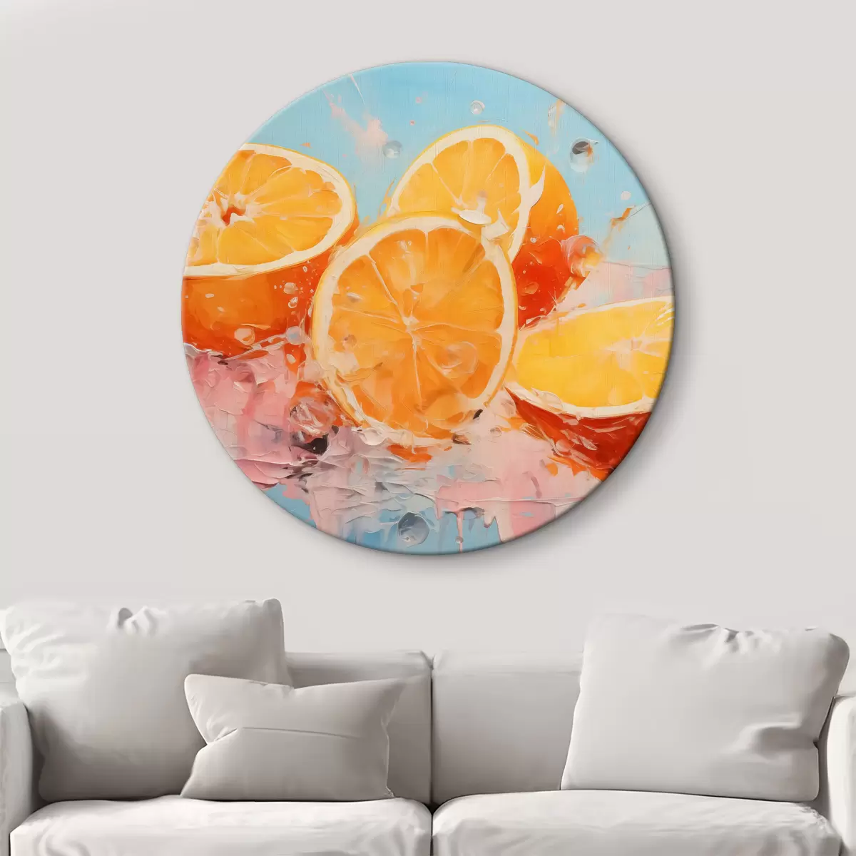 Runde Gemälde Orangenhälften auf dem Tisch, orange, rot, blau, rosa, gelb r40727