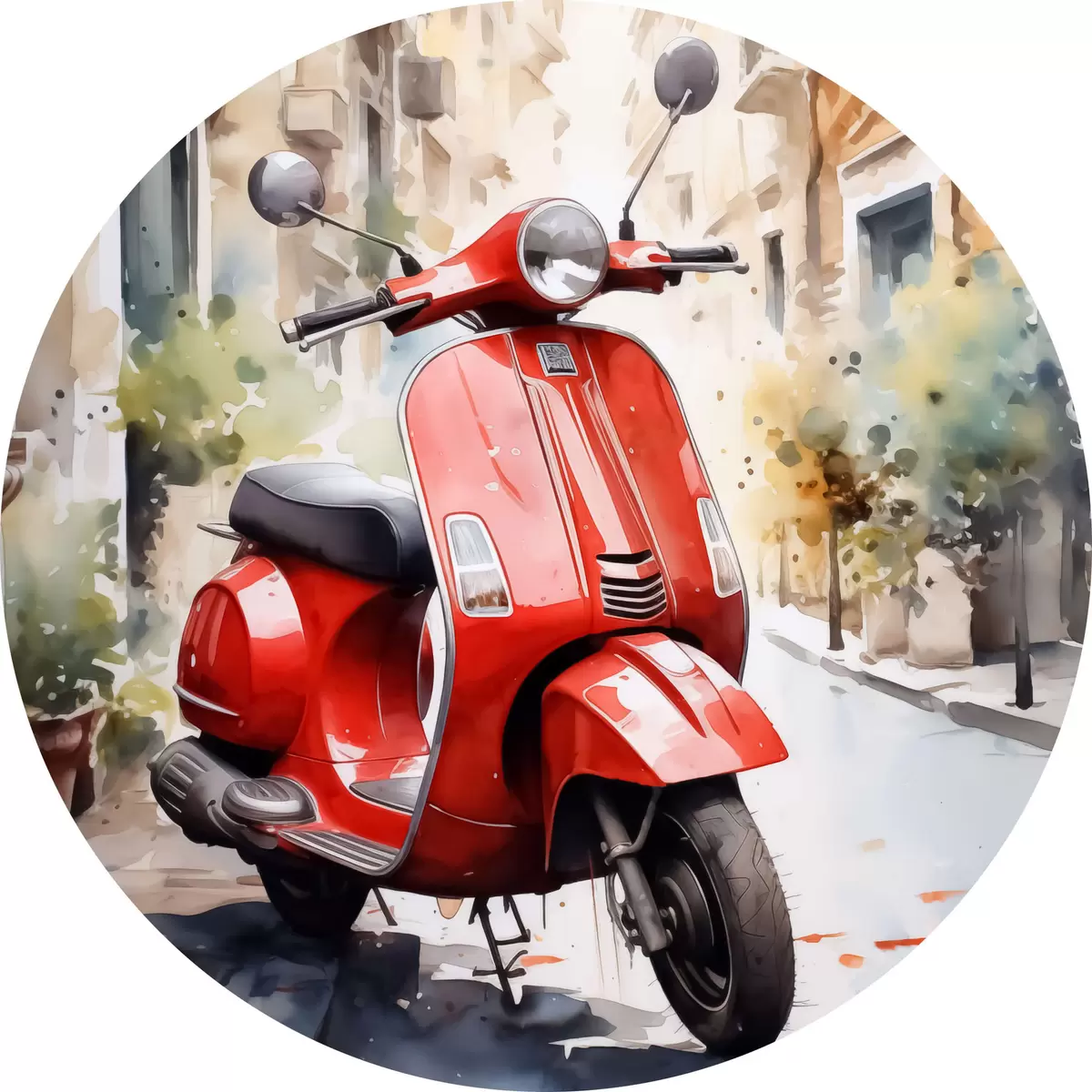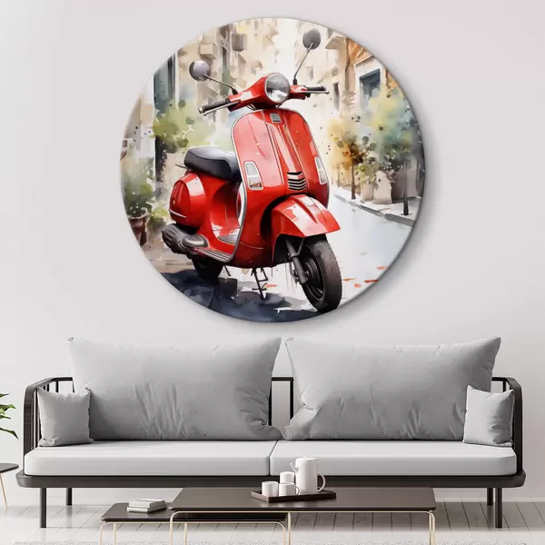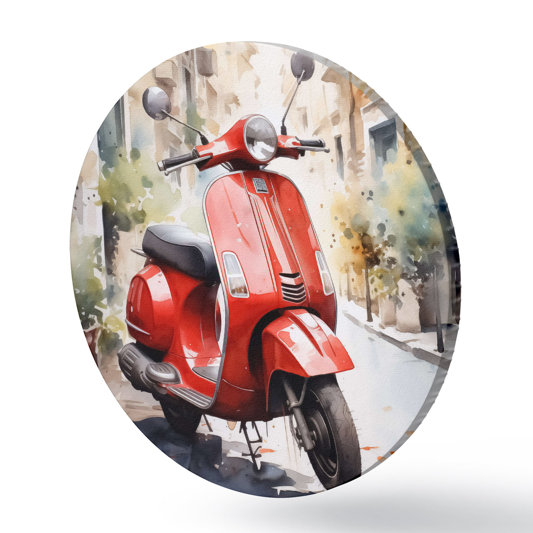 Runde Gemälde Rotes Motorrad auf der Straße von Rom Aquarell r40728