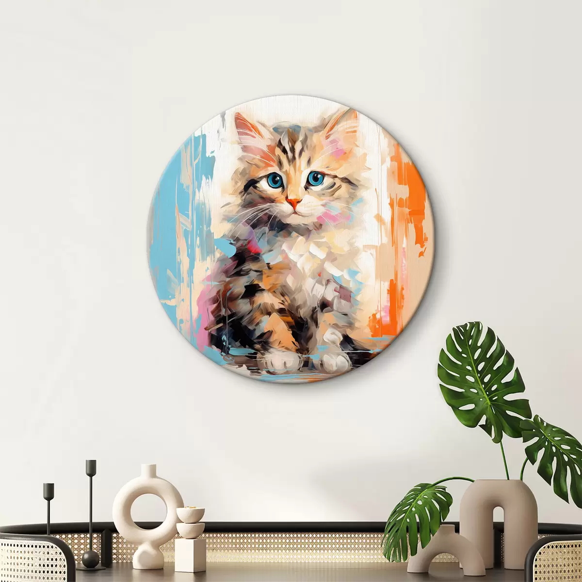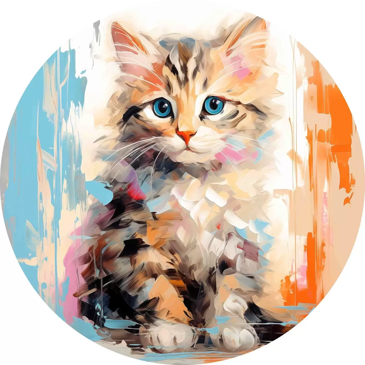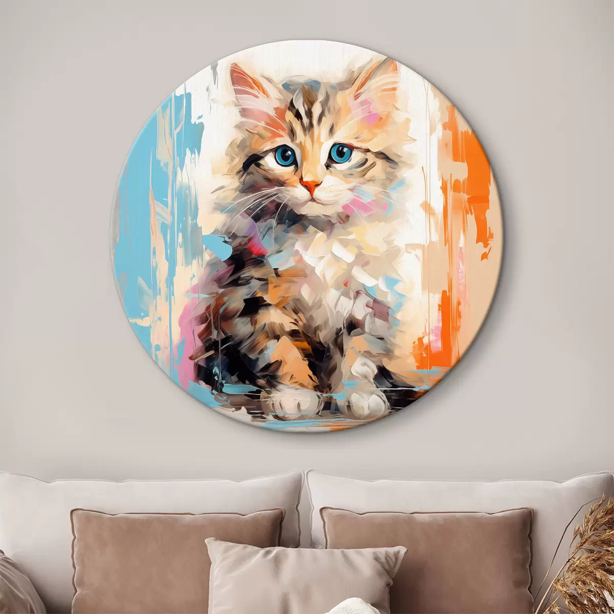 Runde Gemälde Kätzchen mit Pinselstrichen r40735