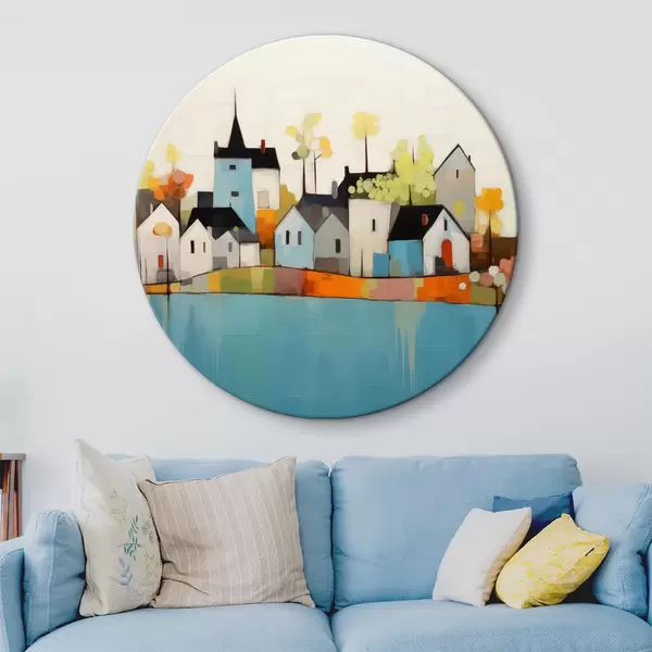 Runde Gemälde Abstrakte Stadt und Häuser, blau, gelb, rote Farben r40751