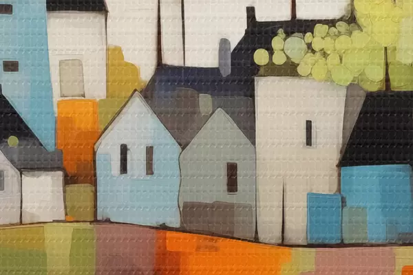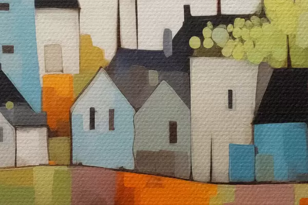 Bild Abstrakte Stadt und Häuser, blau, gelb, rote Farben Nr r40751