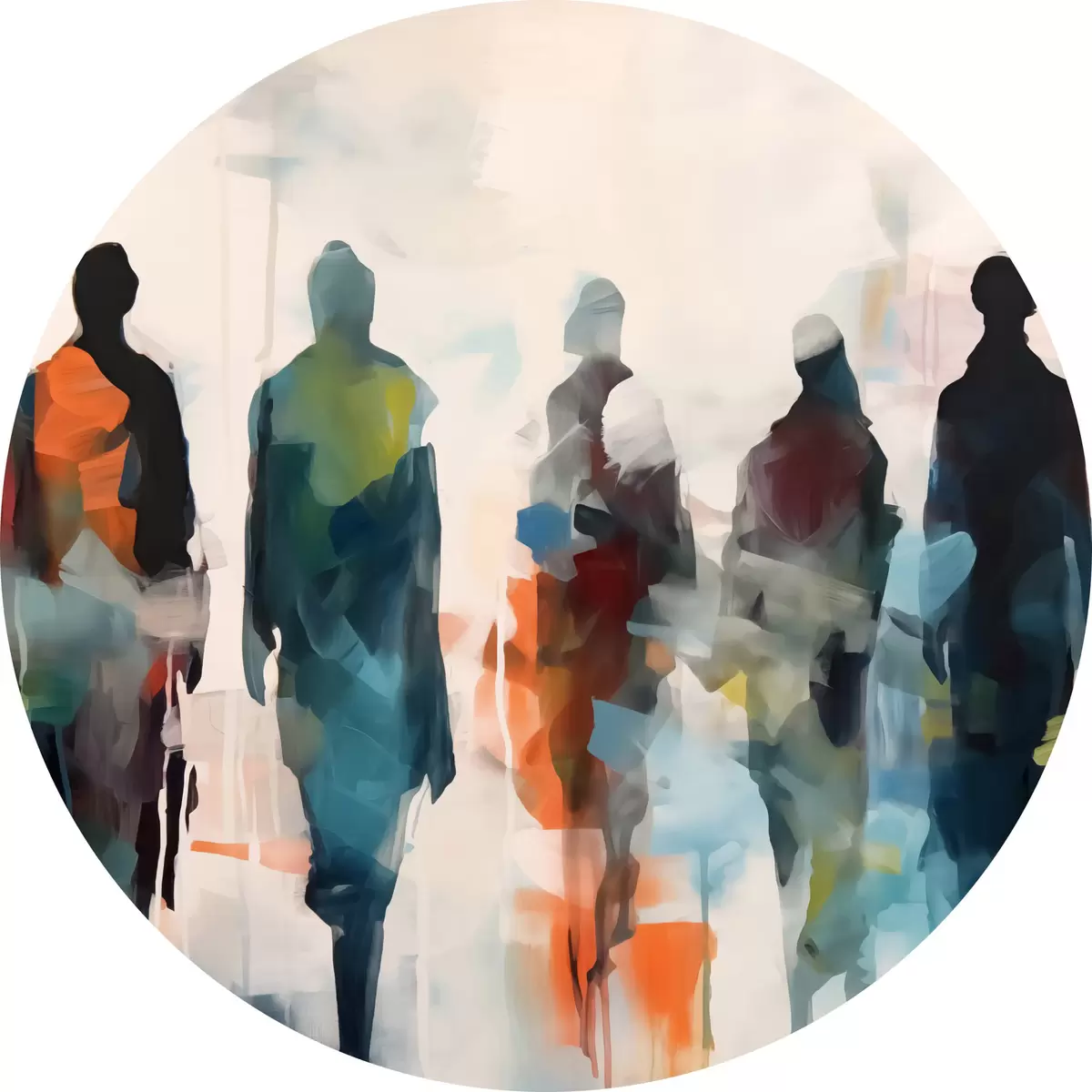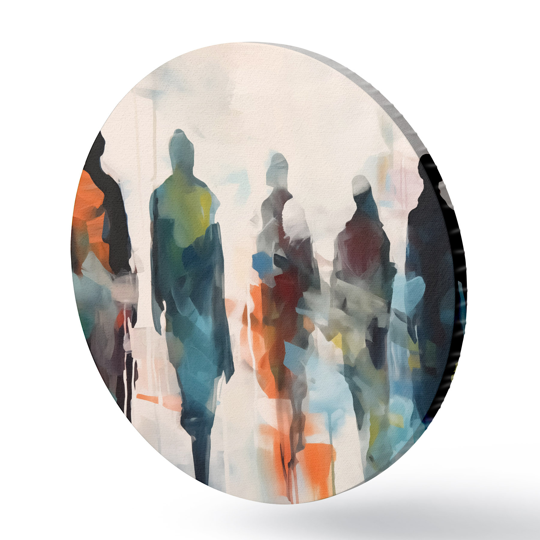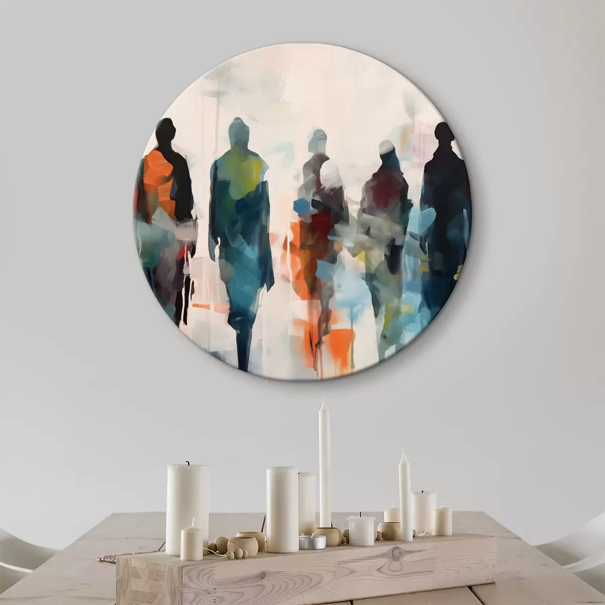 Runde Gemälde Silhouetten einer Gruppe von abstrakten Menschen, Nachahmung von Pinselstrichen r40752