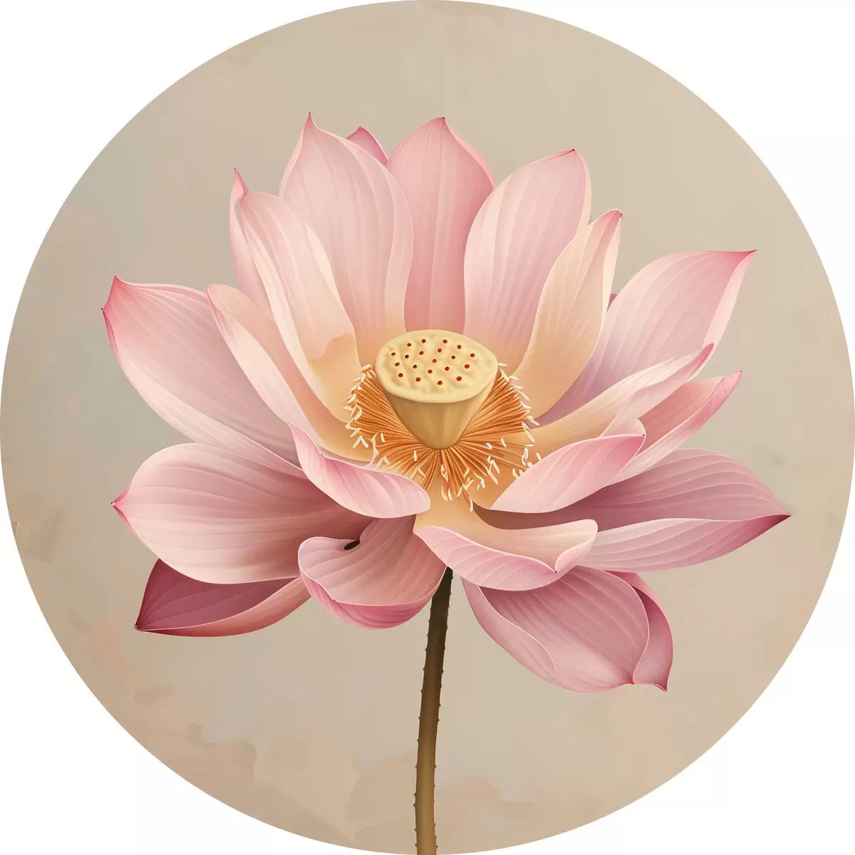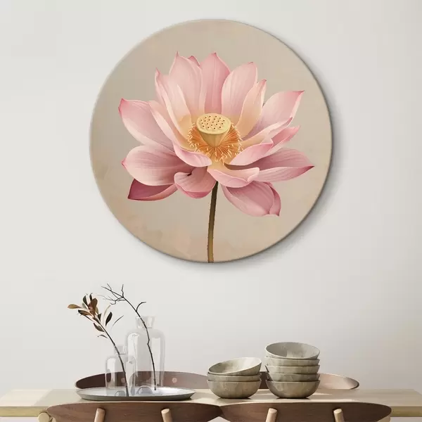 Runde Gemälde Rosa Lotos auf beigem Hintergrund r40769