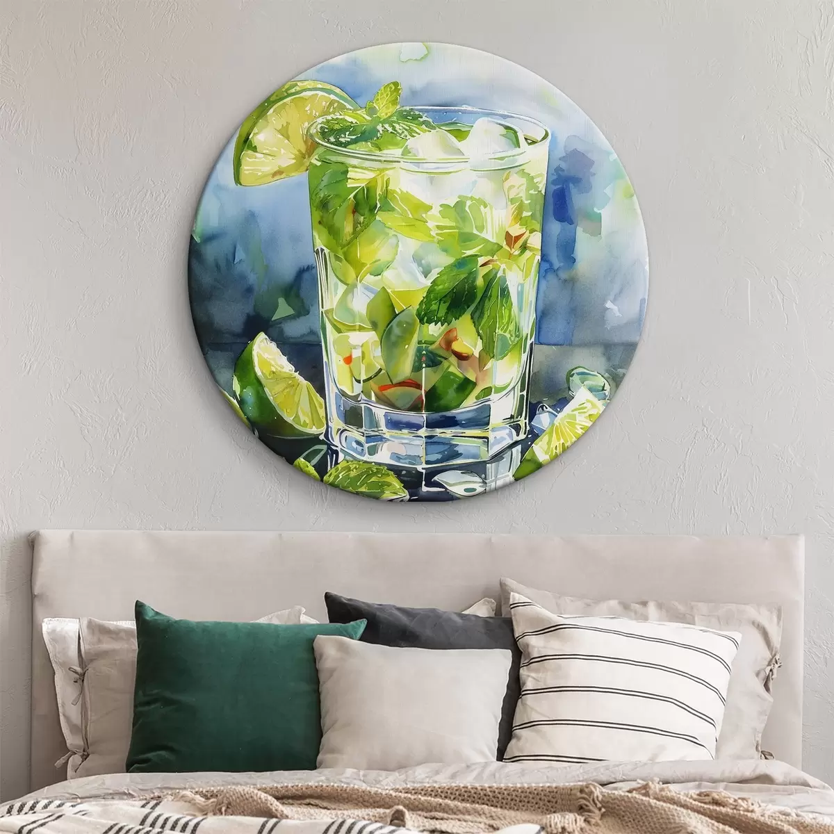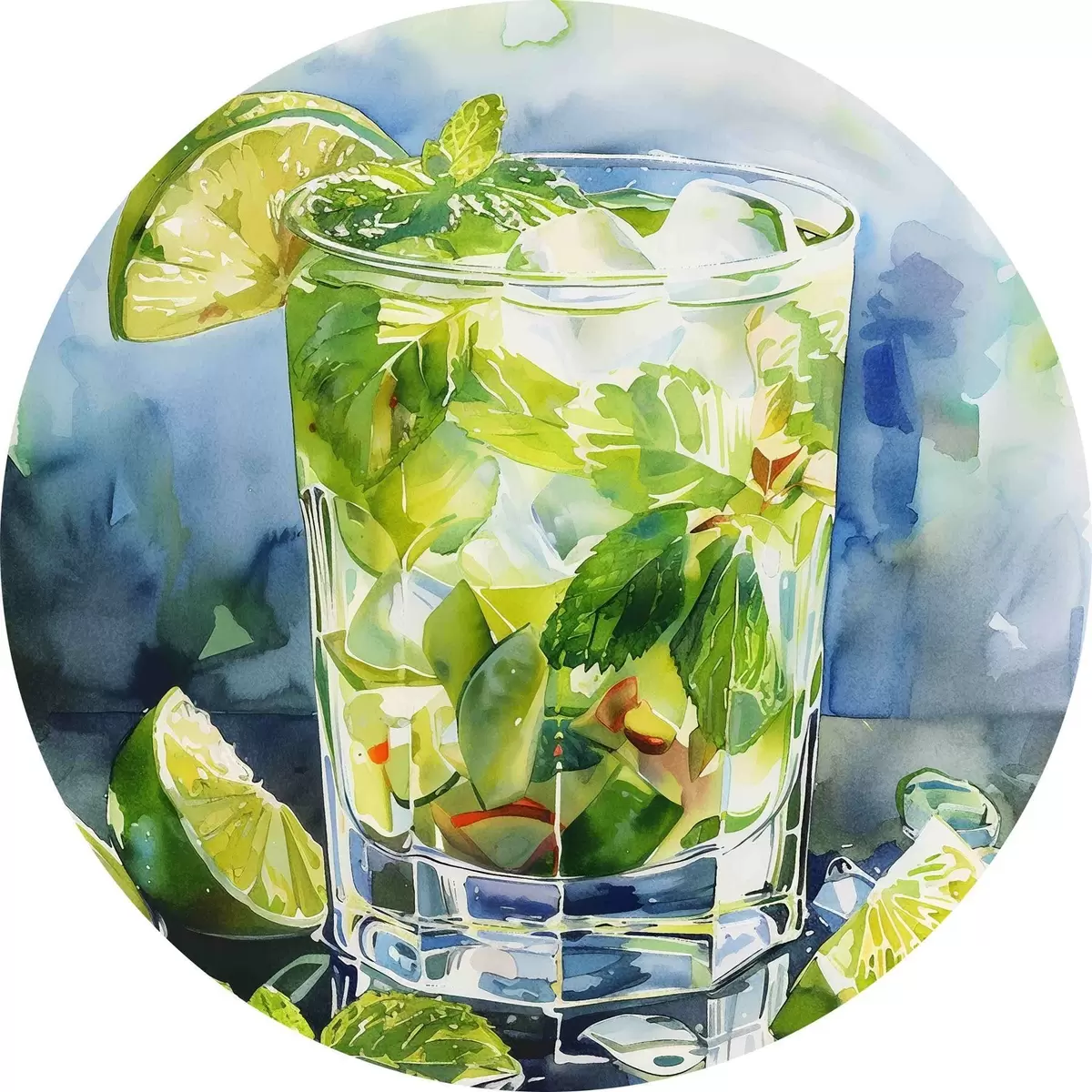 Runde Gemälde Mojito-Getränk im Aquarell-Stil r40774