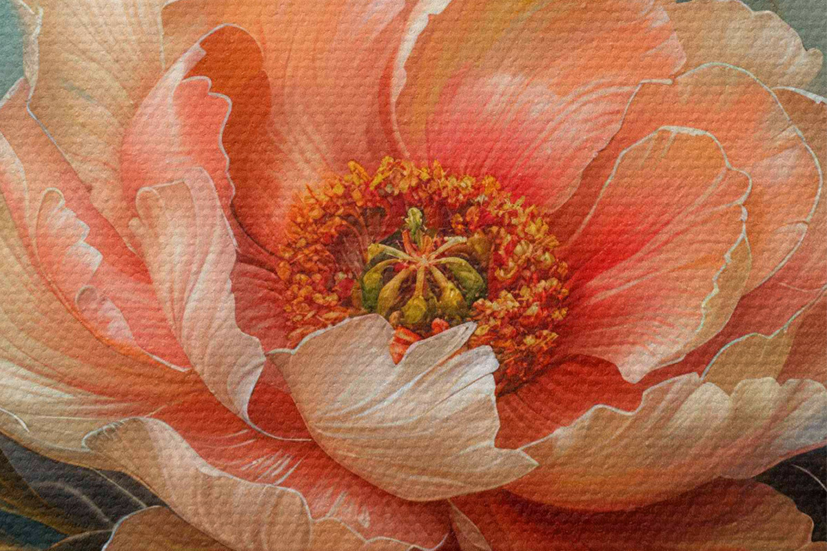 Drei Materialtypen stehen zur Verfügung: Economic Canvas - ein dichtes und haltbares Material für den Digitaldruck, identisch mit Malerleinwand, wasserfeste Oberfläche, realistische Wiedergabe von Details, mittelkörniges Material. Premium Canvas - die Textur ähnelt der einer Malerleinwand (verwobene kleine Fäden). Weiche, detaillierte Wiedergabe des Bildes auf einer matten Oberfläche. Eco-Premium - hochwertiges Gewebe aus 100% Baumwolle. Dank der natürlichen Baumwollfasern ist das Material langlebig und verschleißfest. Hervorragende Farbwiedergabe und Detailtreue.