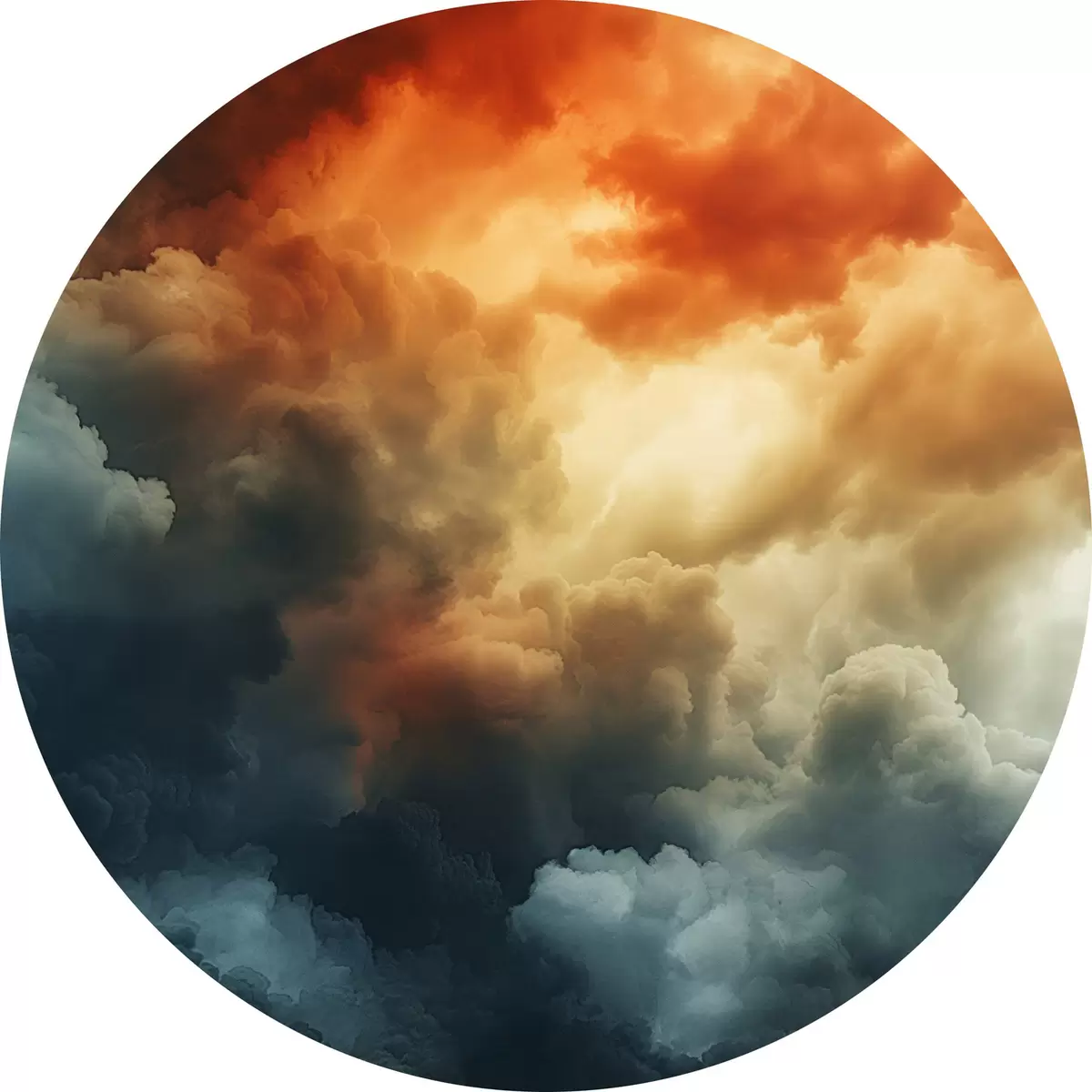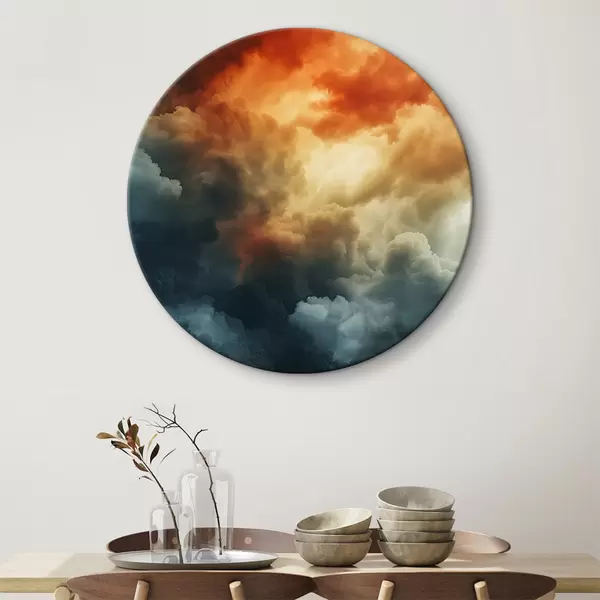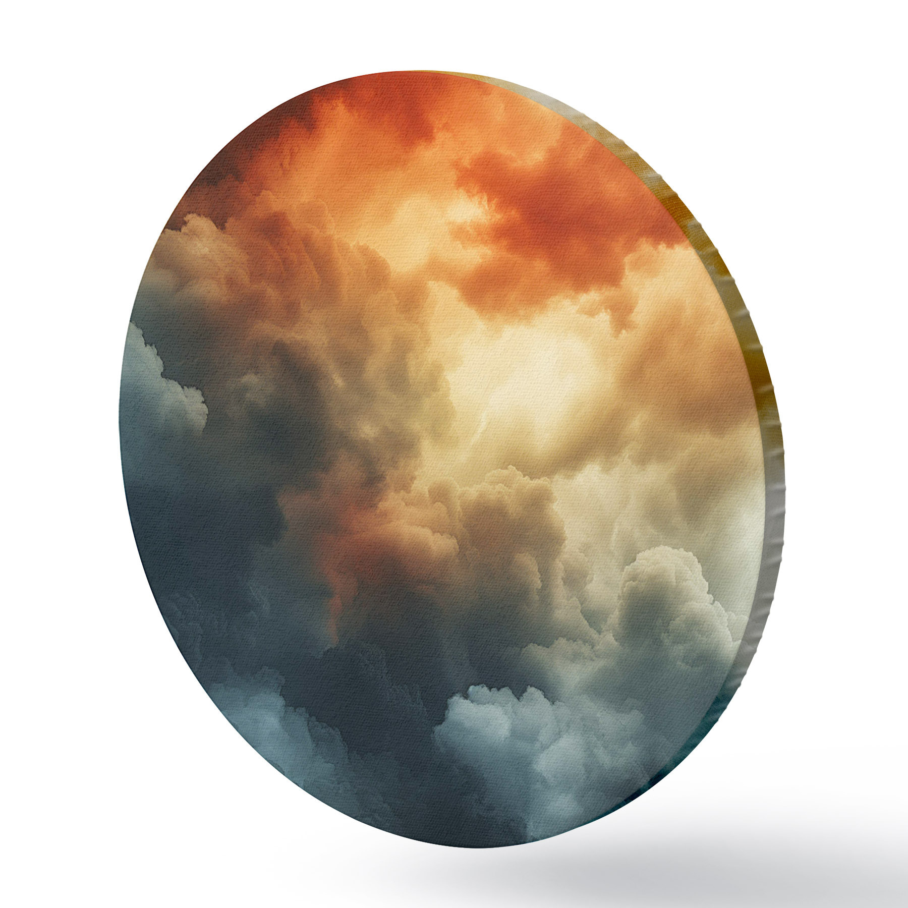 Runde Gemälde Wolken, dunkelblau, orange, antik r40784