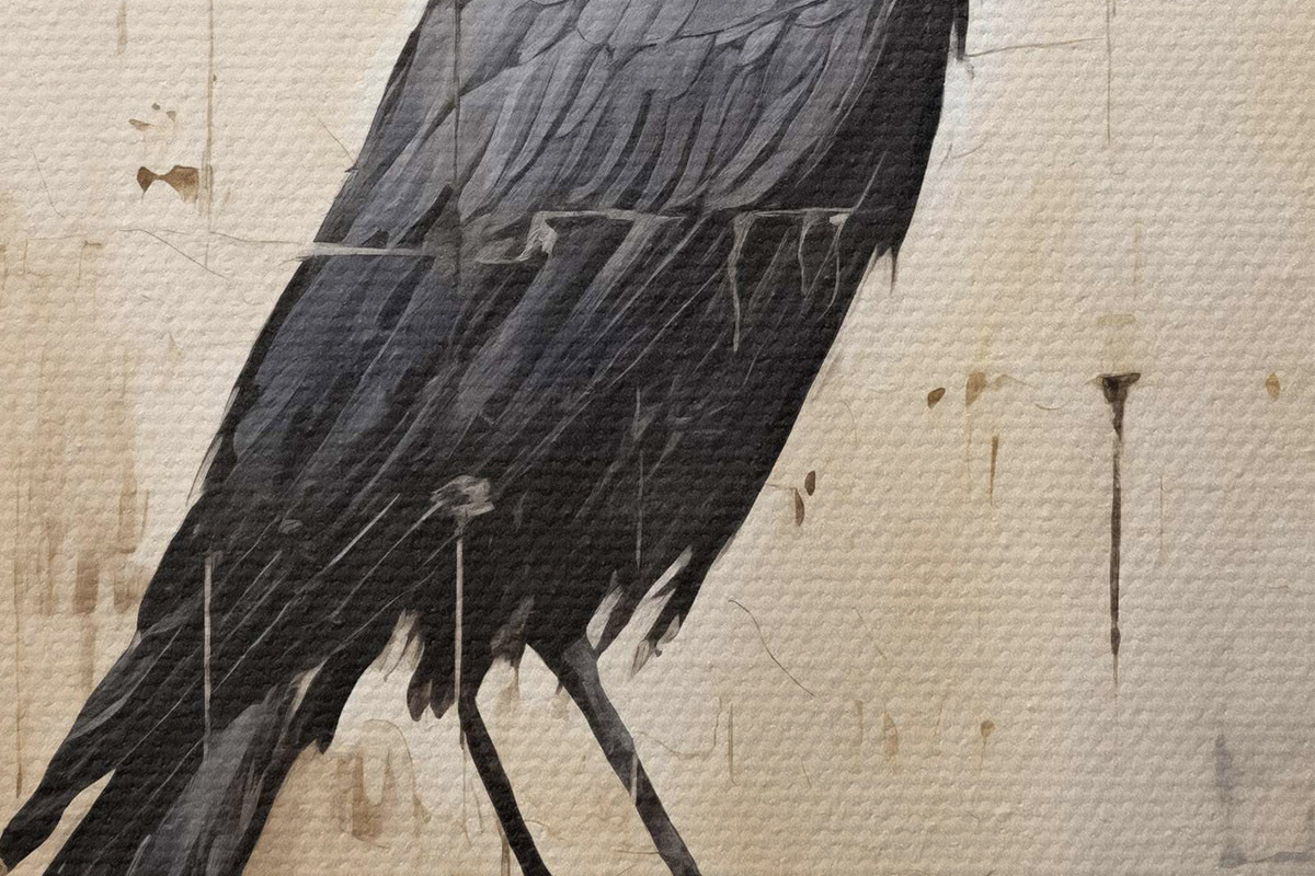 Bild Schwarzer Rabe auf einem Baumstamm sitzend auf einem abstrakten Hintergrund Nr r40808