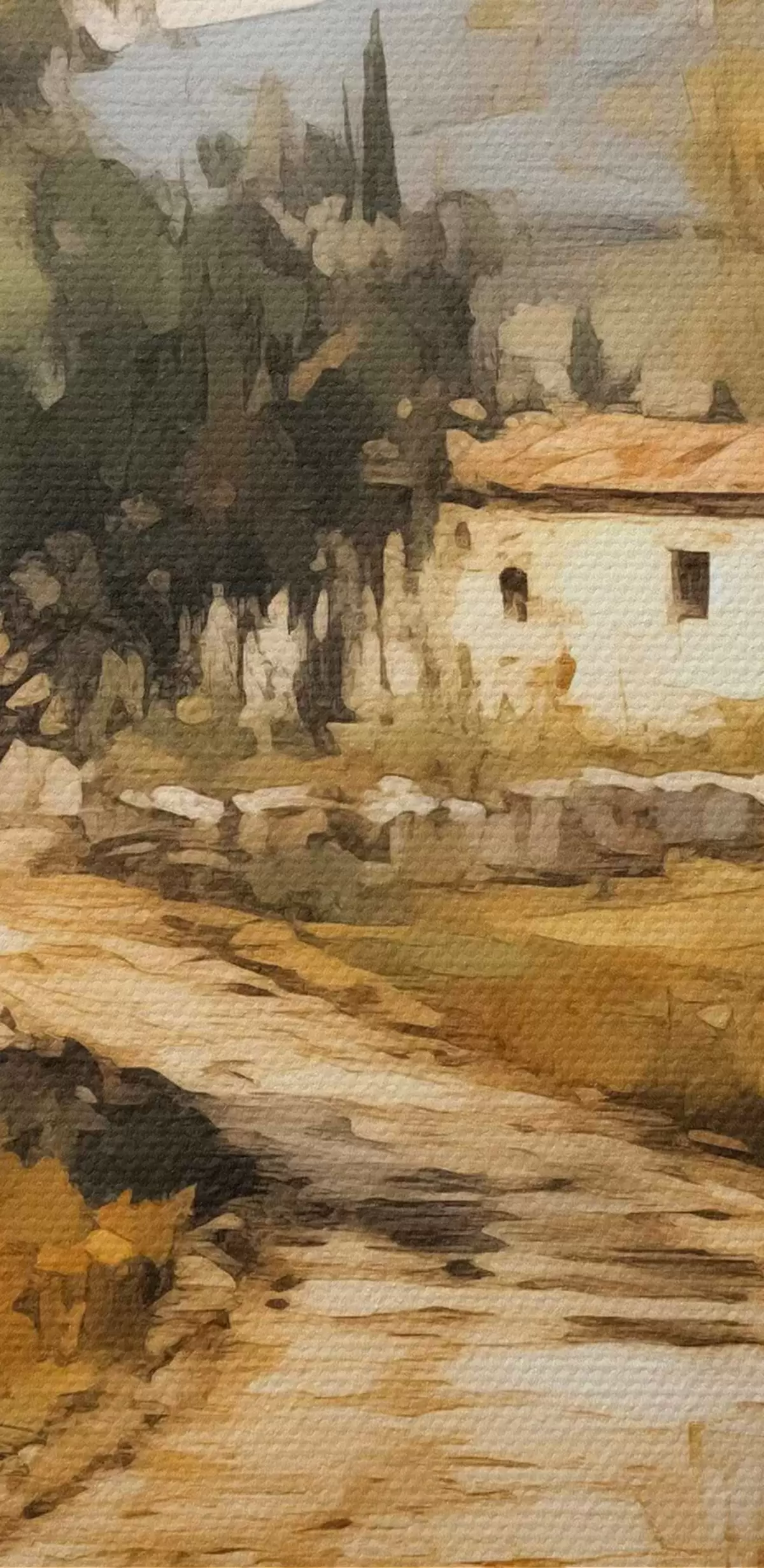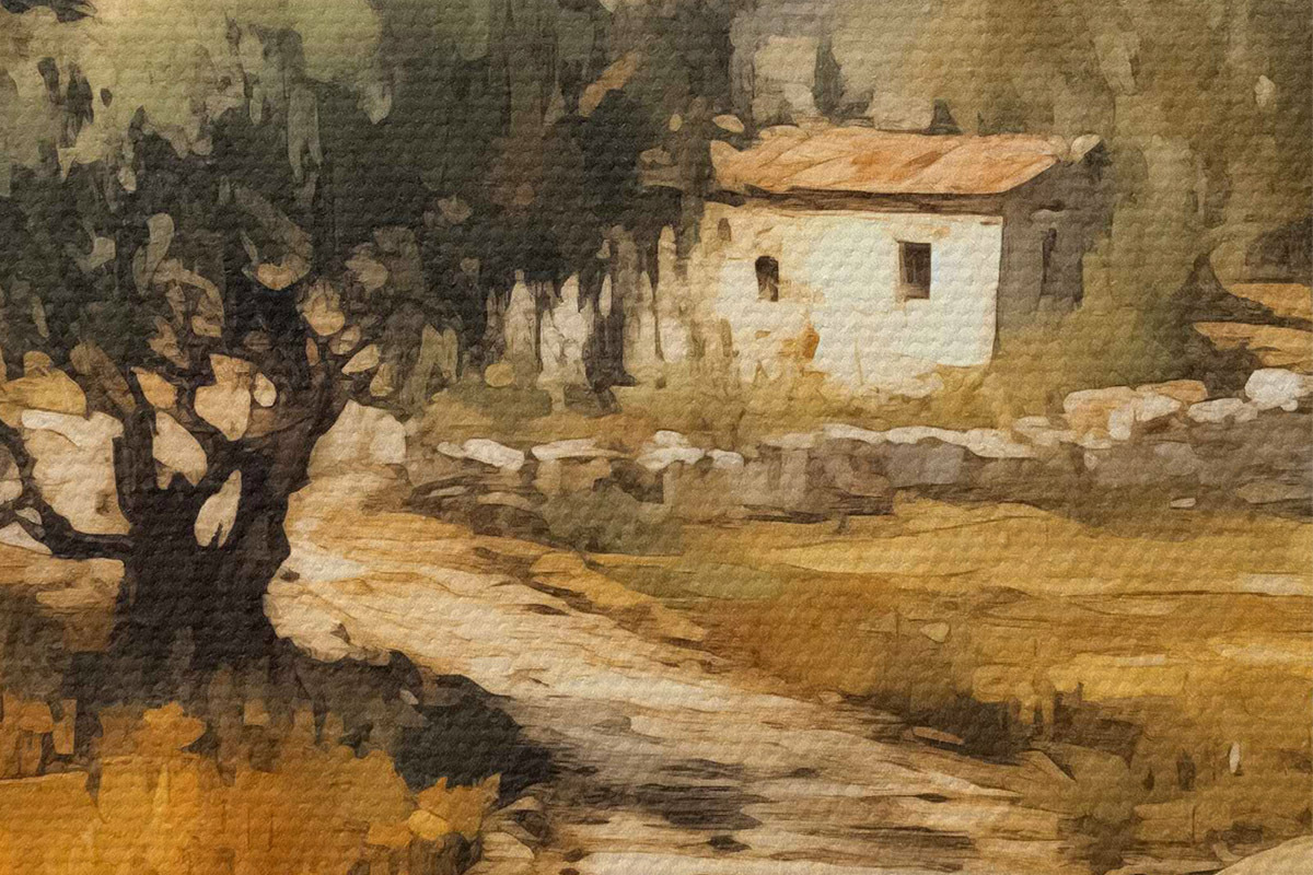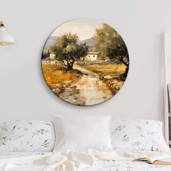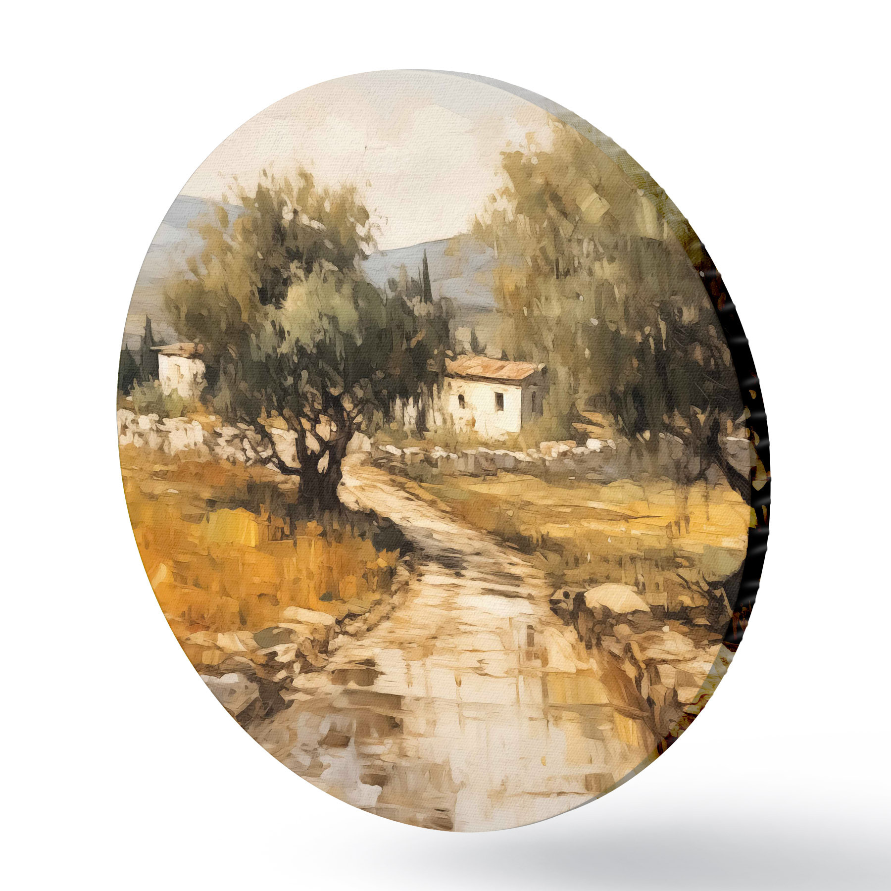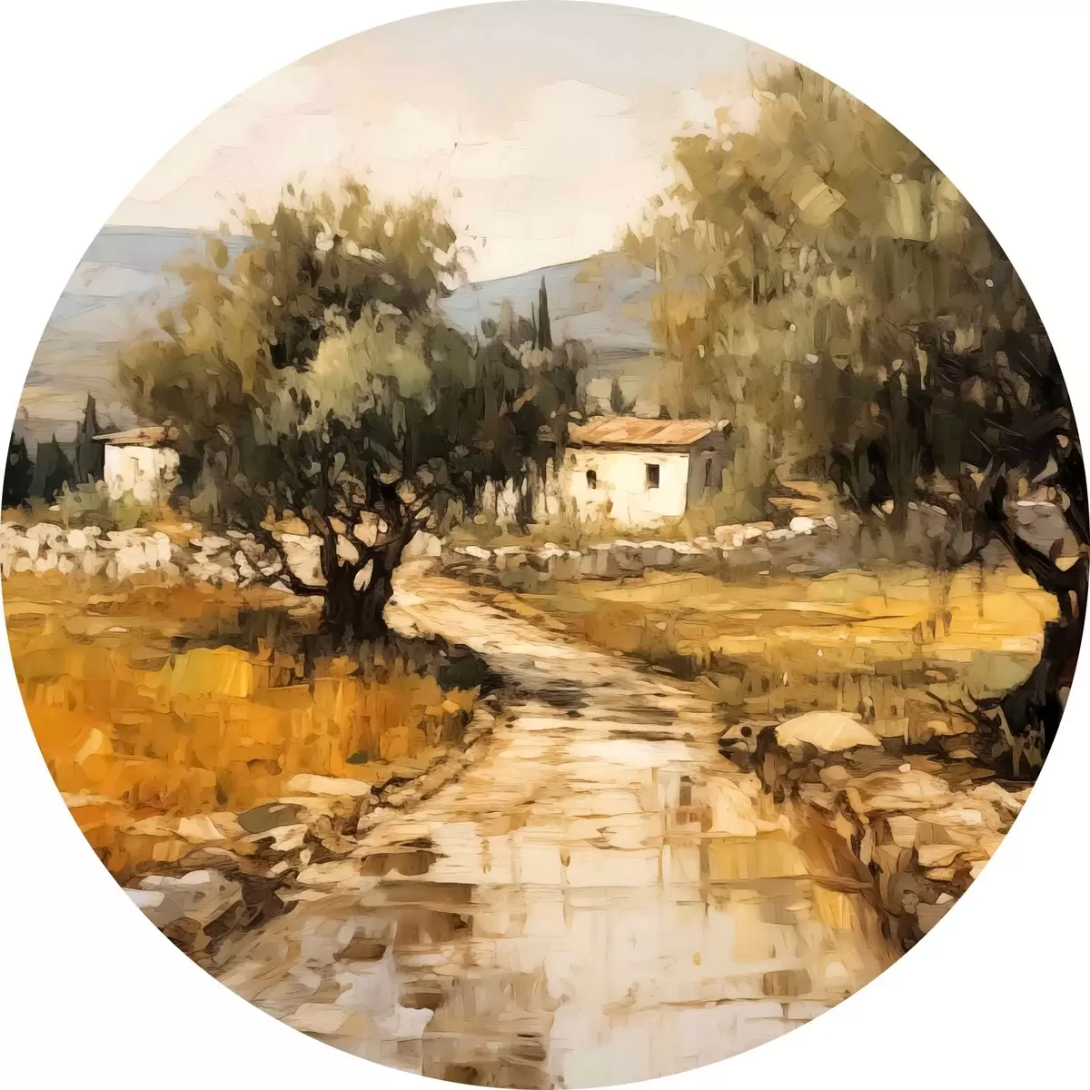 Runde Gemälde Straße zum Dorf, Olivenbäume r40810