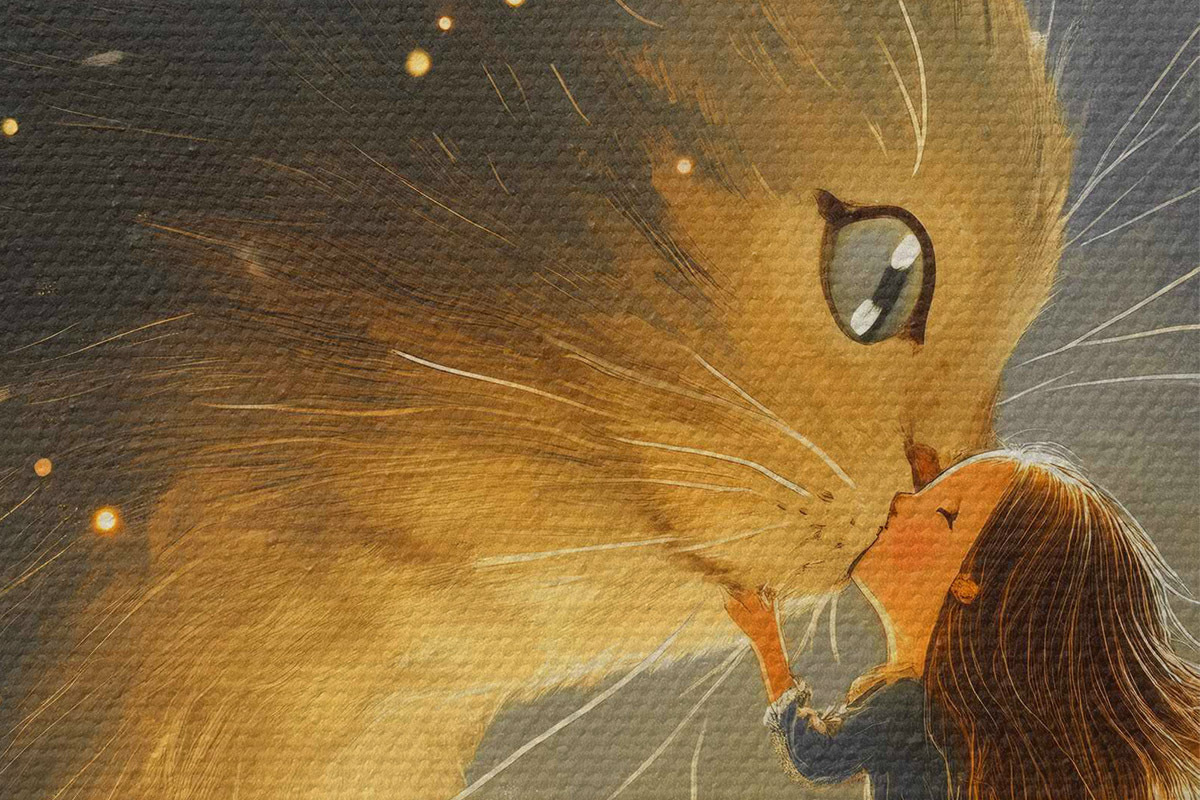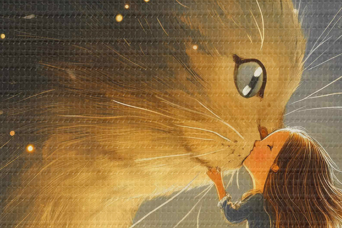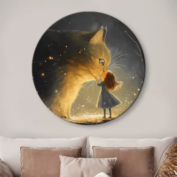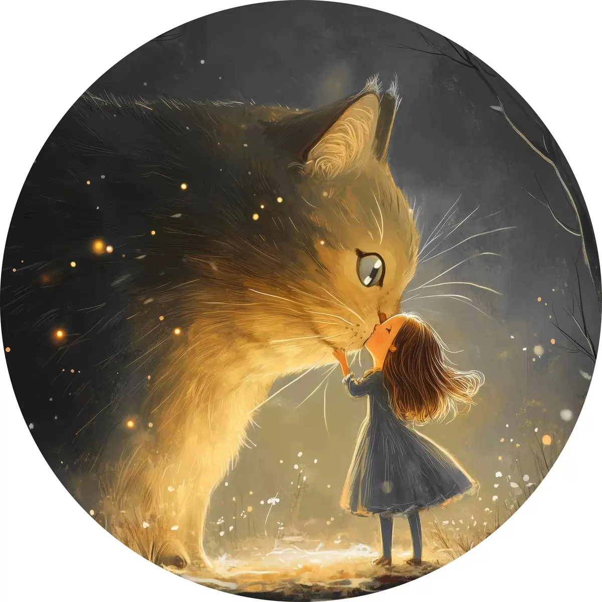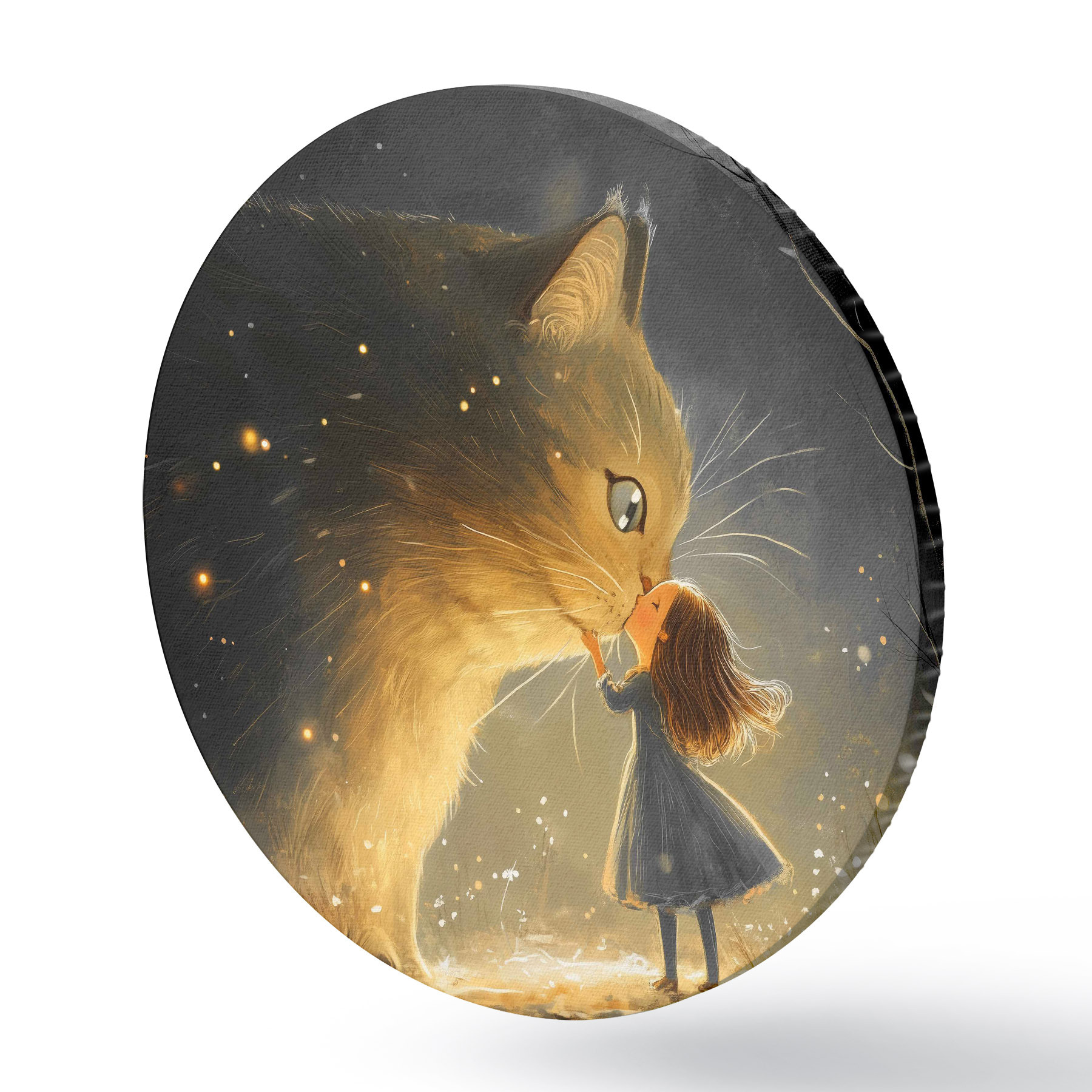 Runde Gemälde Das Mädchen küsst die Katze r40825