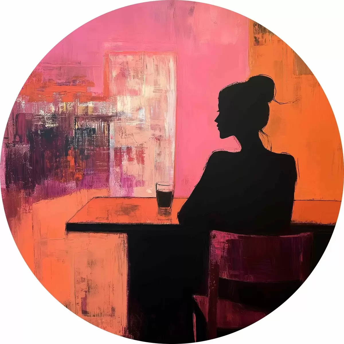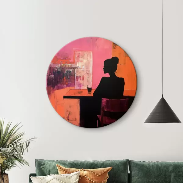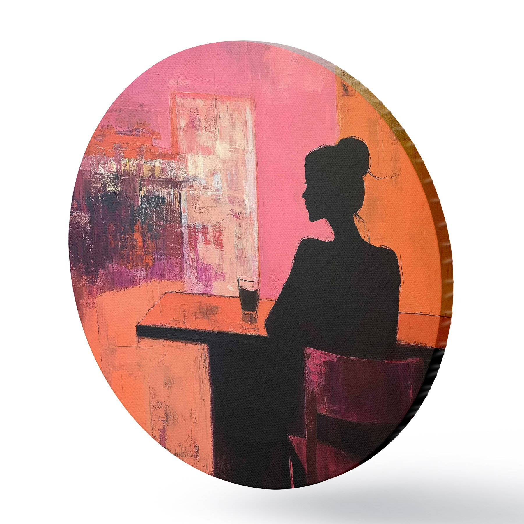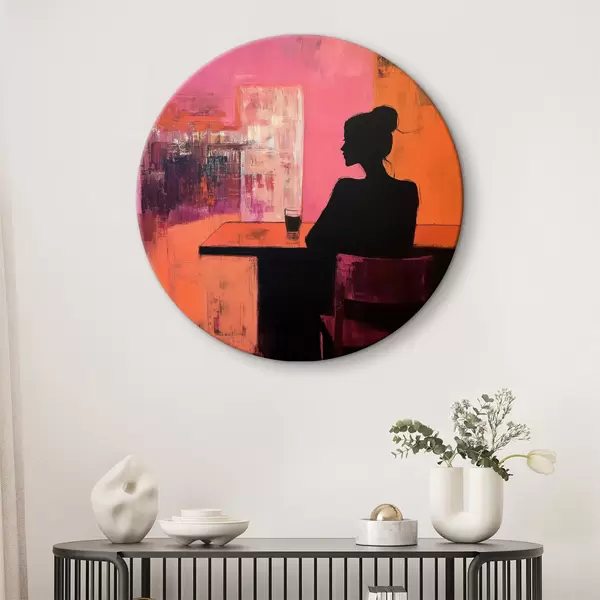 Runde Gemälde Mädchen mit einem Glas Wein r40829
