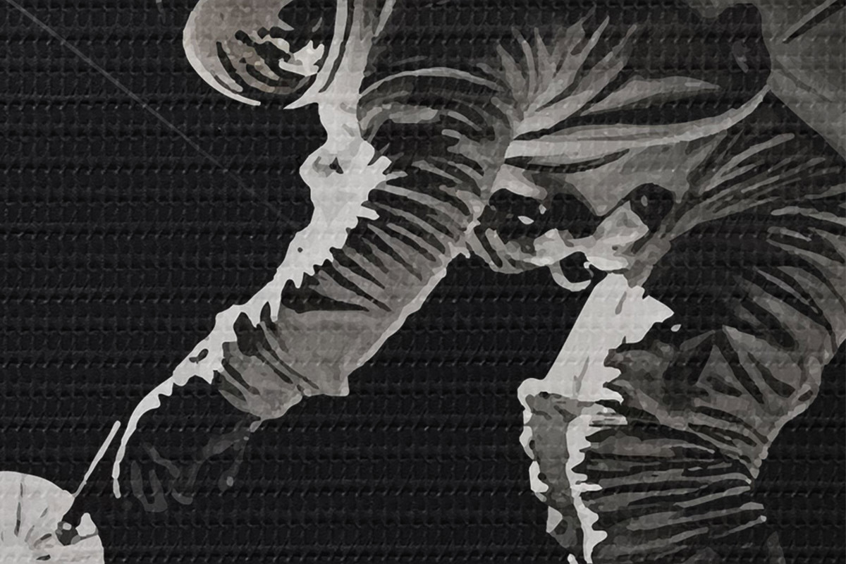 Um die Leinwand auf Keilrahmen zu spannen, ohne das Bild zu beschädigen, verwenden wir ein gespiegeltes Bild.