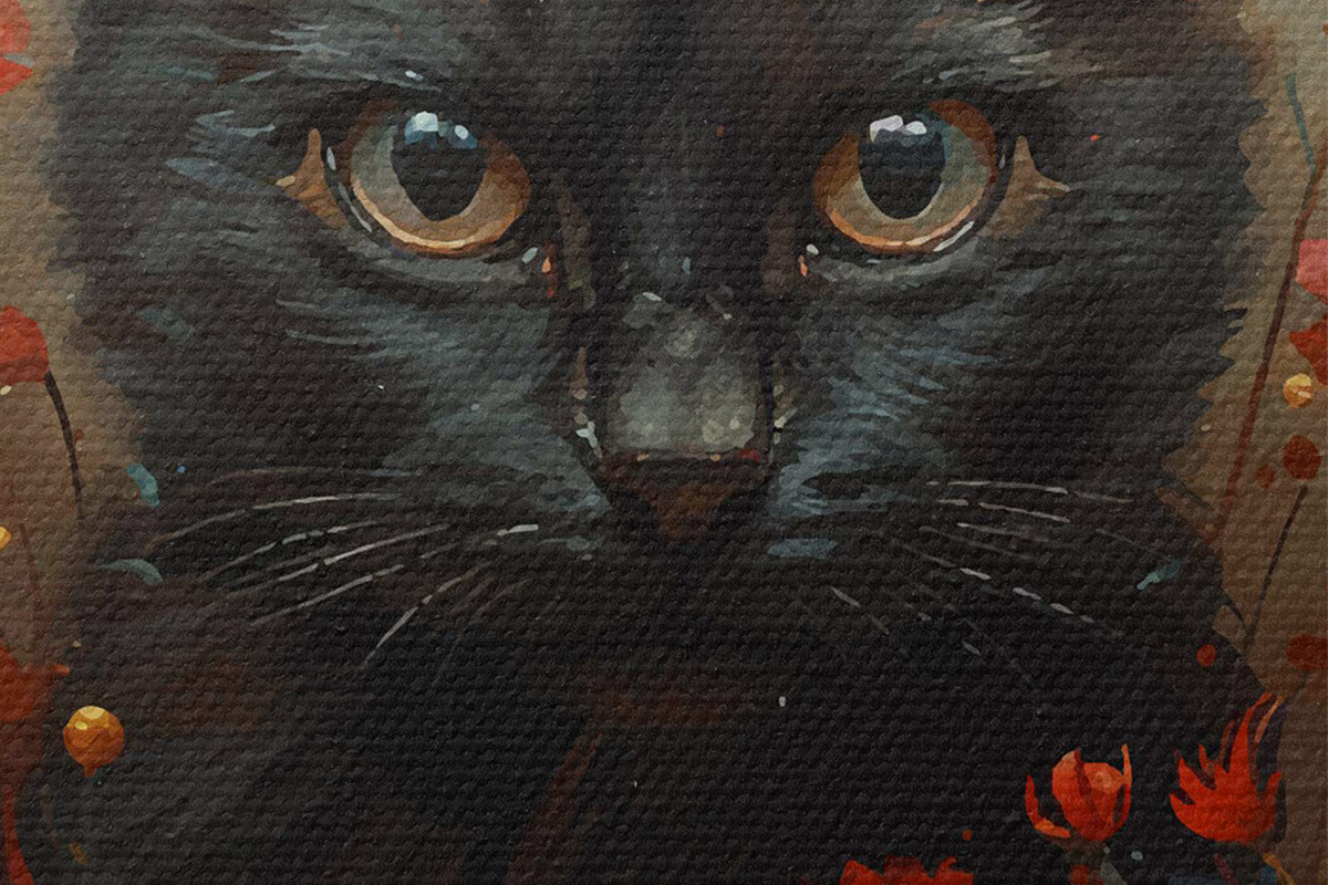 Bild Katze, Blumen, schwarze Katze Nr r40839