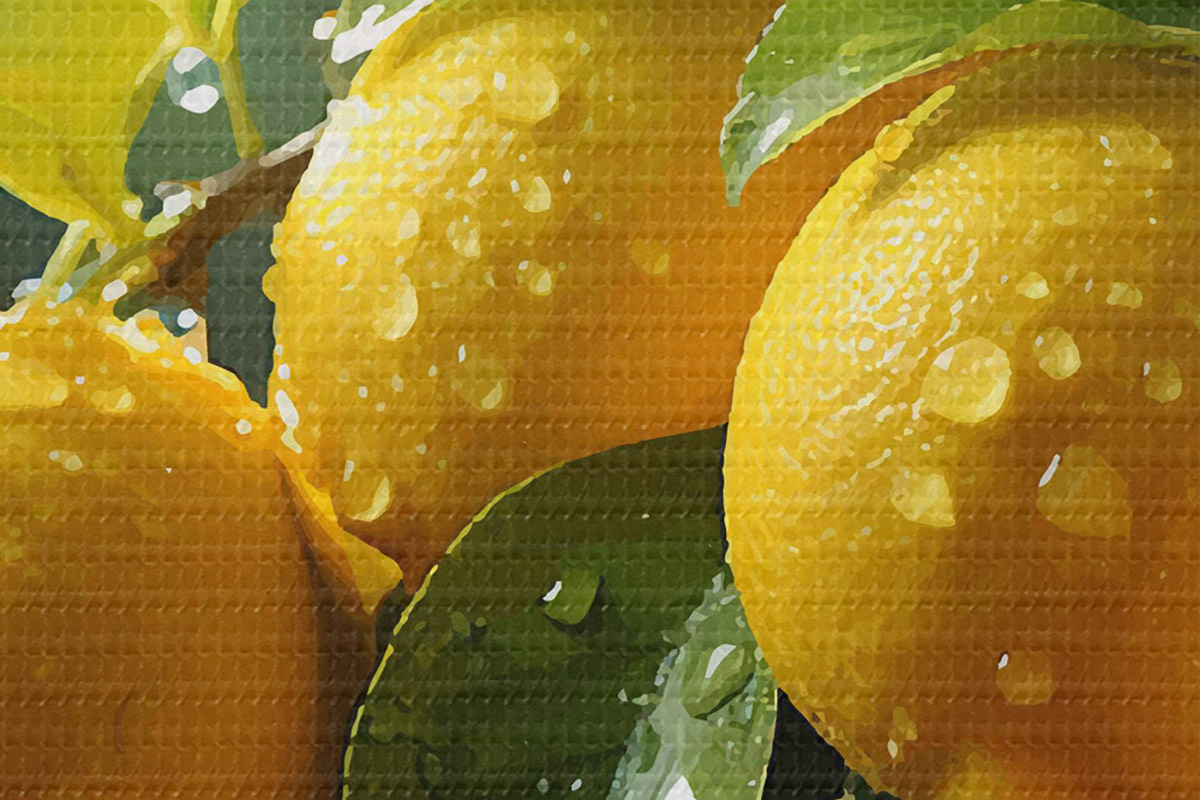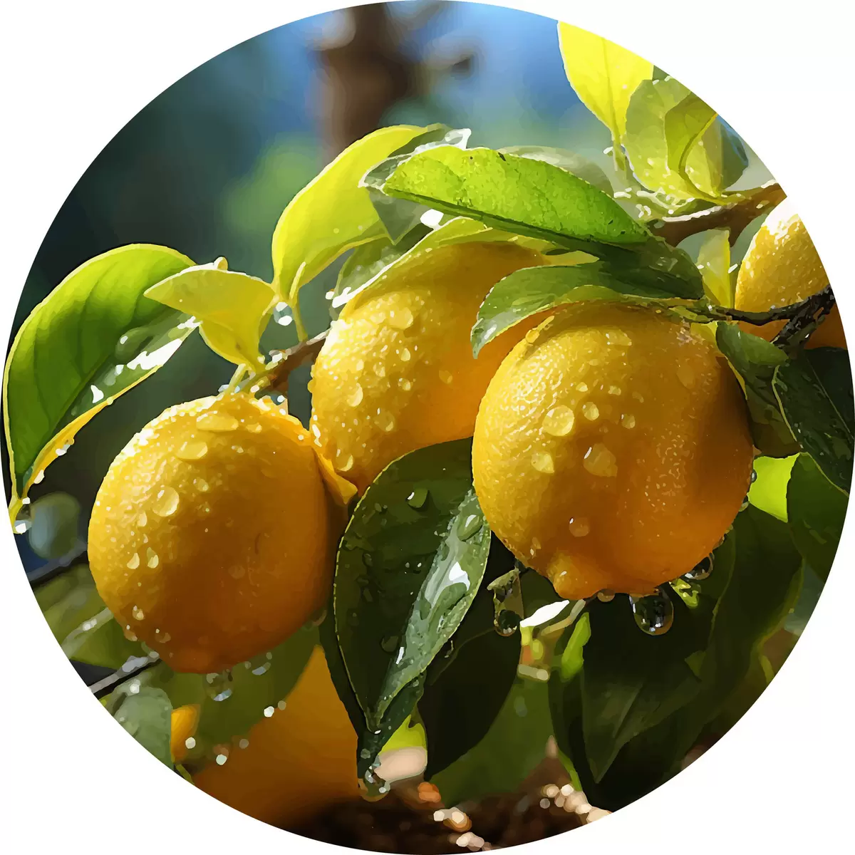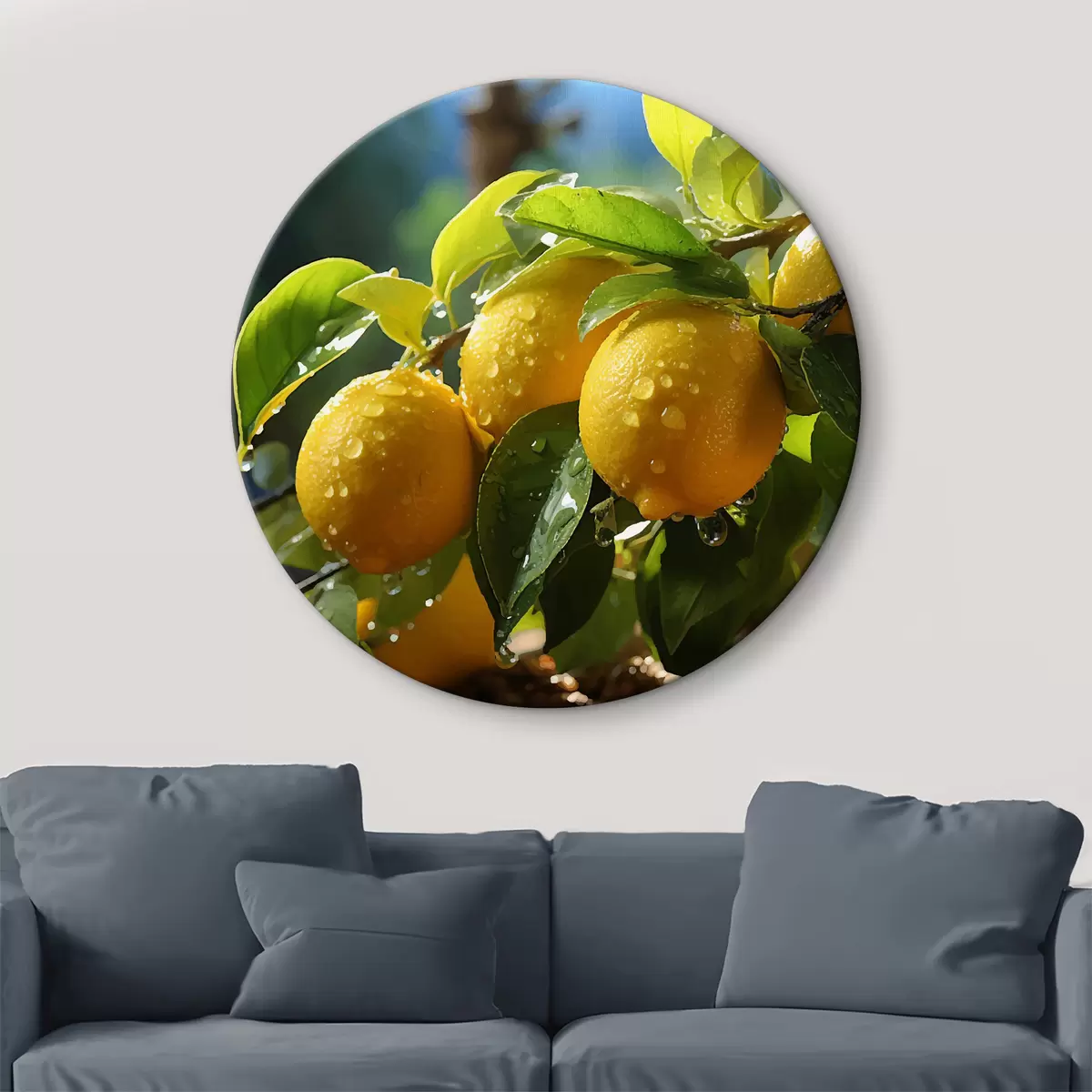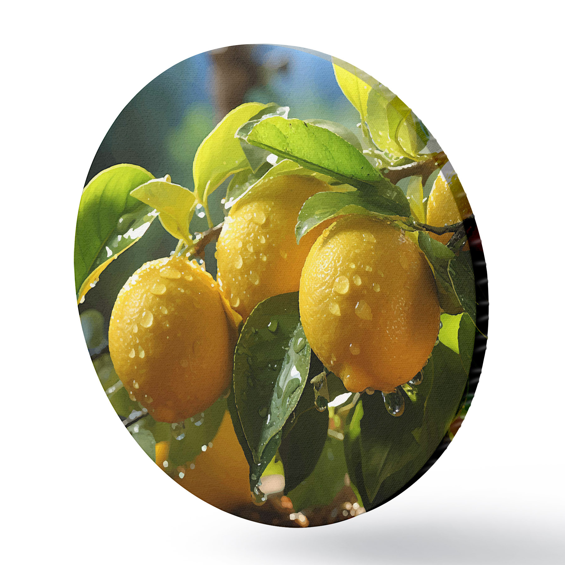 Runde Gemälde Zitronen, Zitronen am Baum, Tau r40840