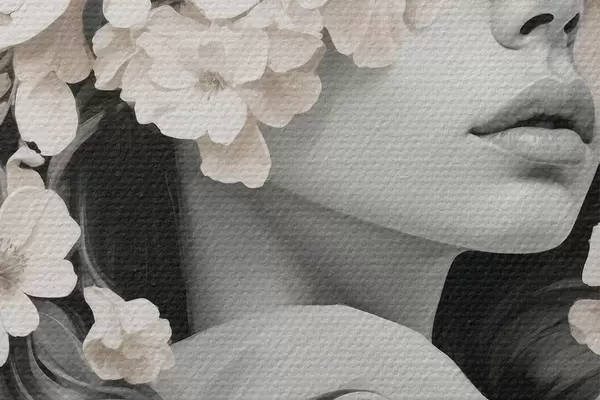Bild Mädchen mit Blumen im Gesicht in schwarzen und weißen Farben Nr r40849