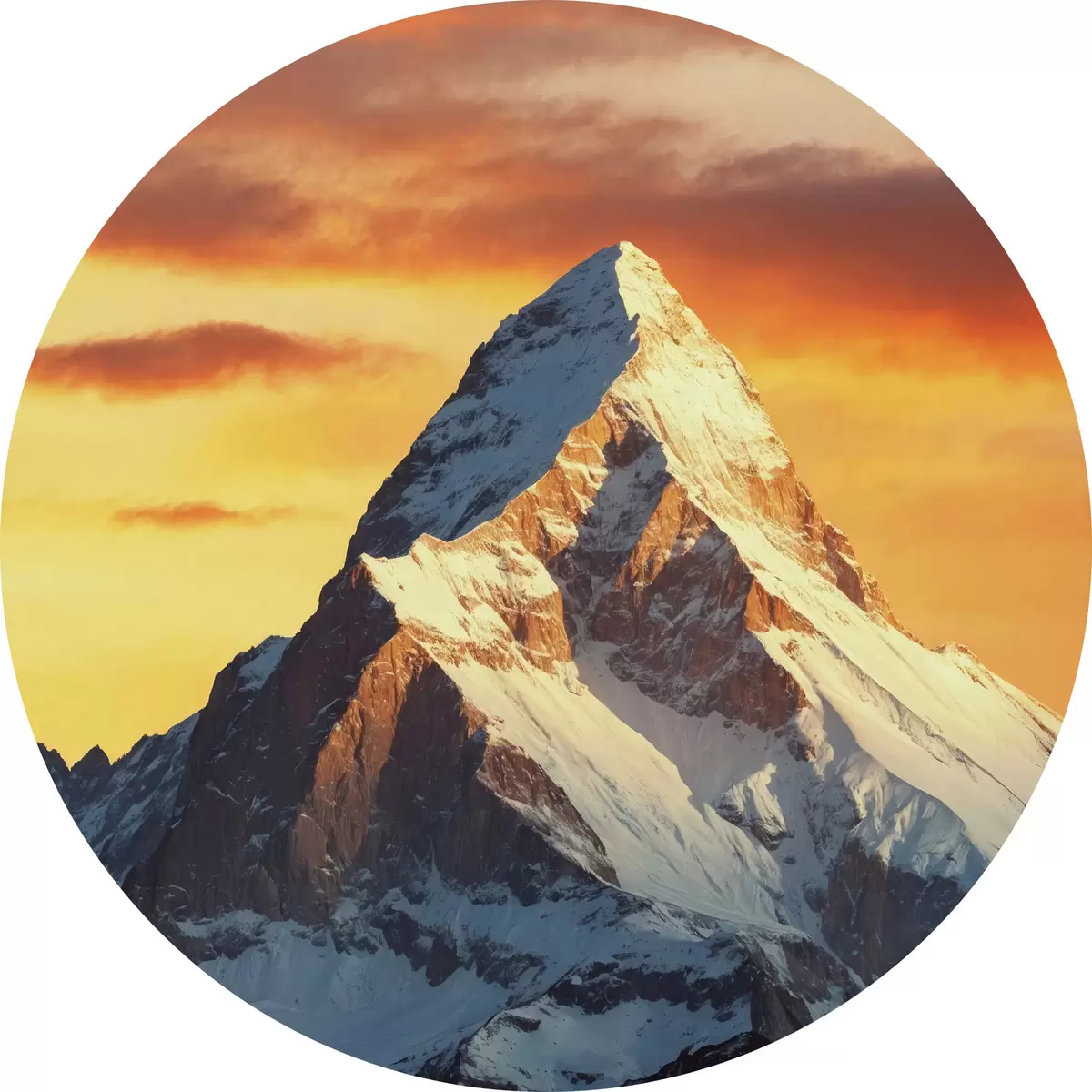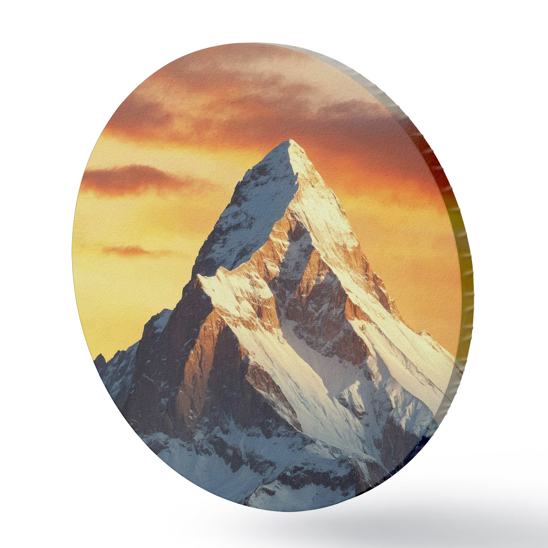 Runde Gemälde Schneebedeckter Berg und orangefarbener Himmel r40852