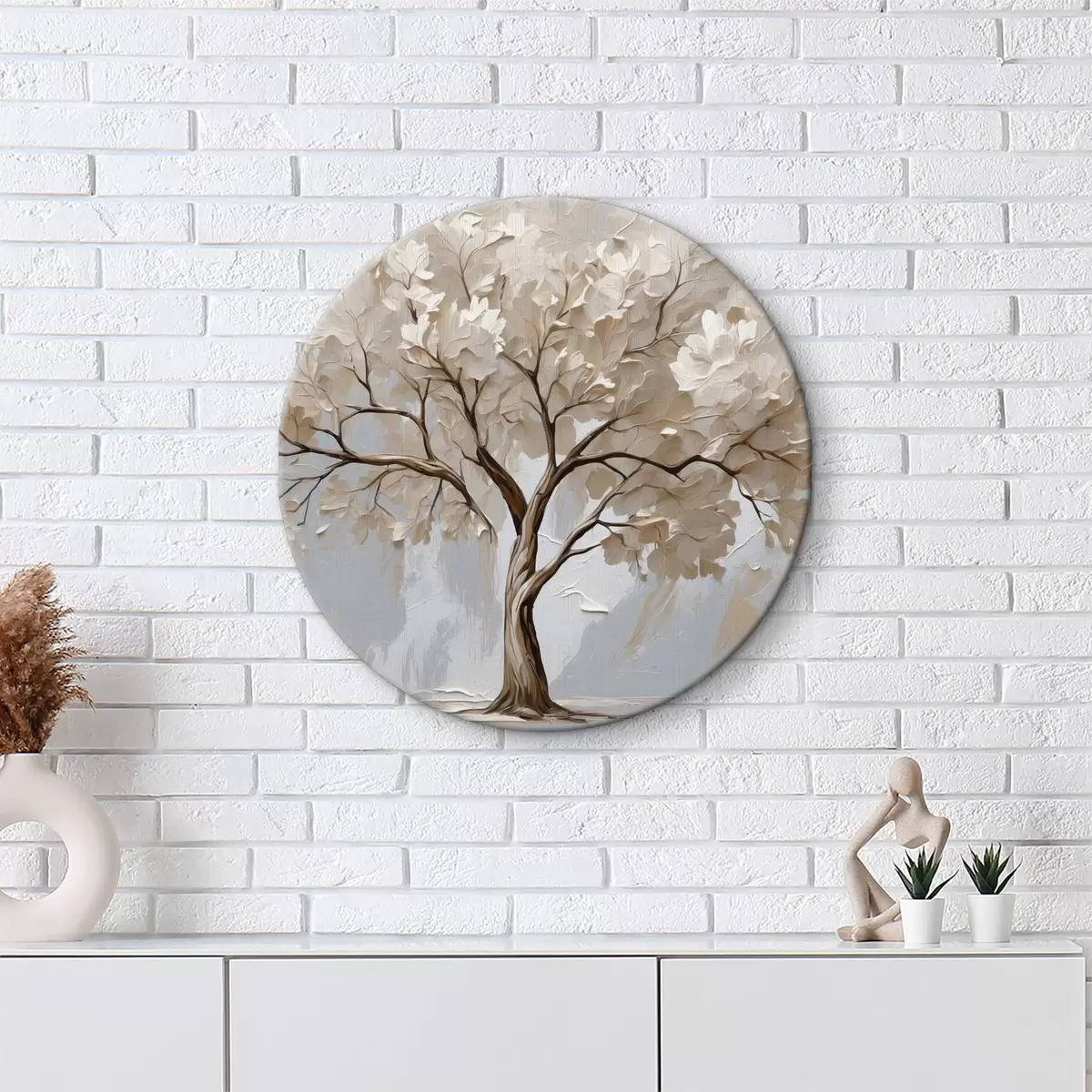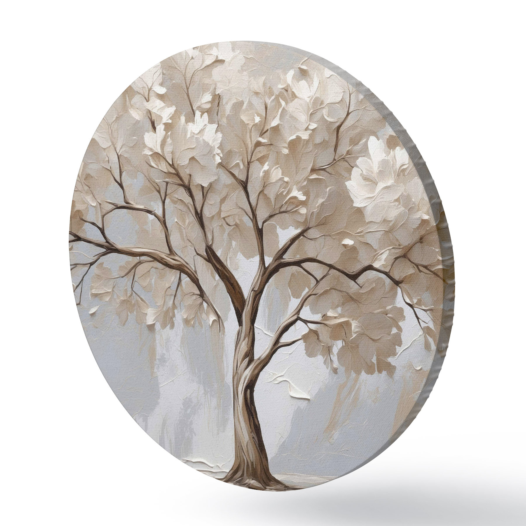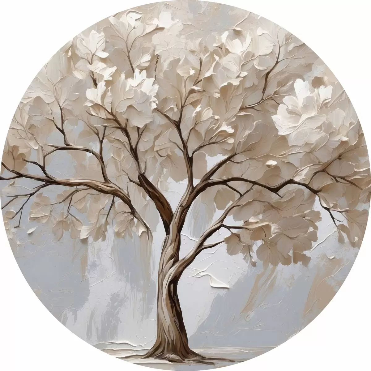 Runde Gemälde Weißer Baum auf abstraktem Öl-Hintergrund r40860