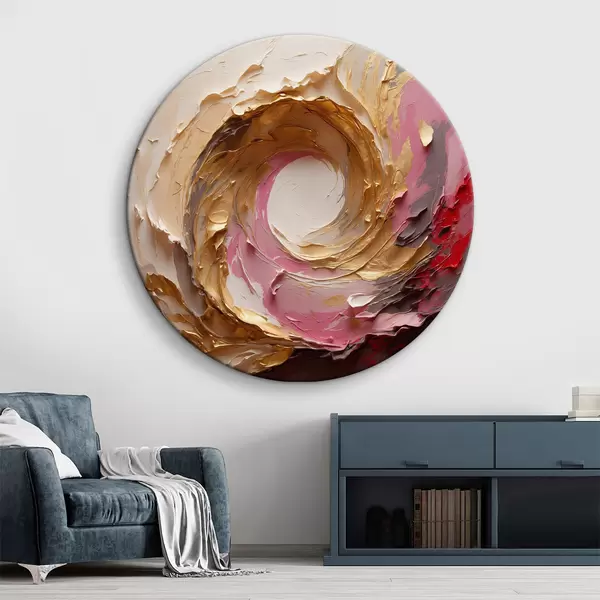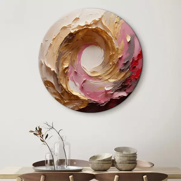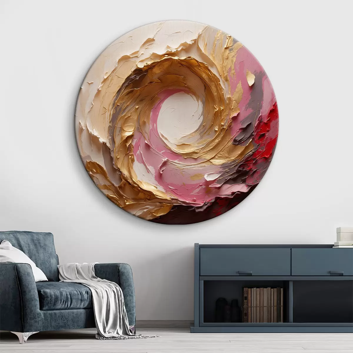 Runde Gemälde Abstraktes Ölgemälde mit rosa und gelben Strudeln r40863