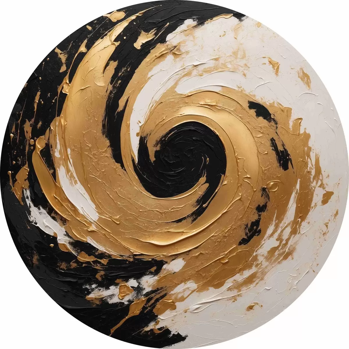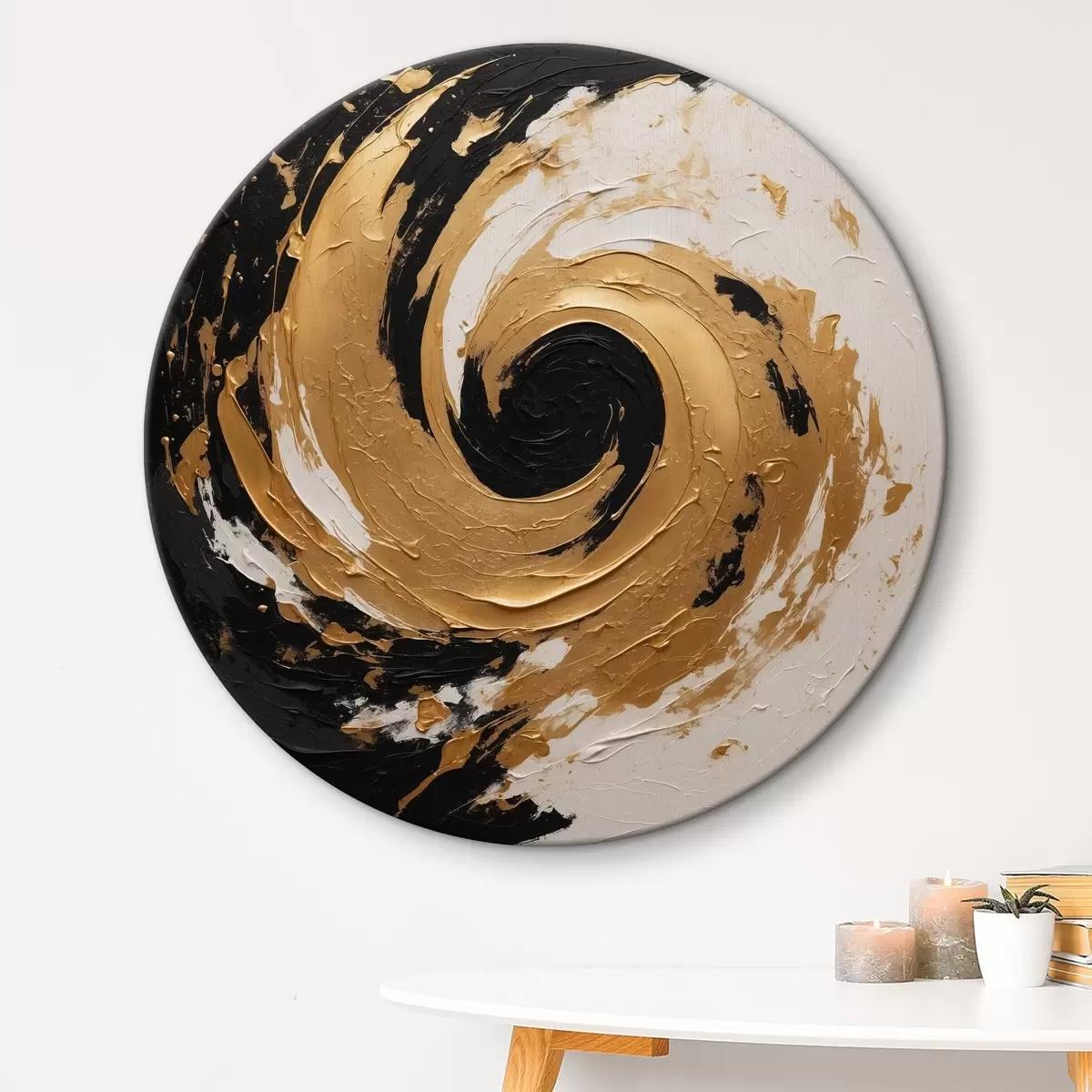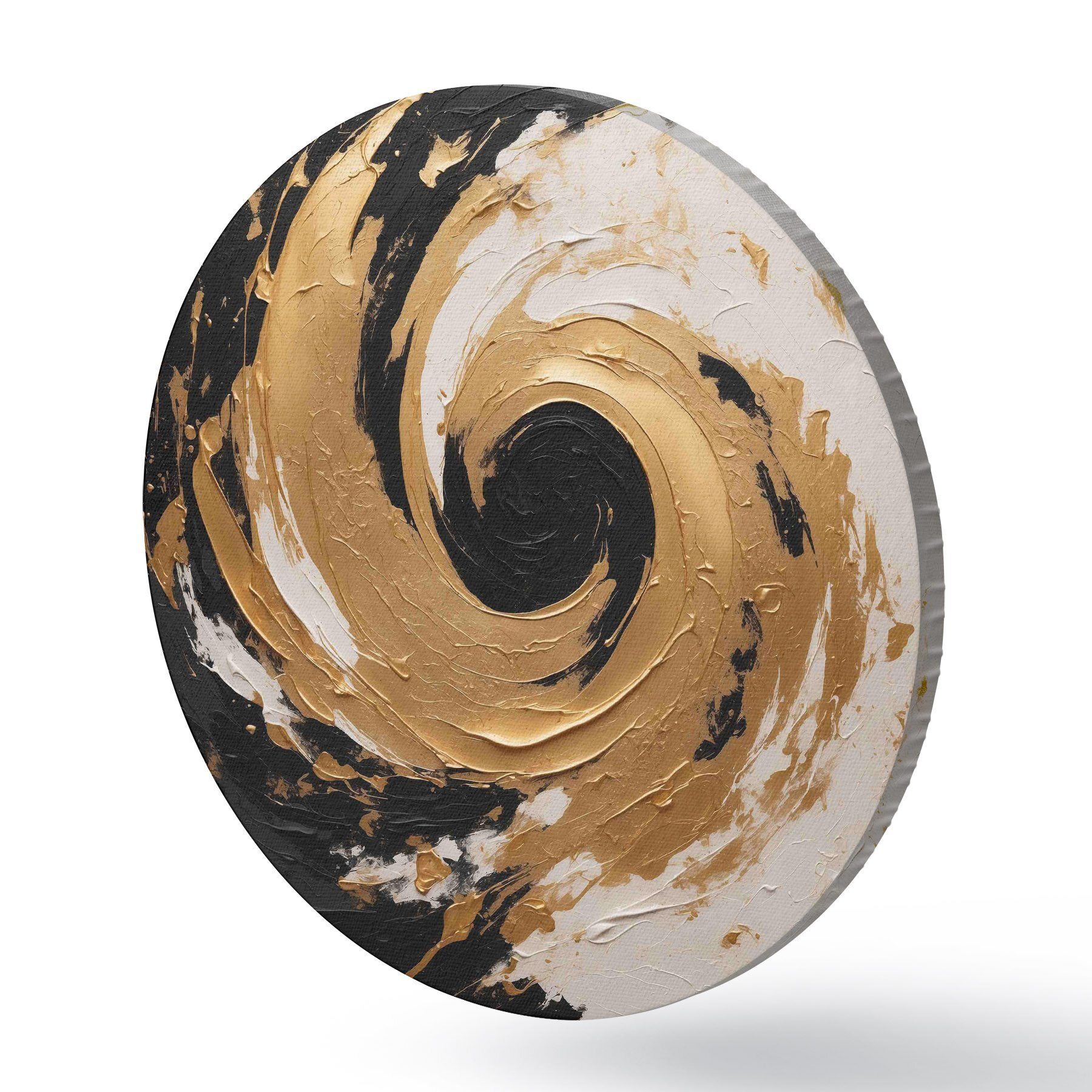 Runde Gemälde Abstraktes Ölgemälde mit schwarzem und gelbem Wirbel r40864