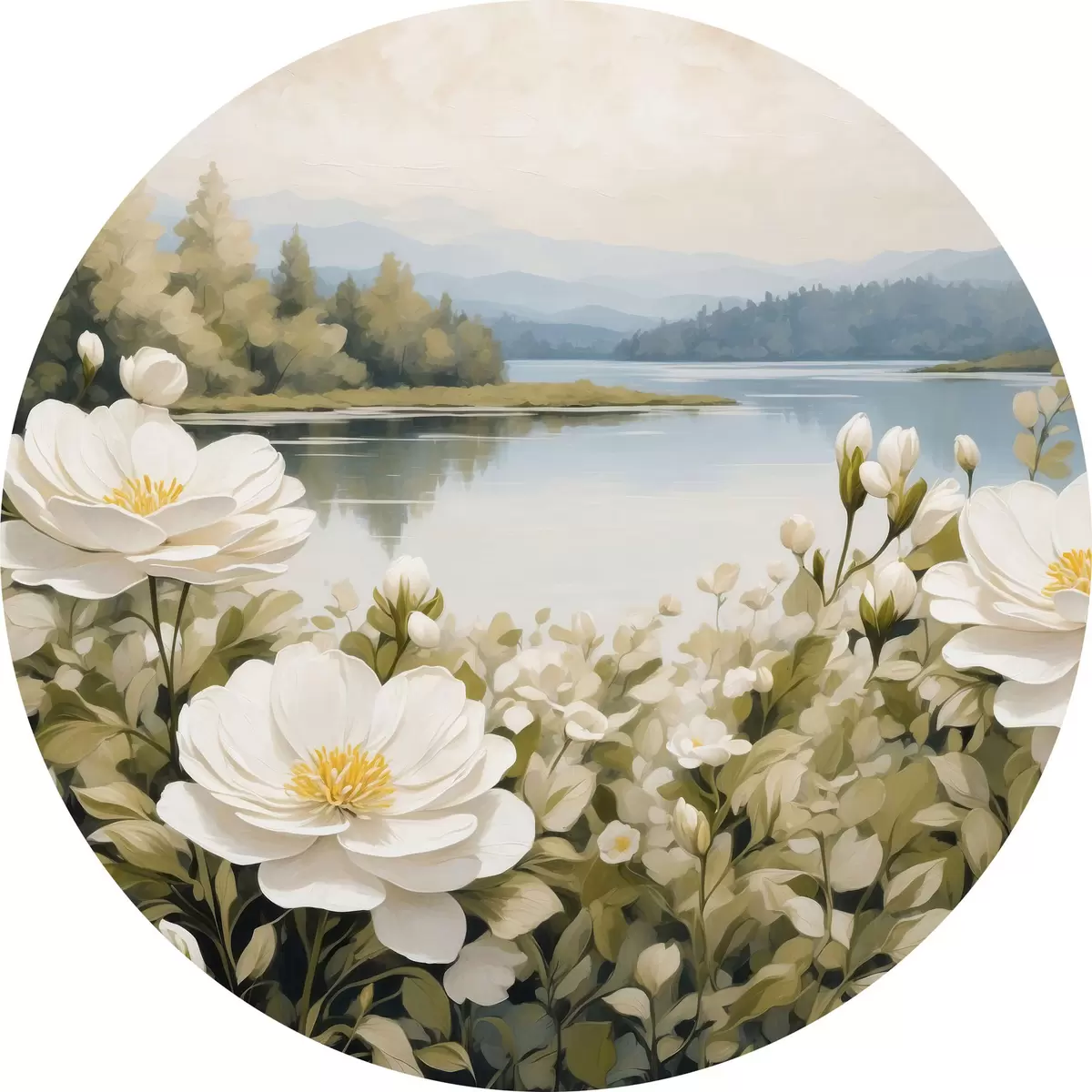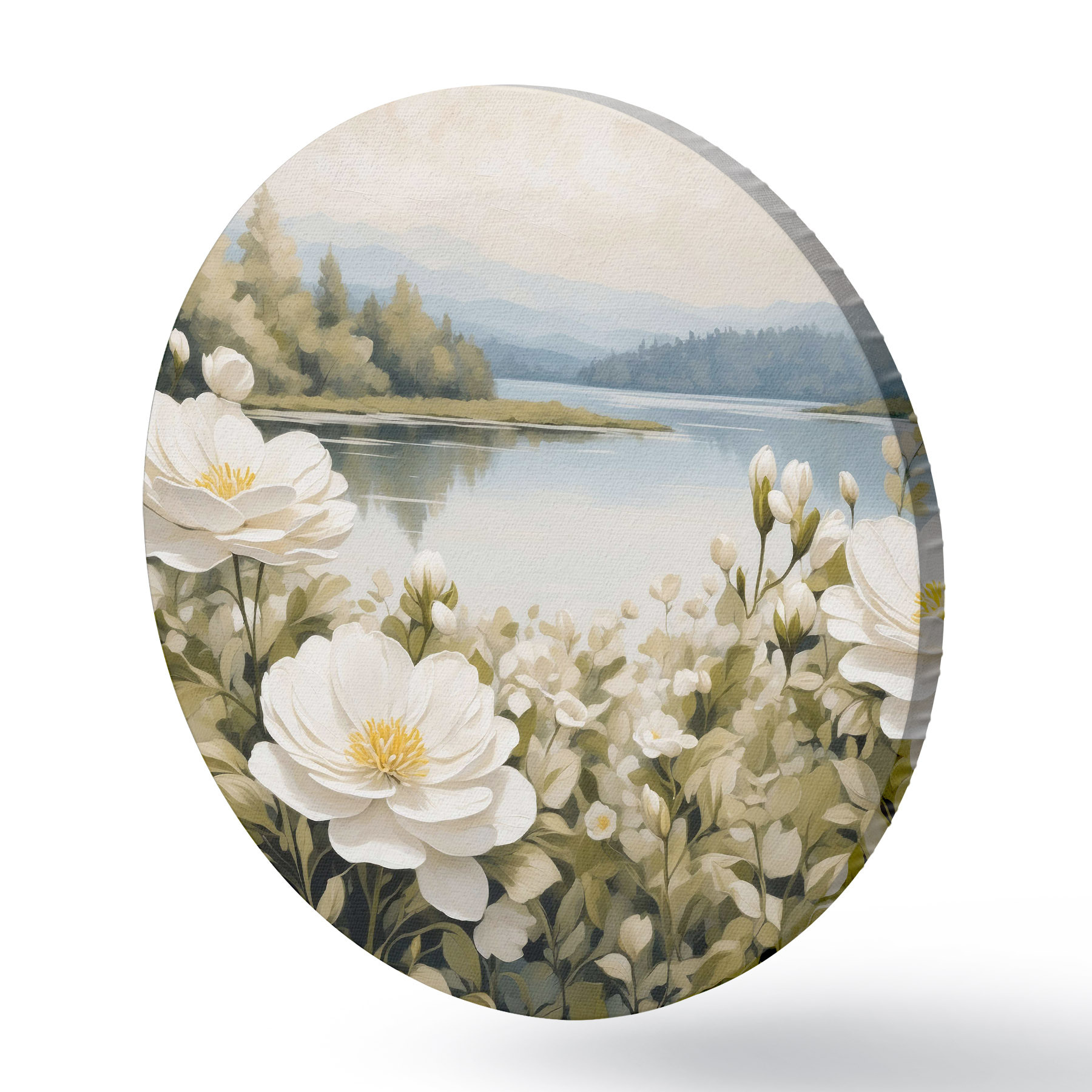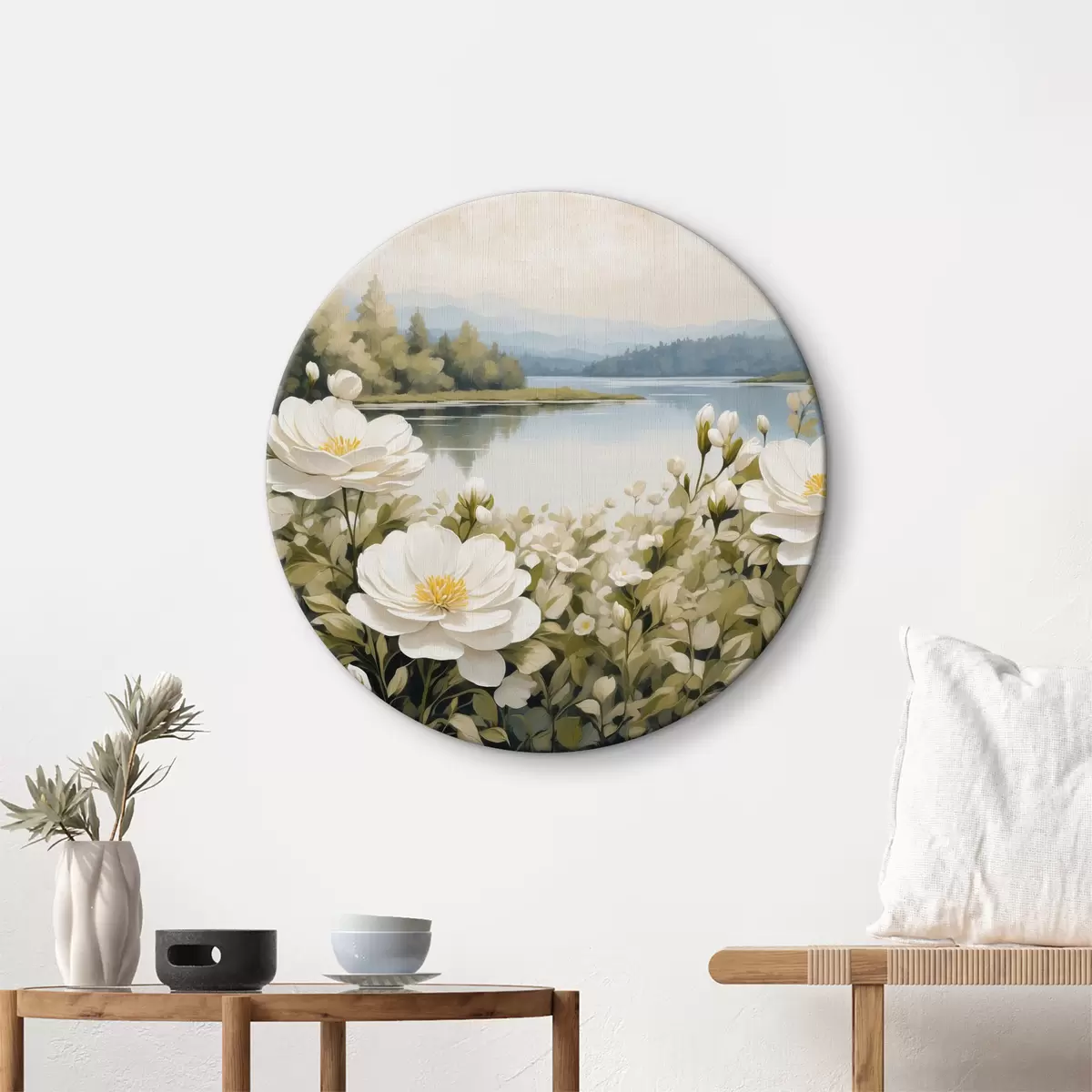 Runde Gemälde Weiße Blumen vor dem Hintergrund des Flusses r40869