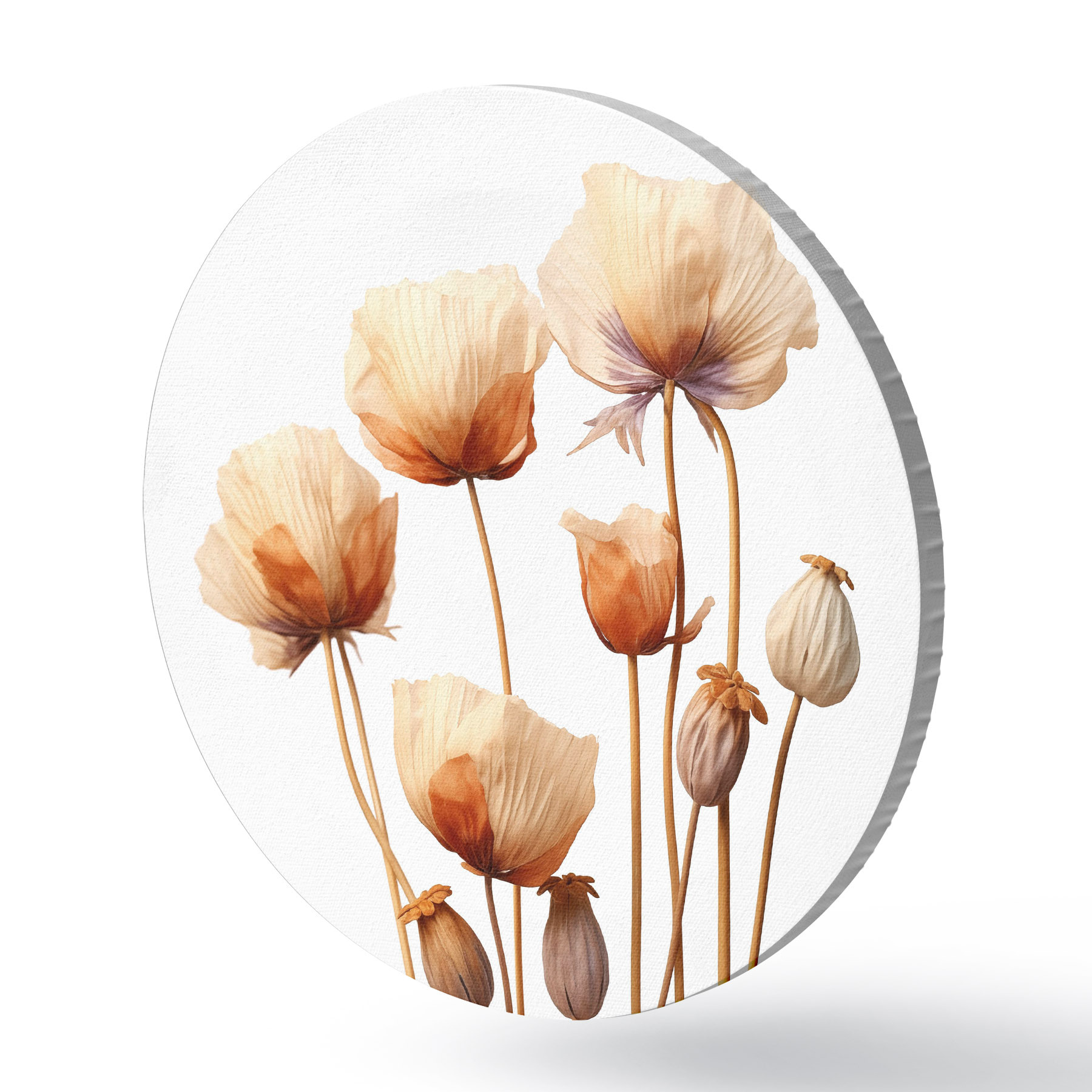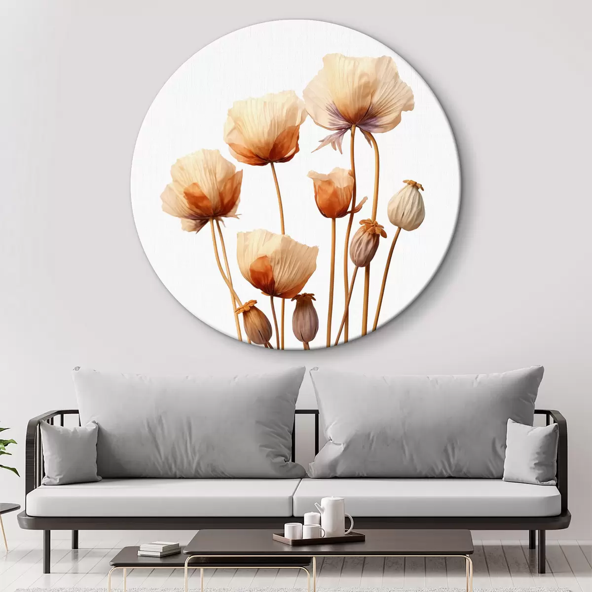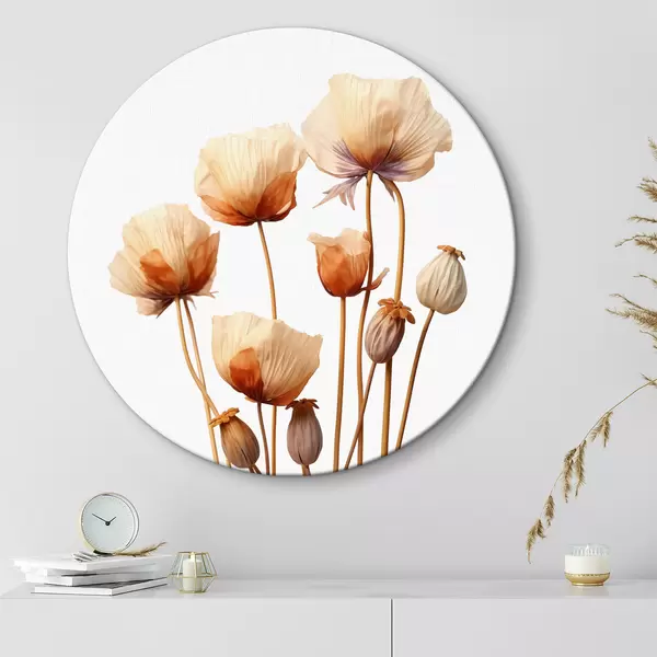 Runde Gemälde Mohnblumen auf getrockneten Stängeln Minimalismus r40883