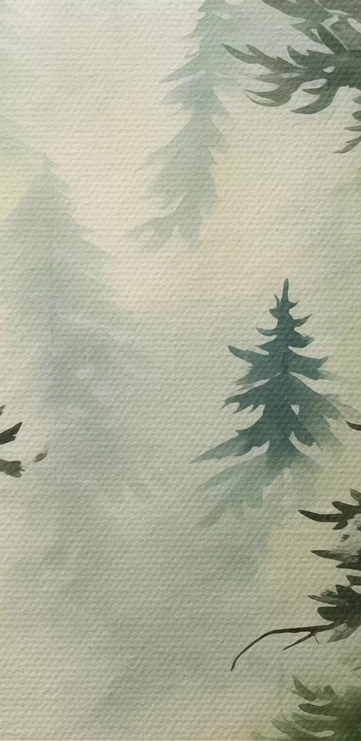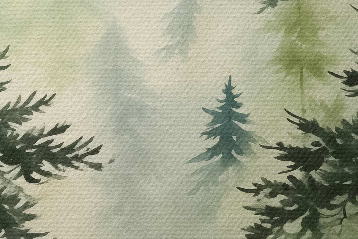 Bild Tannenbäume im Wald vor dem Hintergrund der Berge, Aquarell, grün Nr r40889