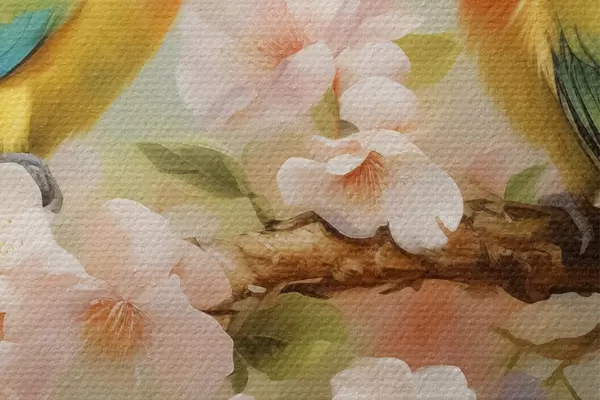 Bild Papageien sitzen auf einem blühenden Zweig Aquarell Nr r40892