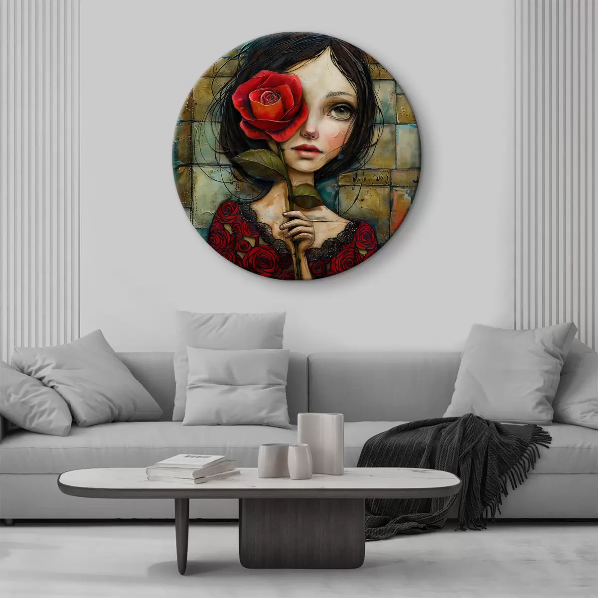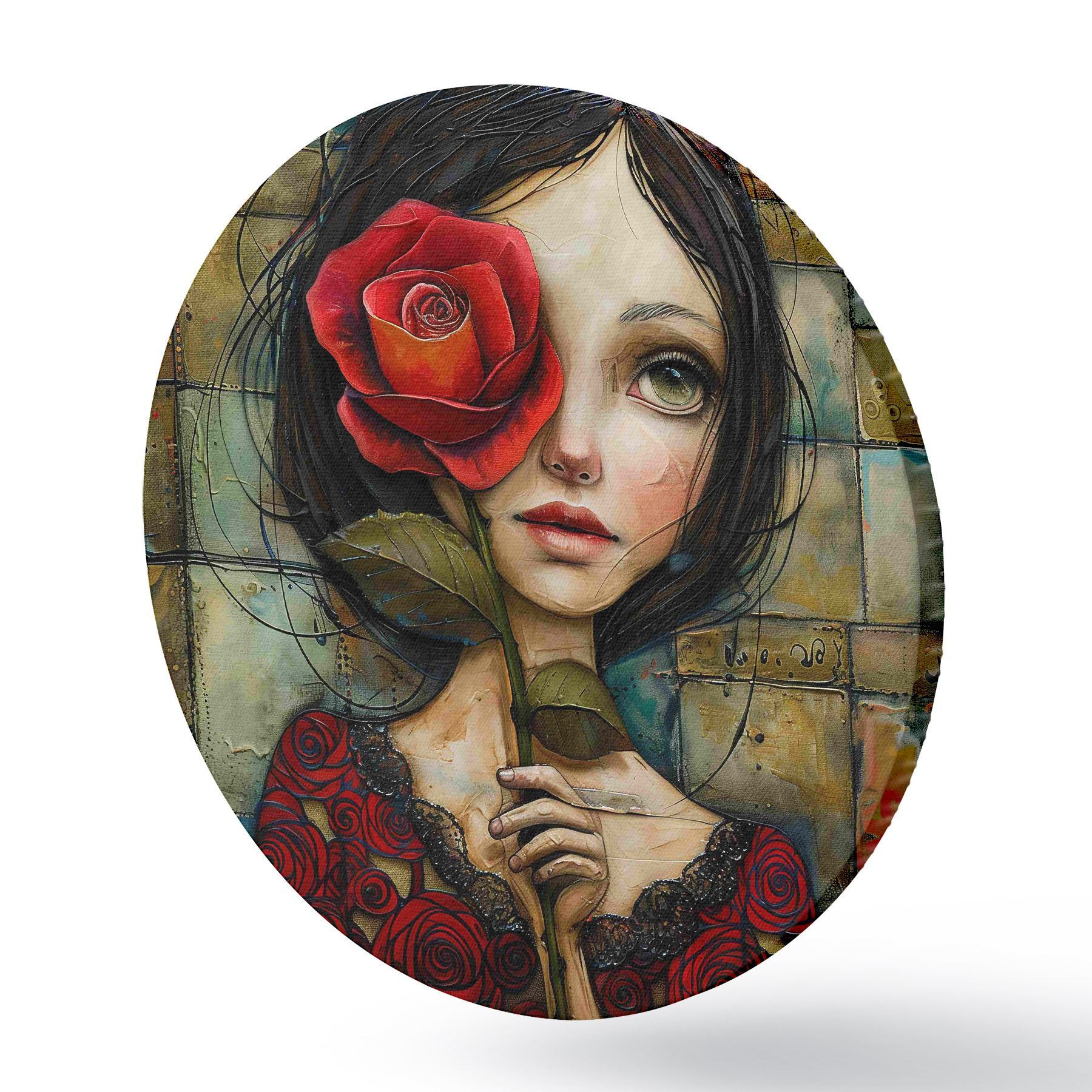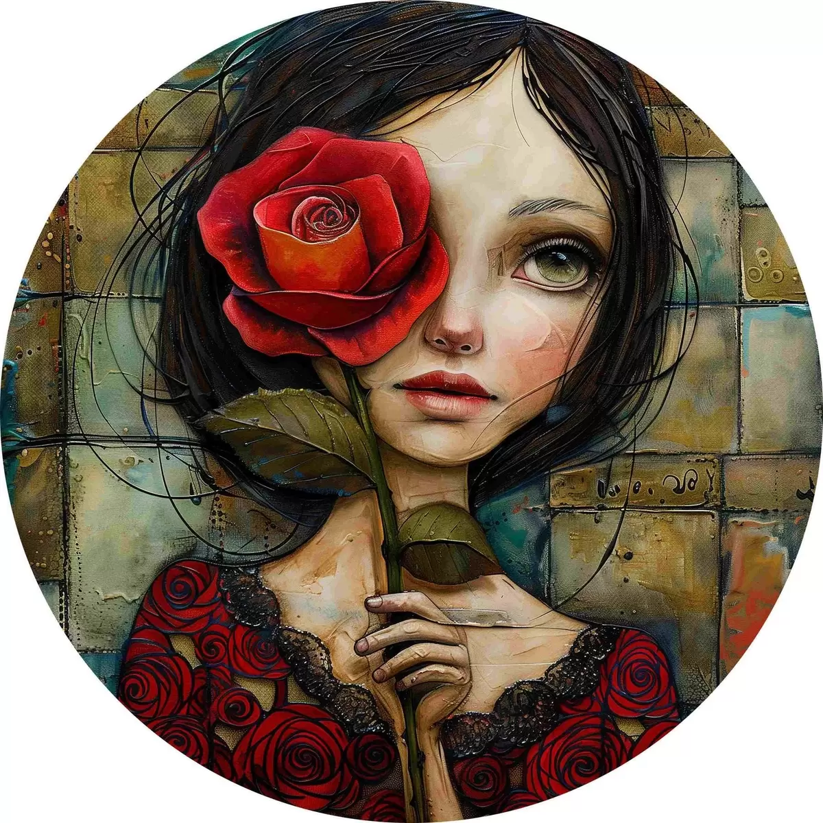 Runde Gemälde Aquarell Mädchen mit einer Rose r40895
